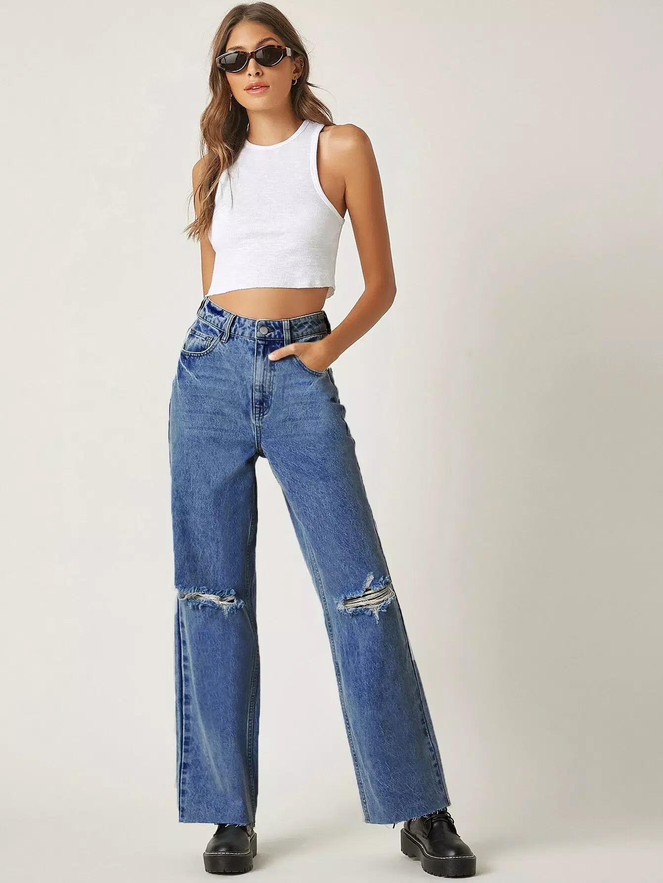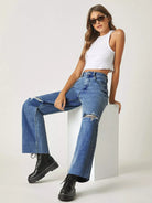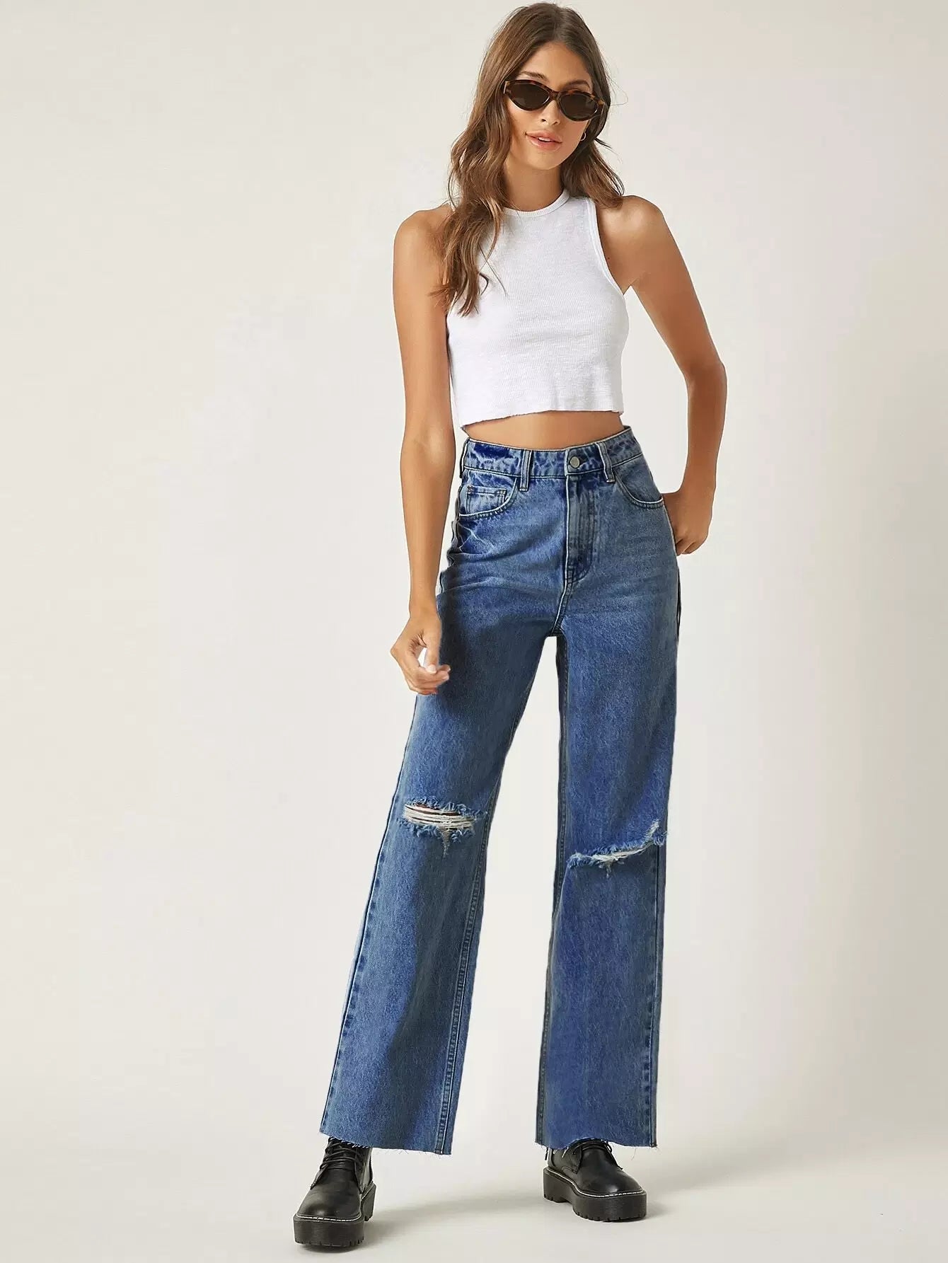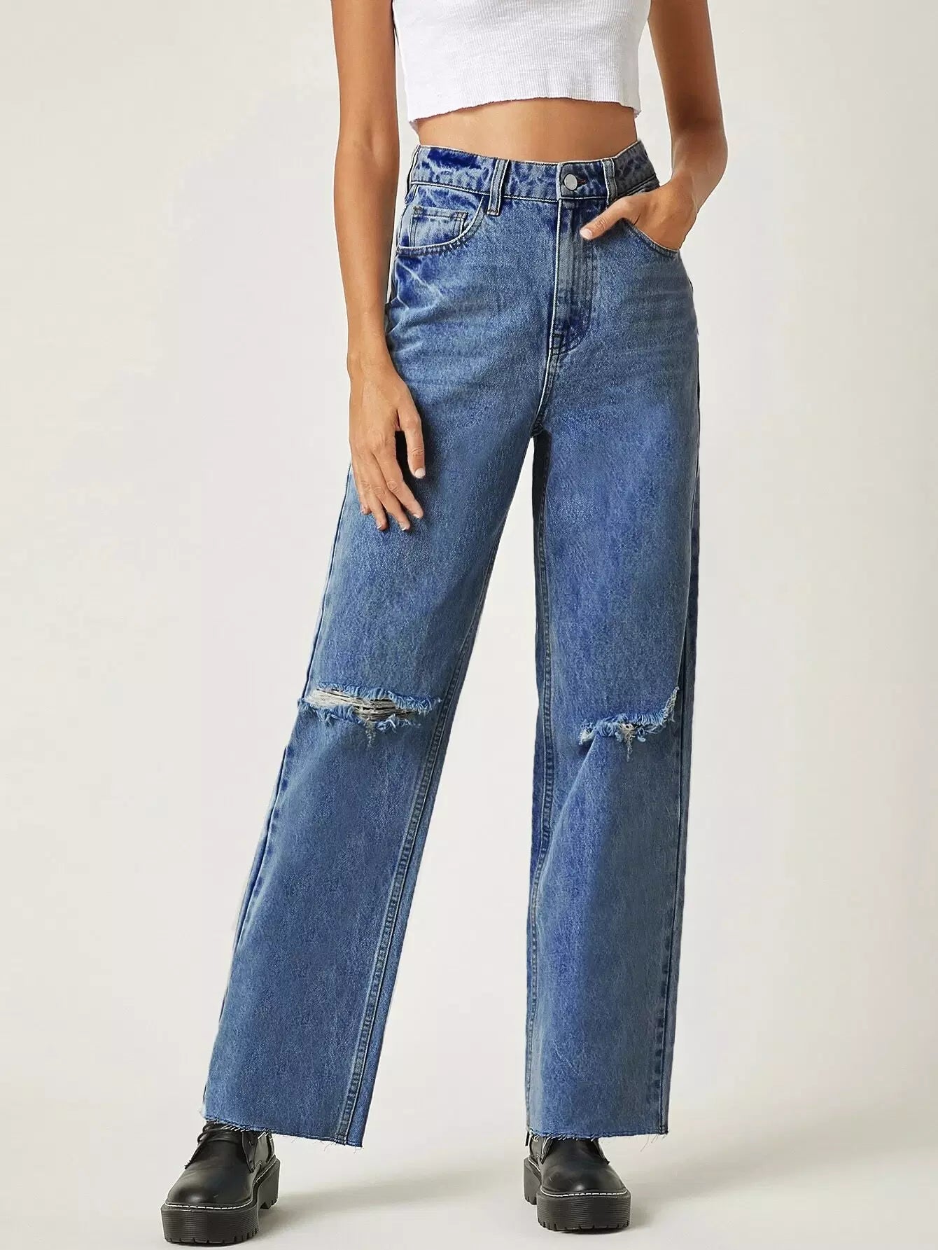 بنطلون جينز جينز بوي فريندن مغسول بالحجر
