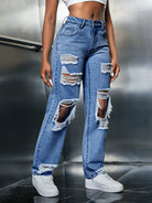 بنطال جينز SXY ذو الساق المستقيمة والممزقة