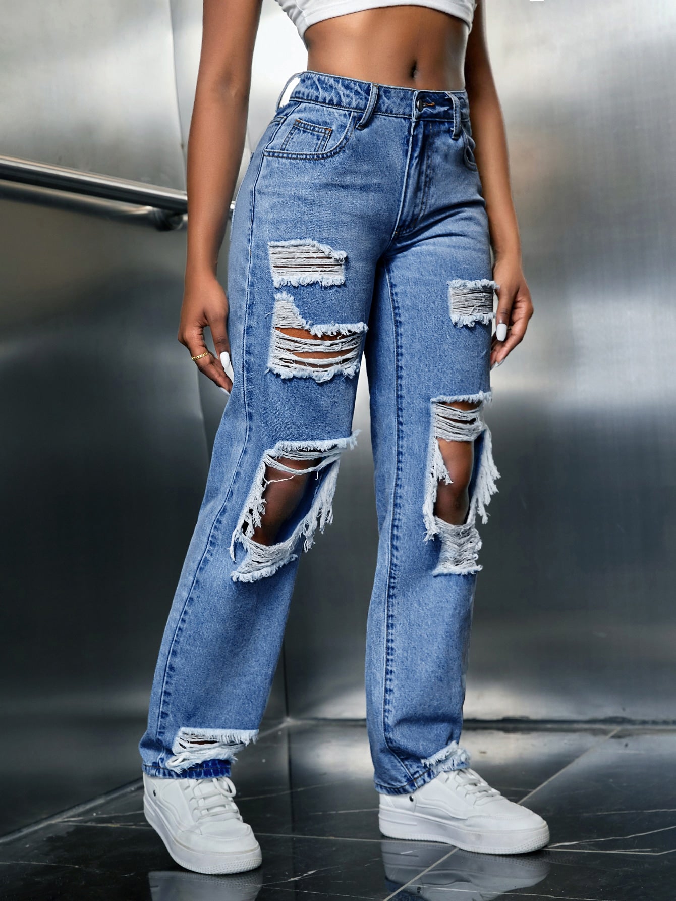 SXY Ripped Cut Out Straight Leg Jeans
