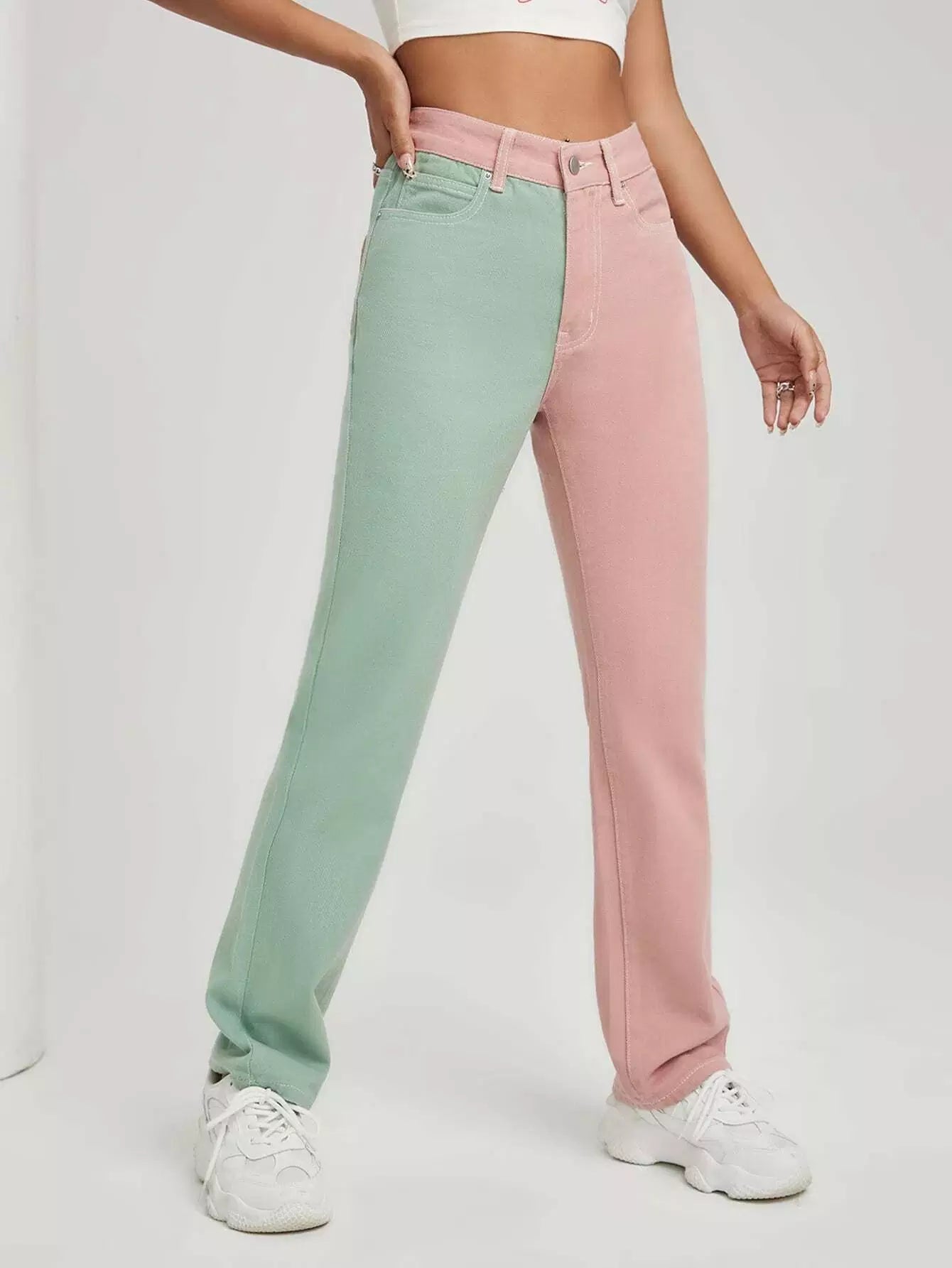 بنطلون جينز بجيوب ورقعة على شكل قلب بلونين