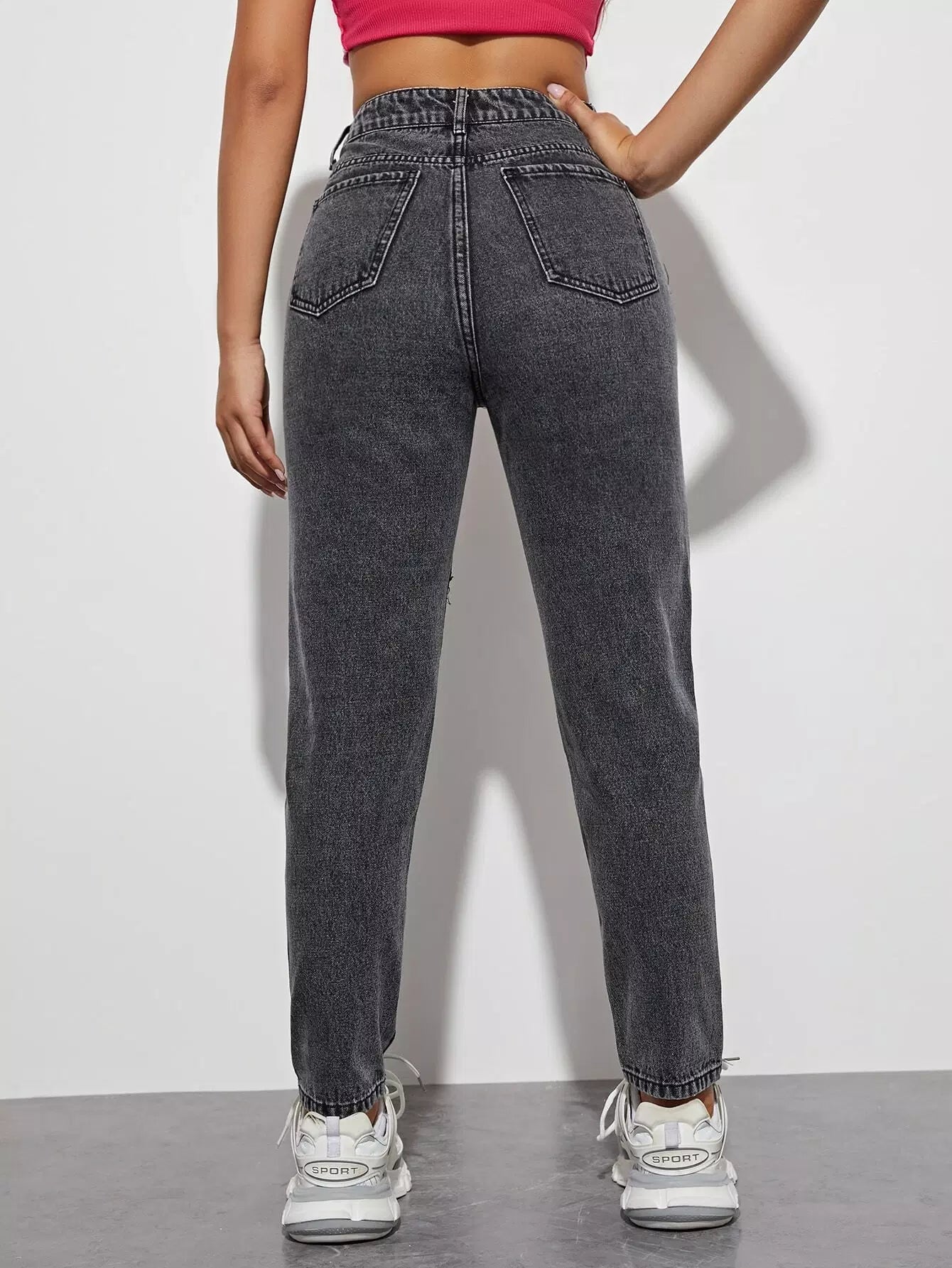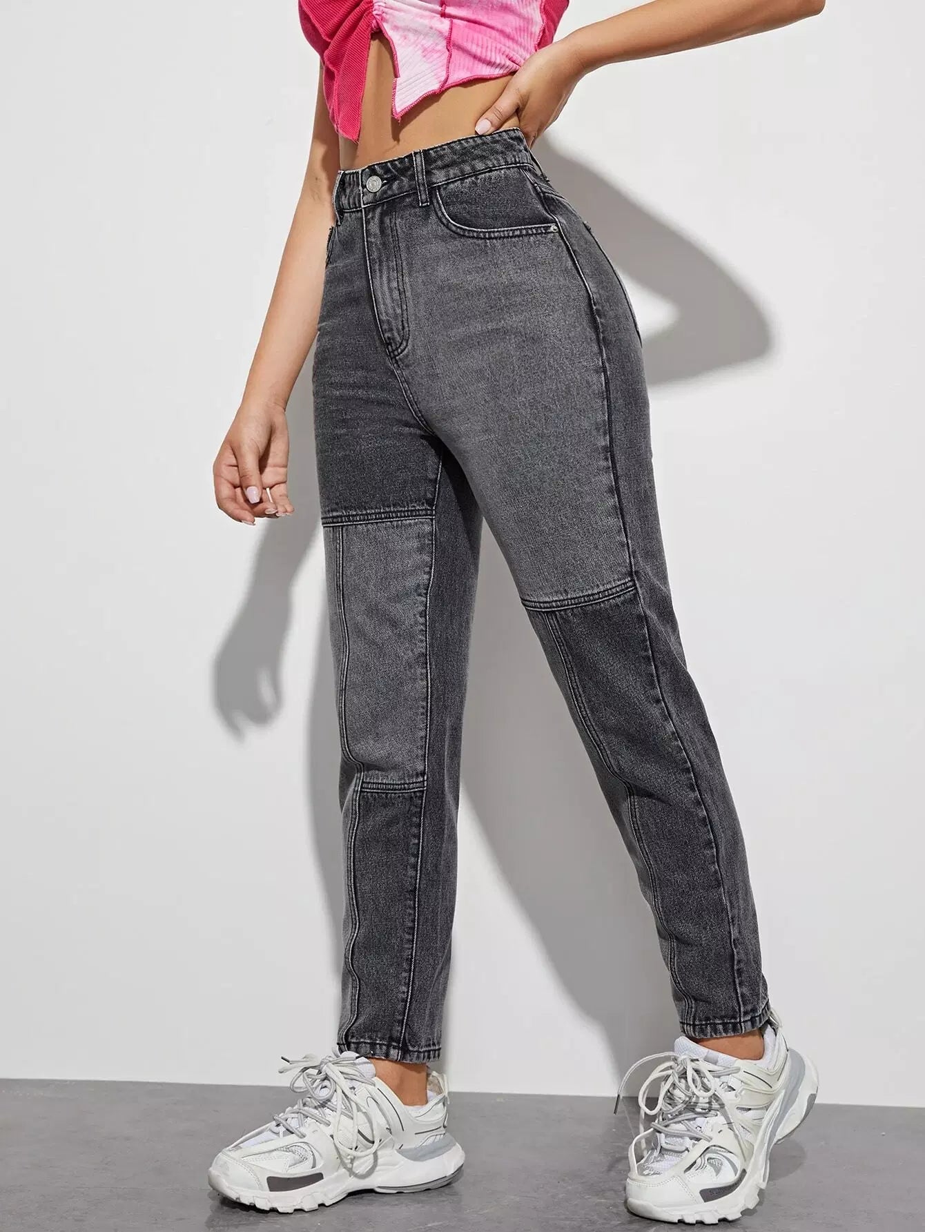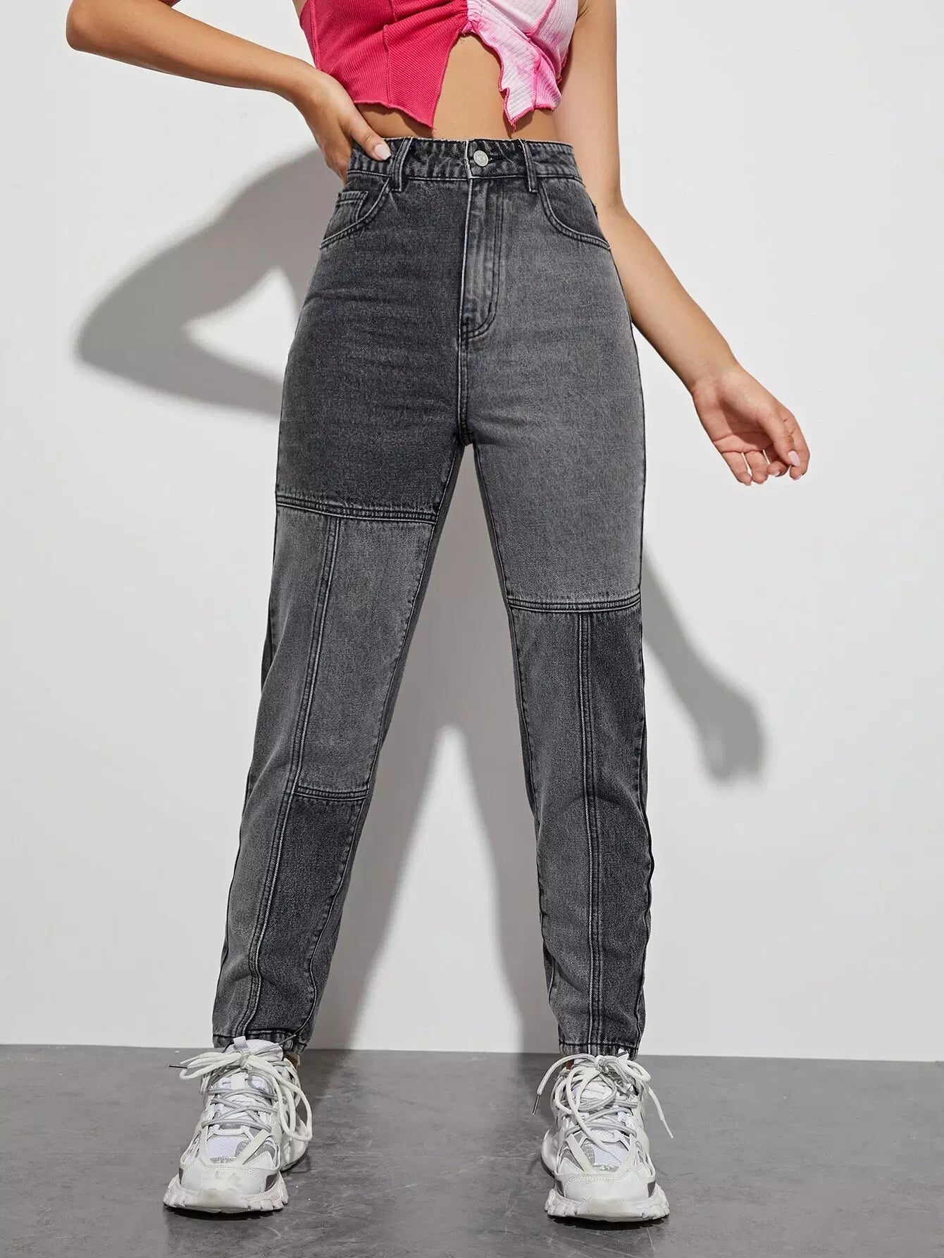 بنطلون جينز بخصر عالي الساق مستقيم بلونين