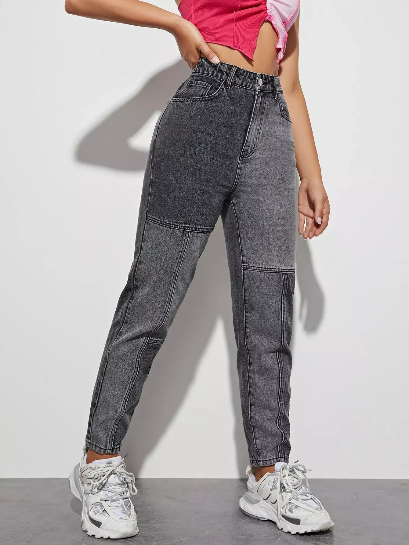 للنساء - بنطال جينز ذو قصة مستقيمة وخصر عالي بلونين