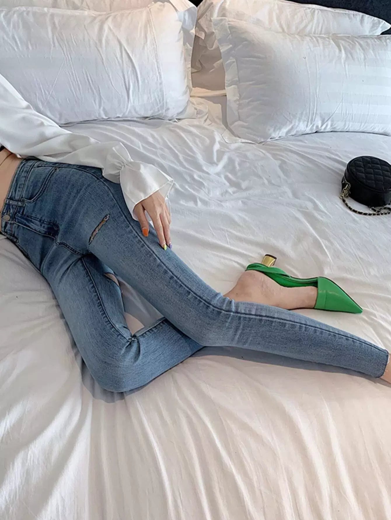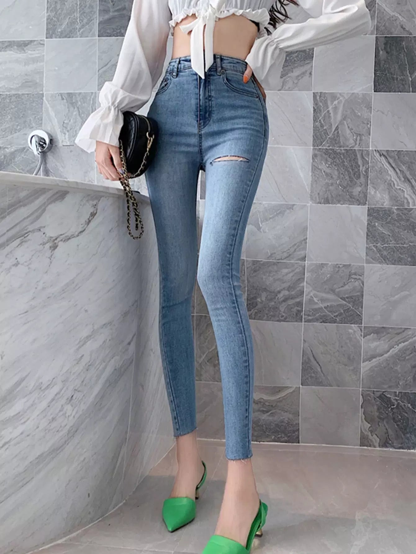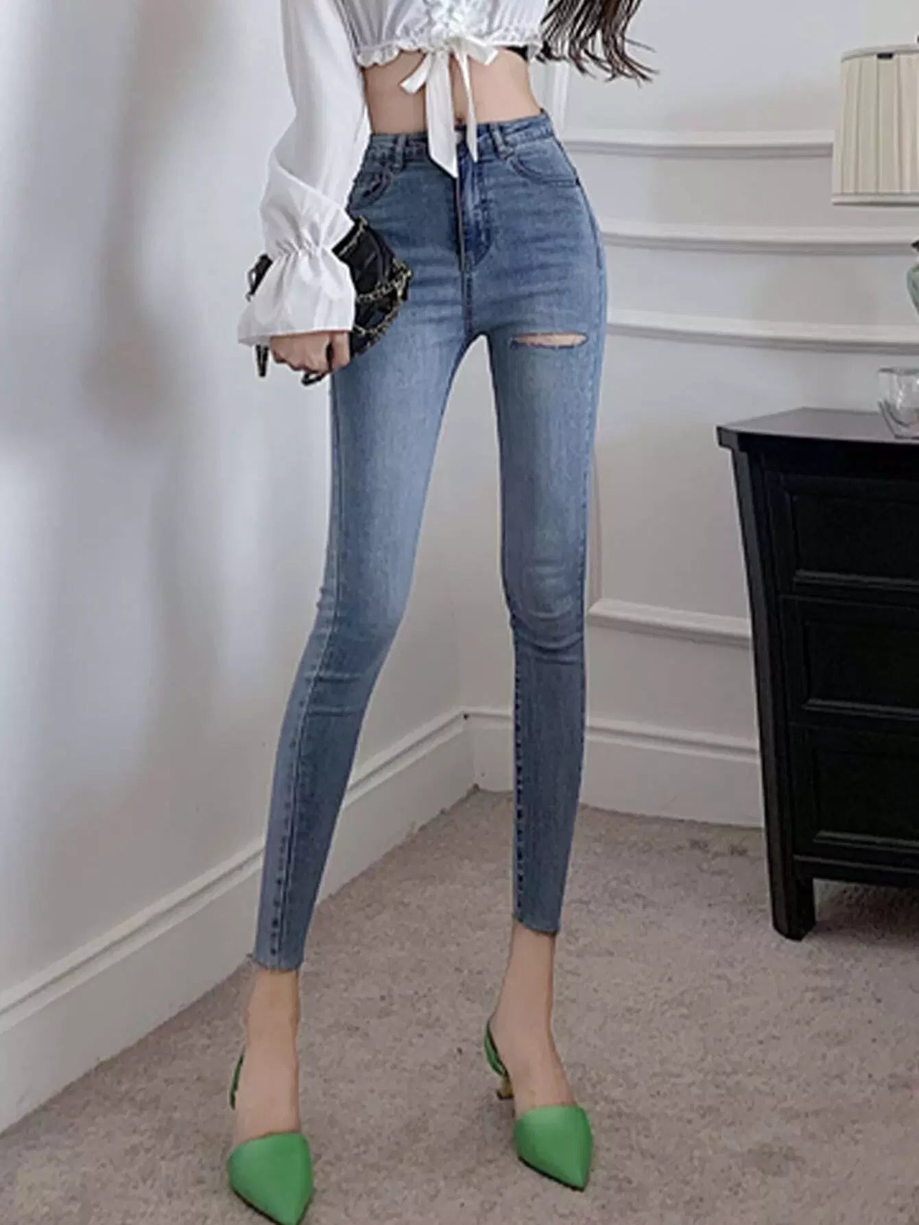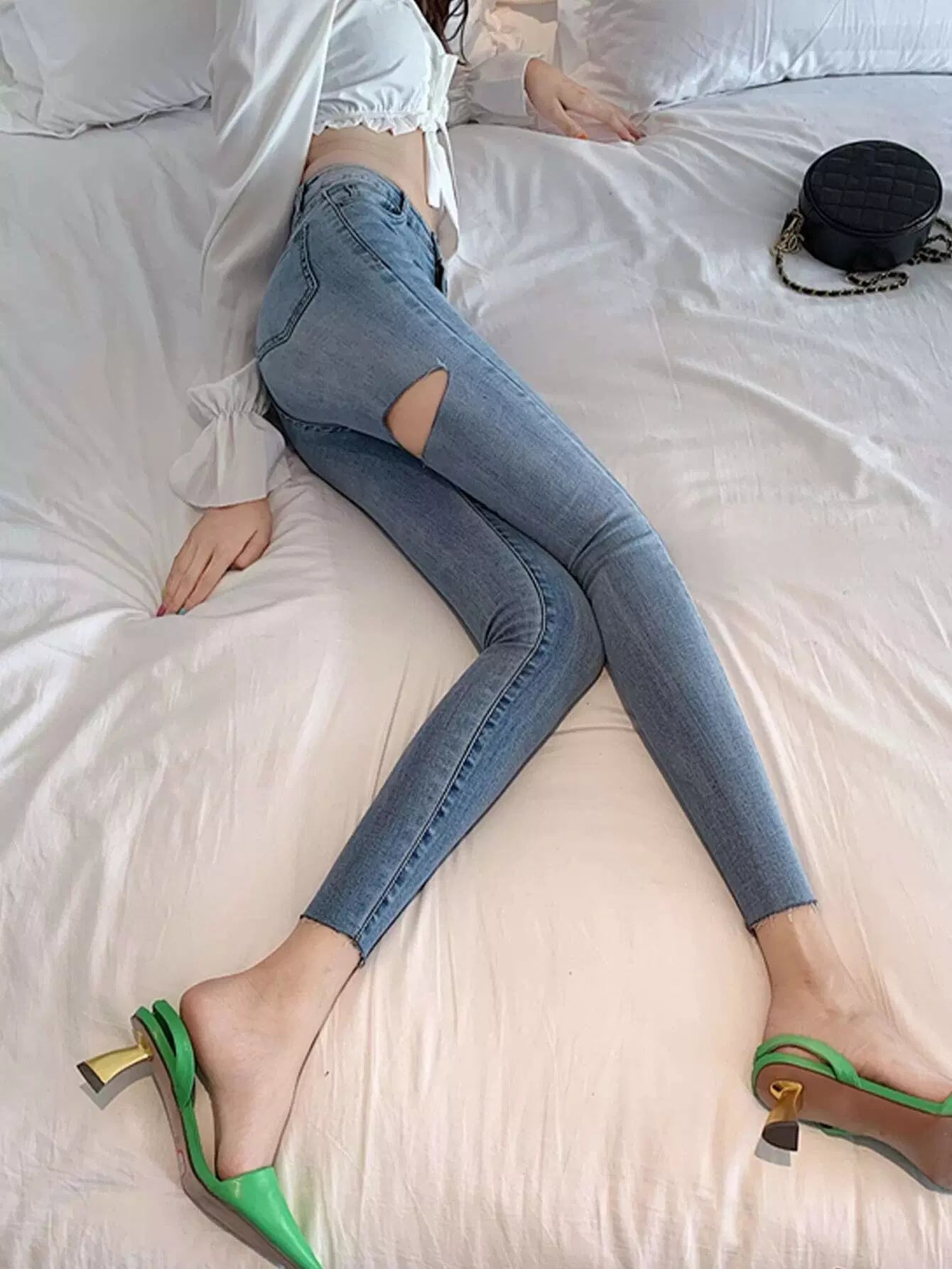 بنطلون جينز بحاشية ممزق ومغسول