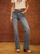 women WESTFADE Mid Rise Western Horseshoe Embroidered Back Pocket Applique Fitted Bootcut Cowgirl Denim Jeans