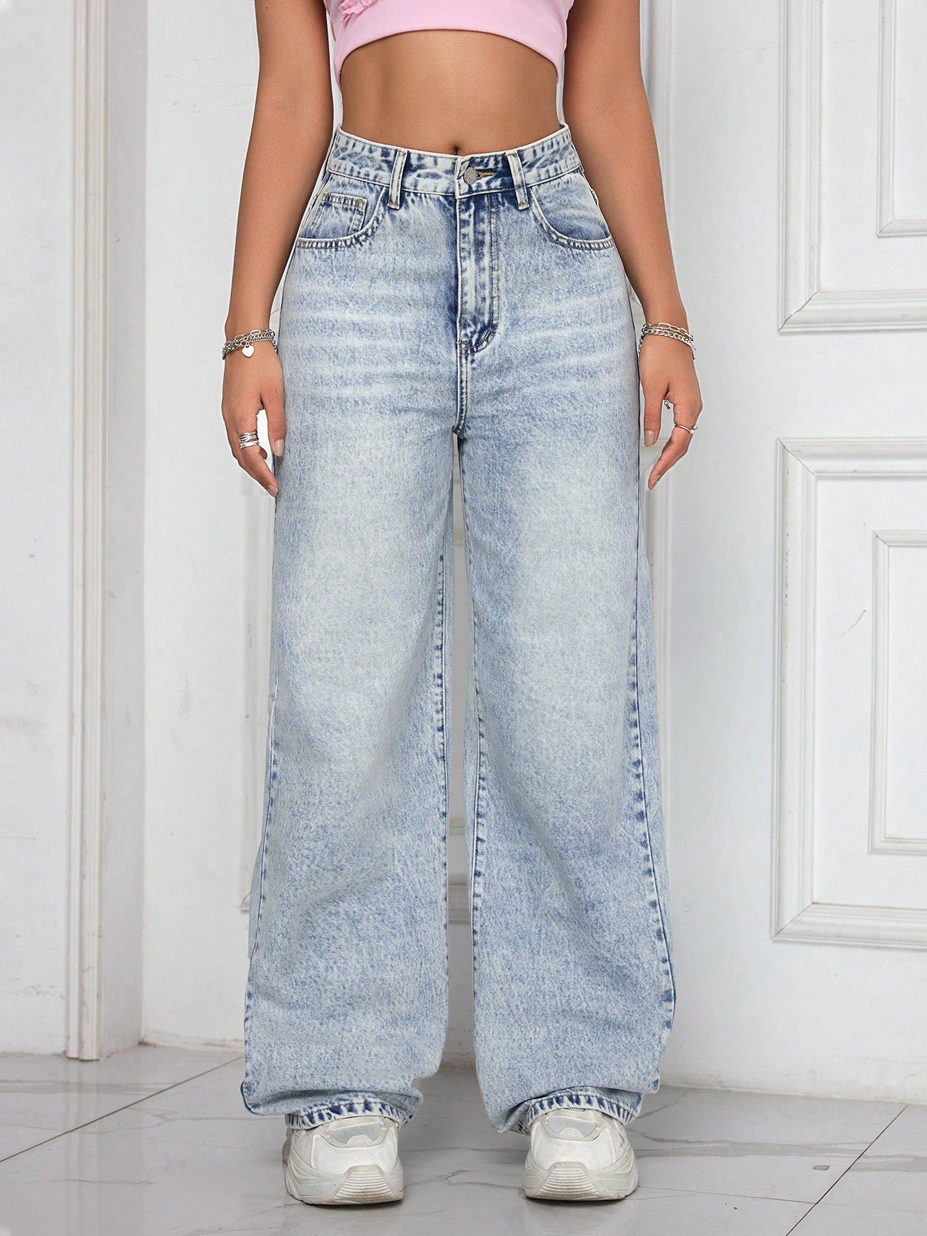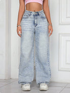 بنطلون جينز نسائي بسيط بجيوب أمامية وأزرار، مناسب للارتداء اليومي