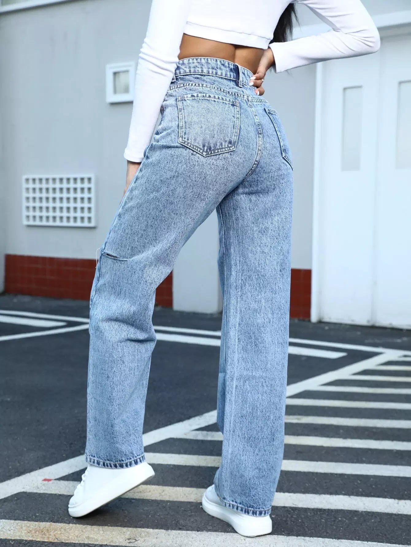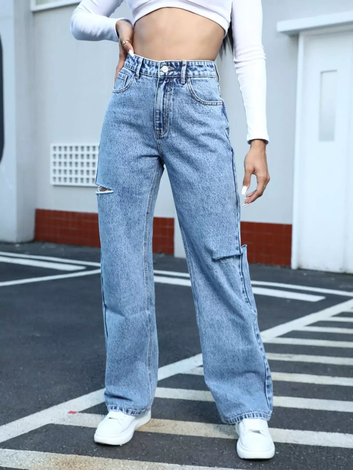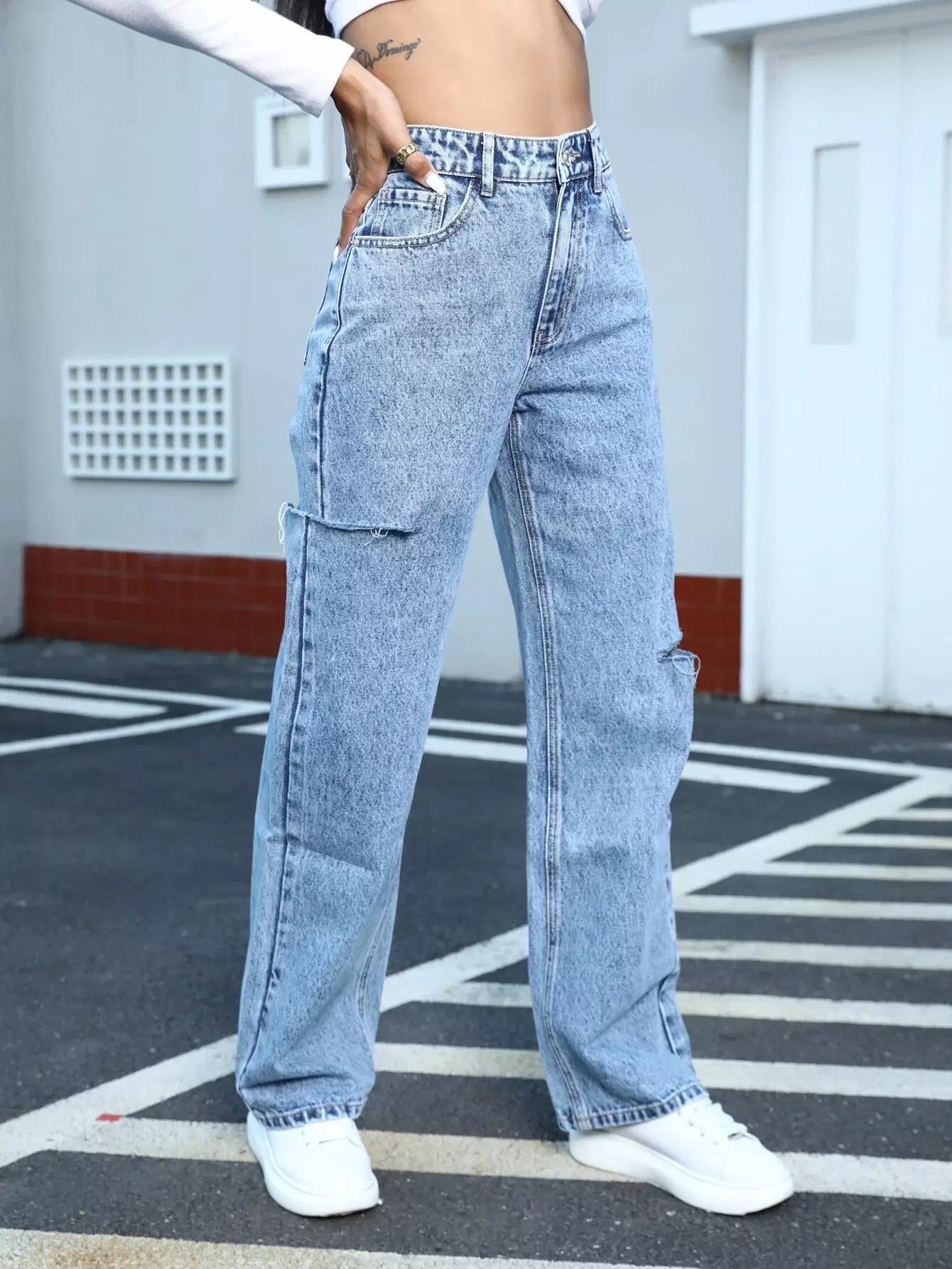 بنطلون جينز ممزق بسحاب بسحاب