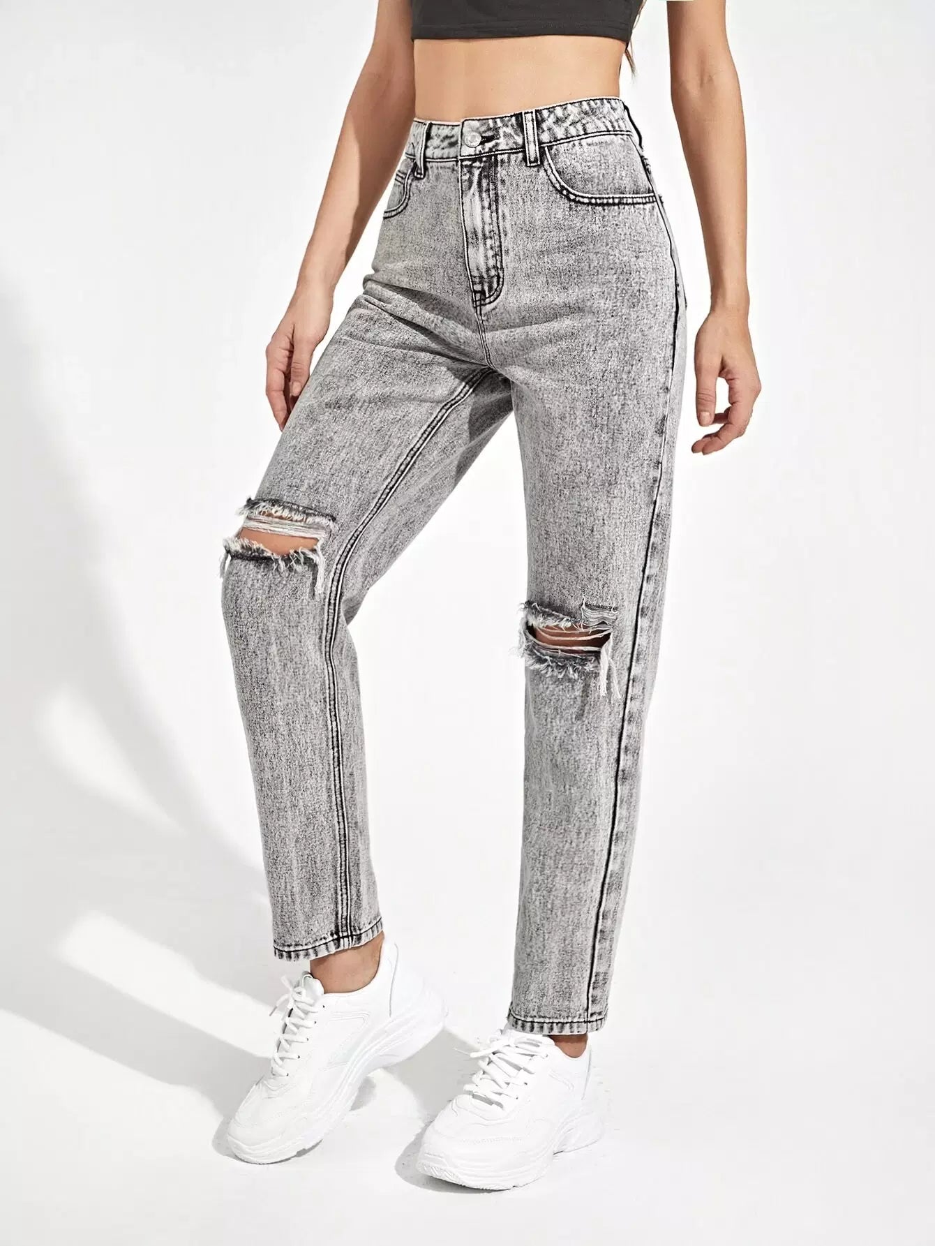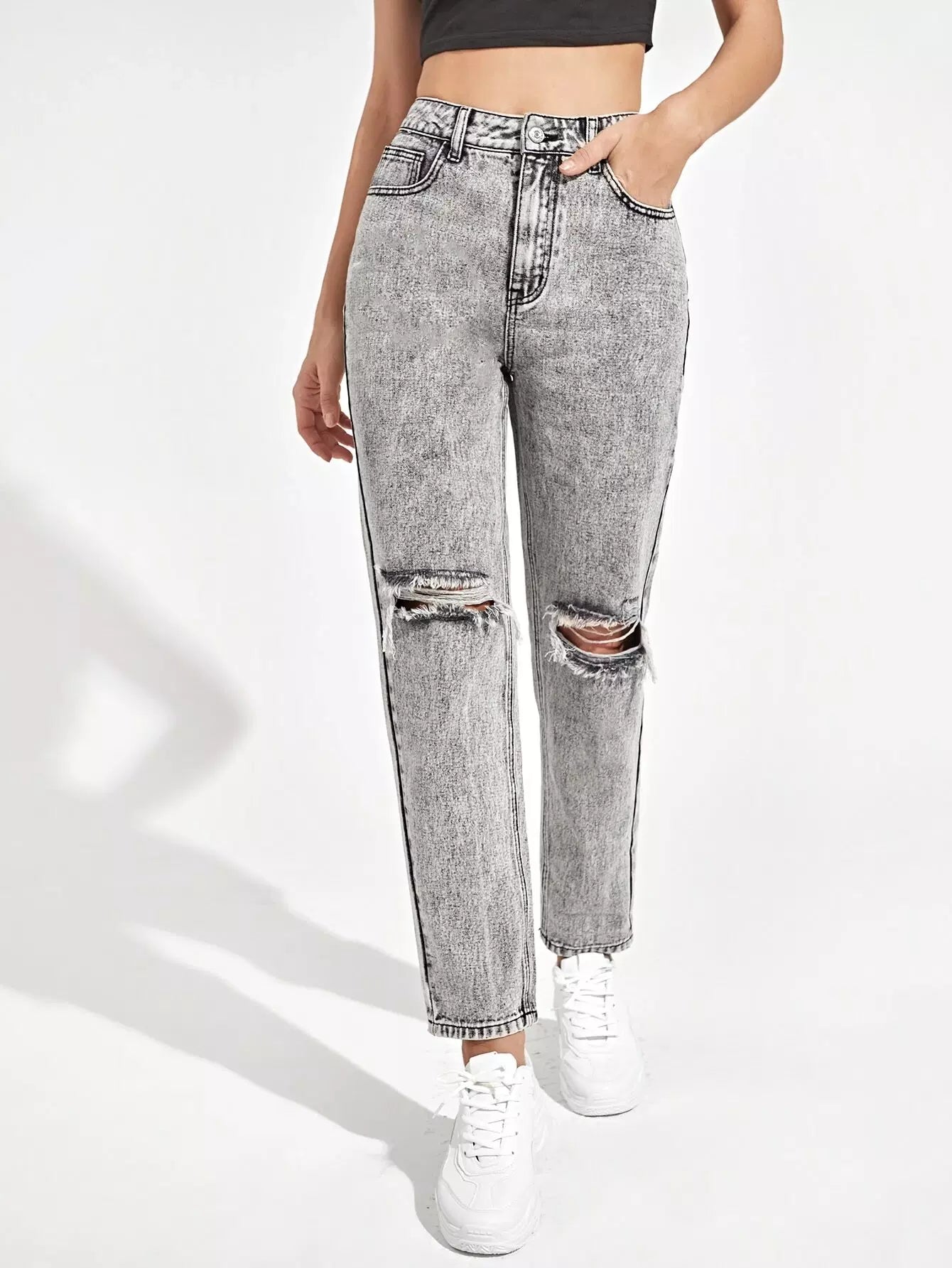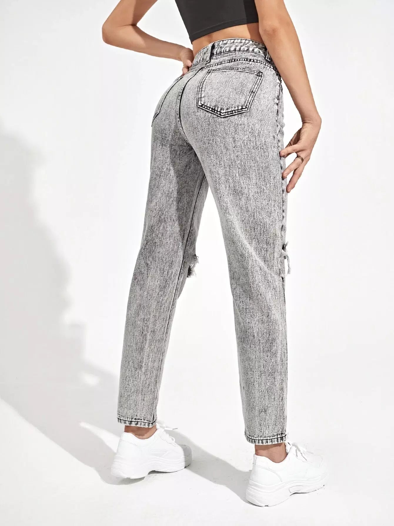 للنساء - بنطال جينز بتفاصيل ممزقة وسحاب