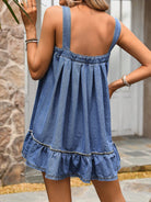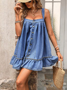 Breezaya Women's Denim Vacation Casual A-Line Sleeveless Dress With Ruffle Hem And Front Buttons