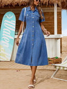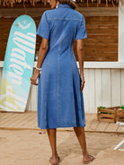 Breezaya Women's Summer Single Breasted Short Sleeve Casual Denim Dress