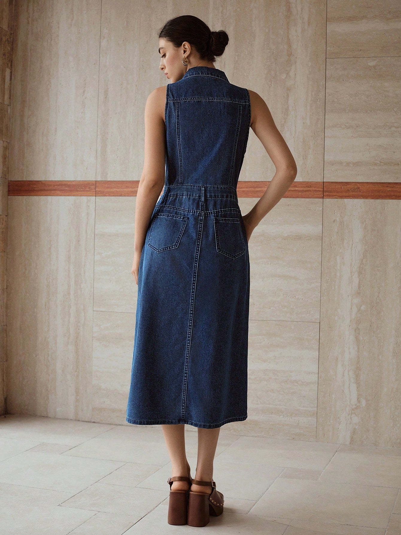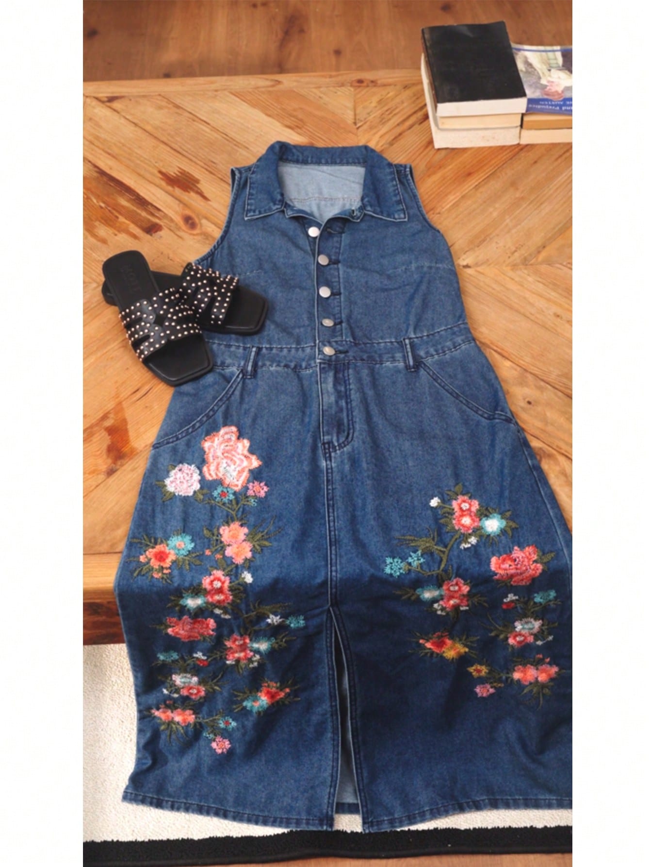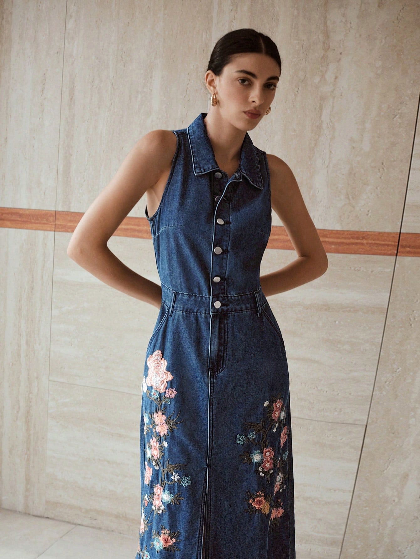 MOTF PREMIUM EMBROIDERY SPLIT DENIM DRESS