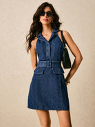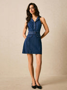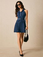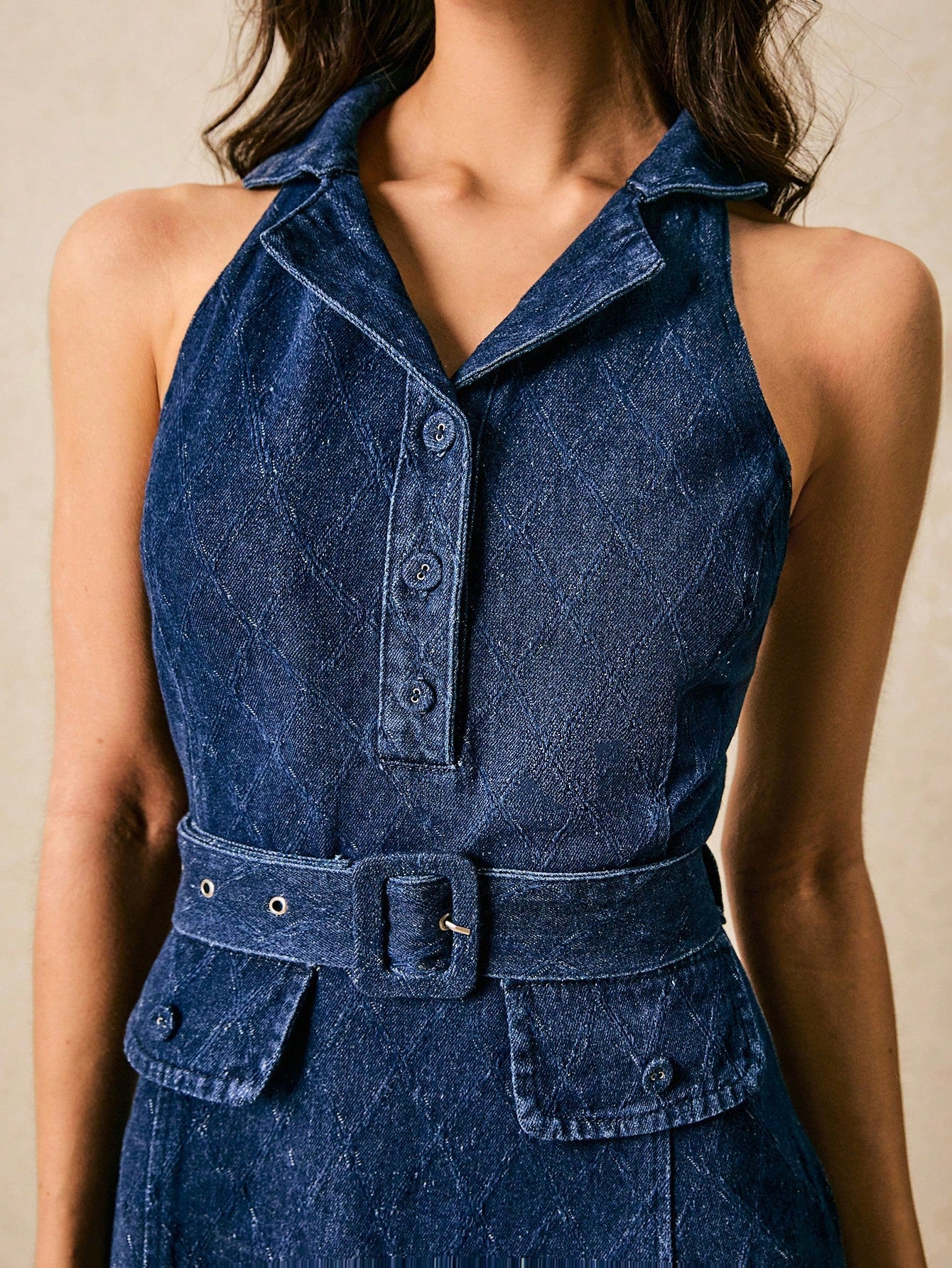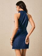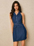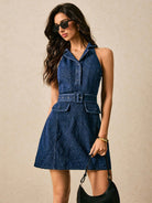 Poelle Women's Summer Casual Halter Neck Denim Dress