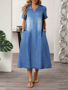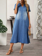 SHEIN LUNE Women's Holiday Casual Washed Denim Dress