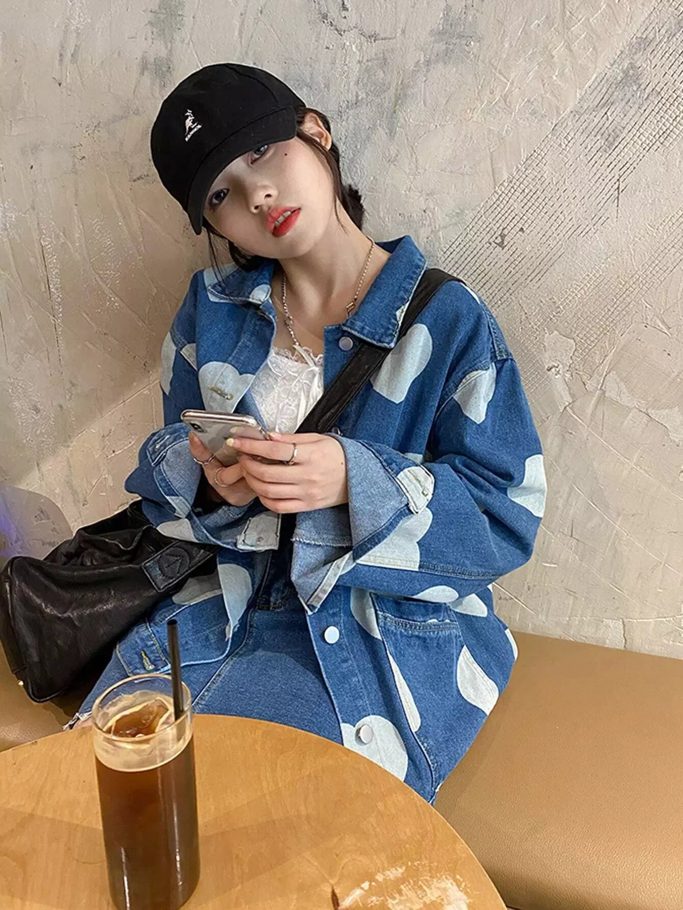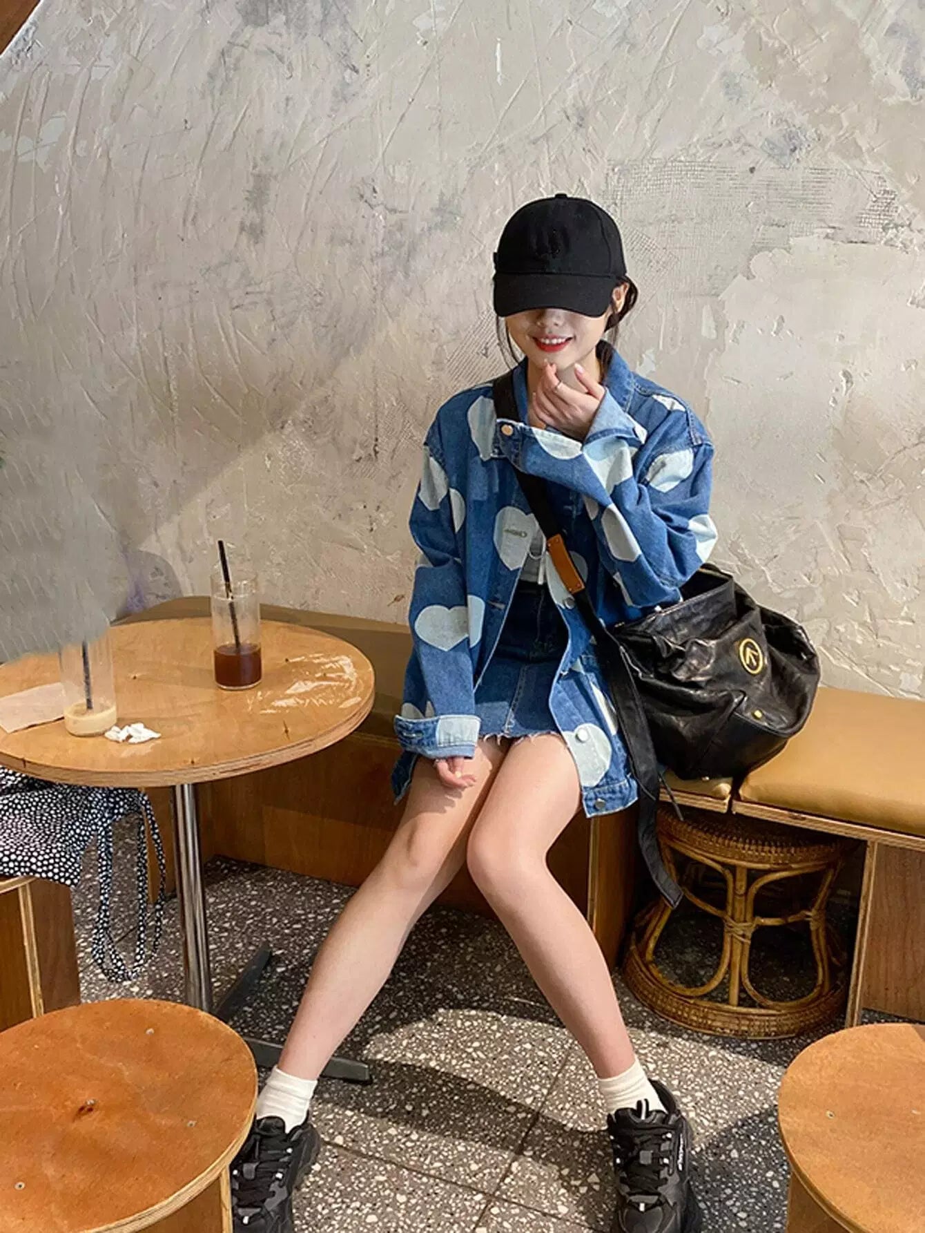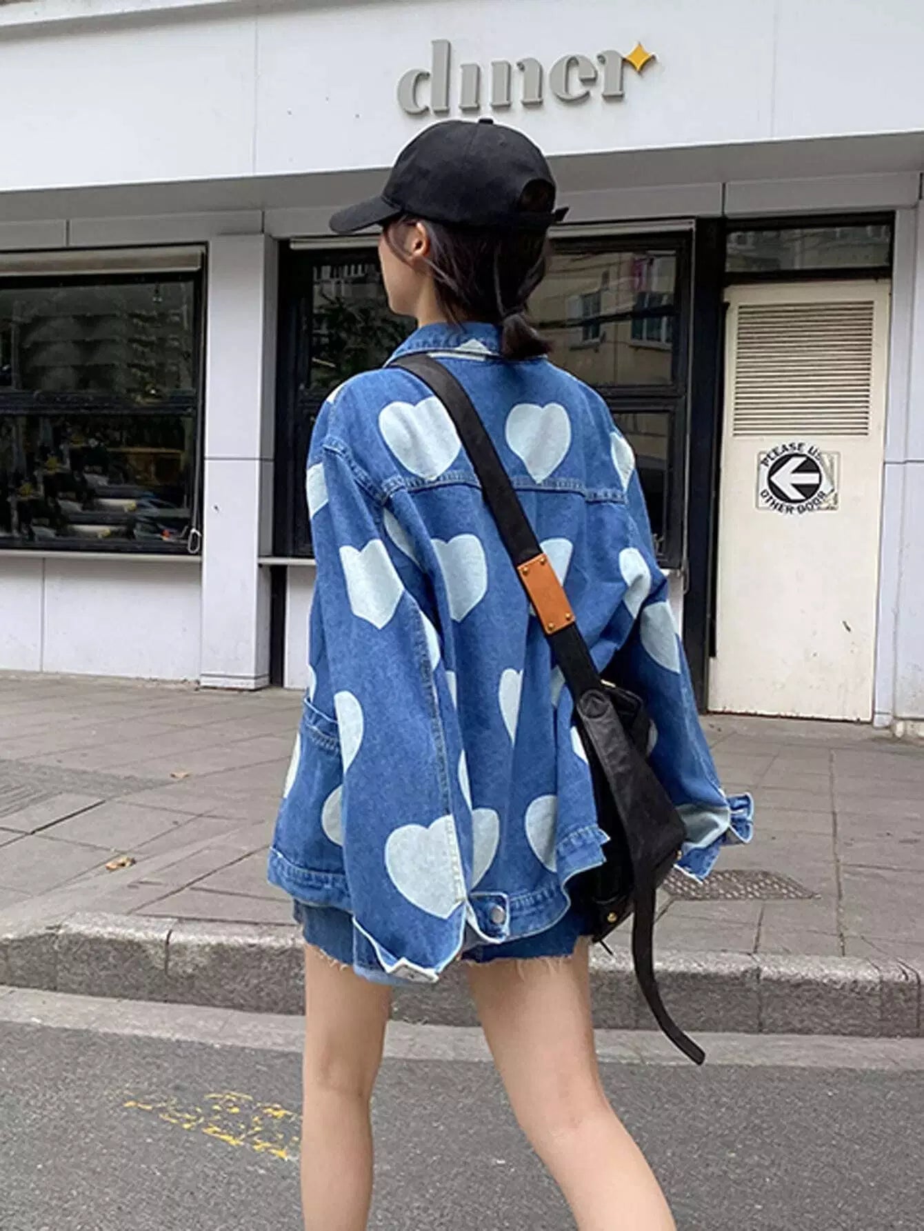 جاكيت دنيم منسدل الكتفين على شكل قلب