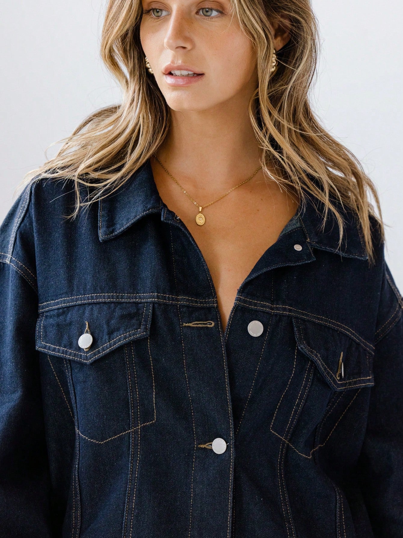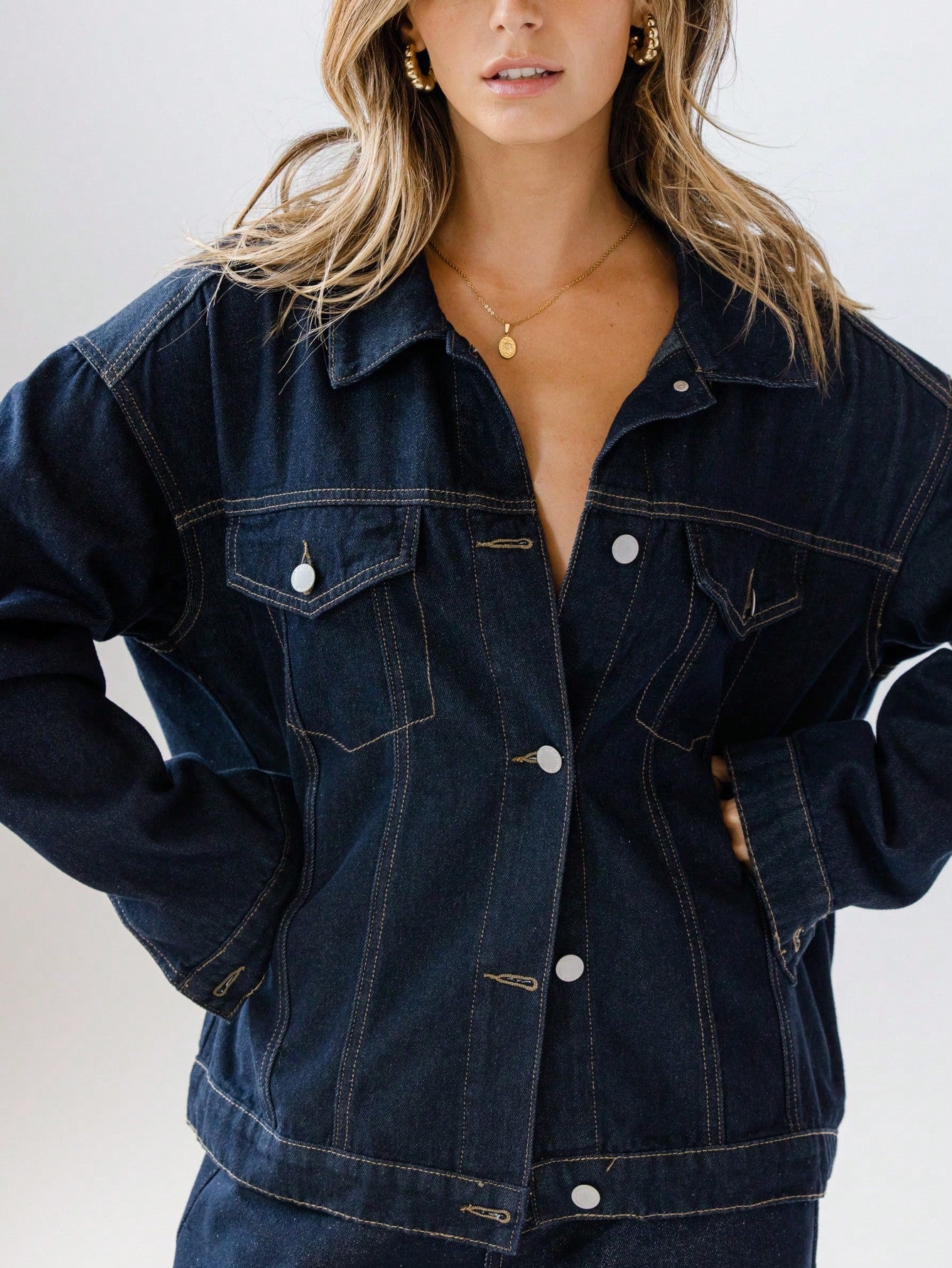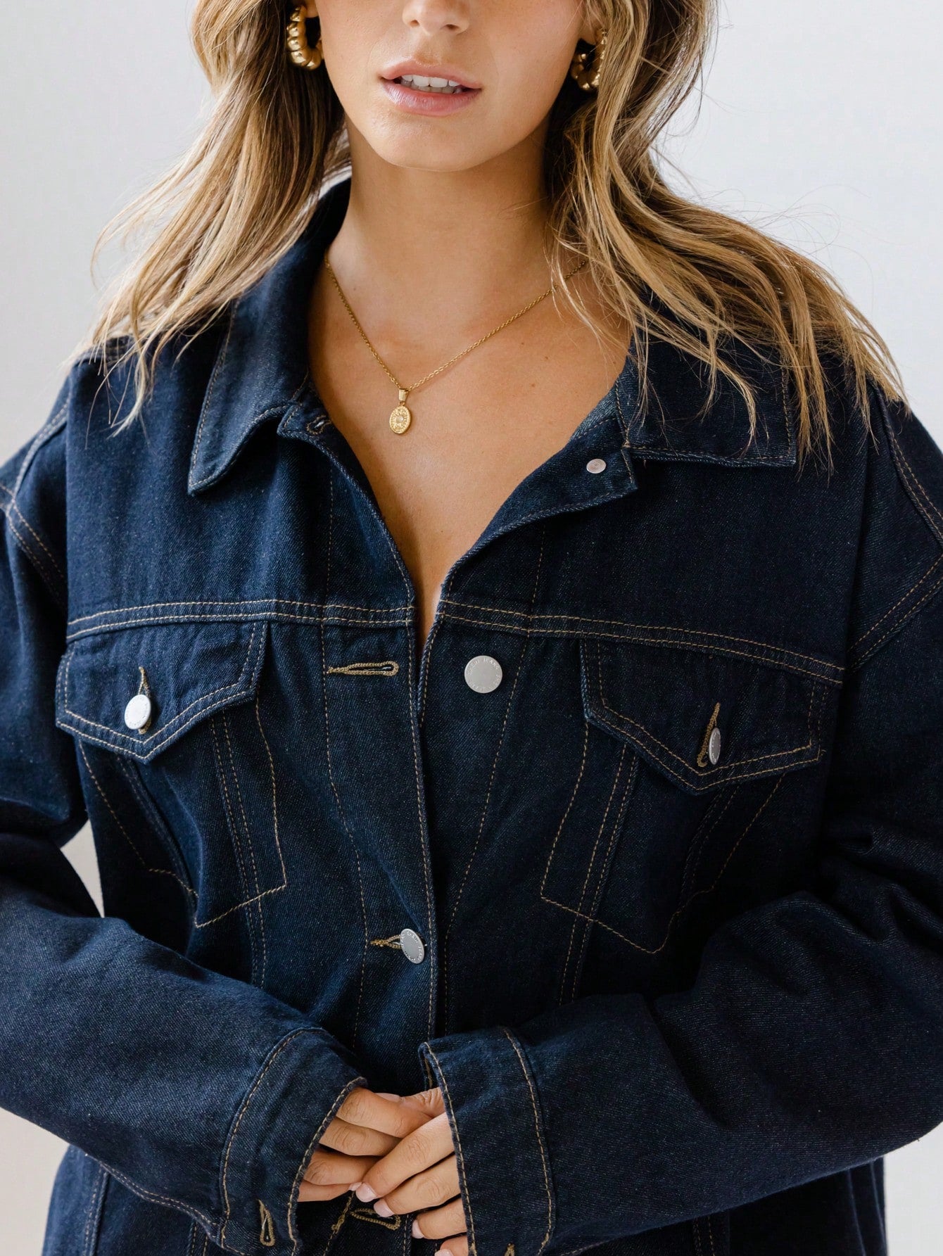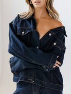 جاكيت جينز كلاسيكي بأزرار أمامية للنساء من أرالينا، مناسب لفصلي الربيع والخريف