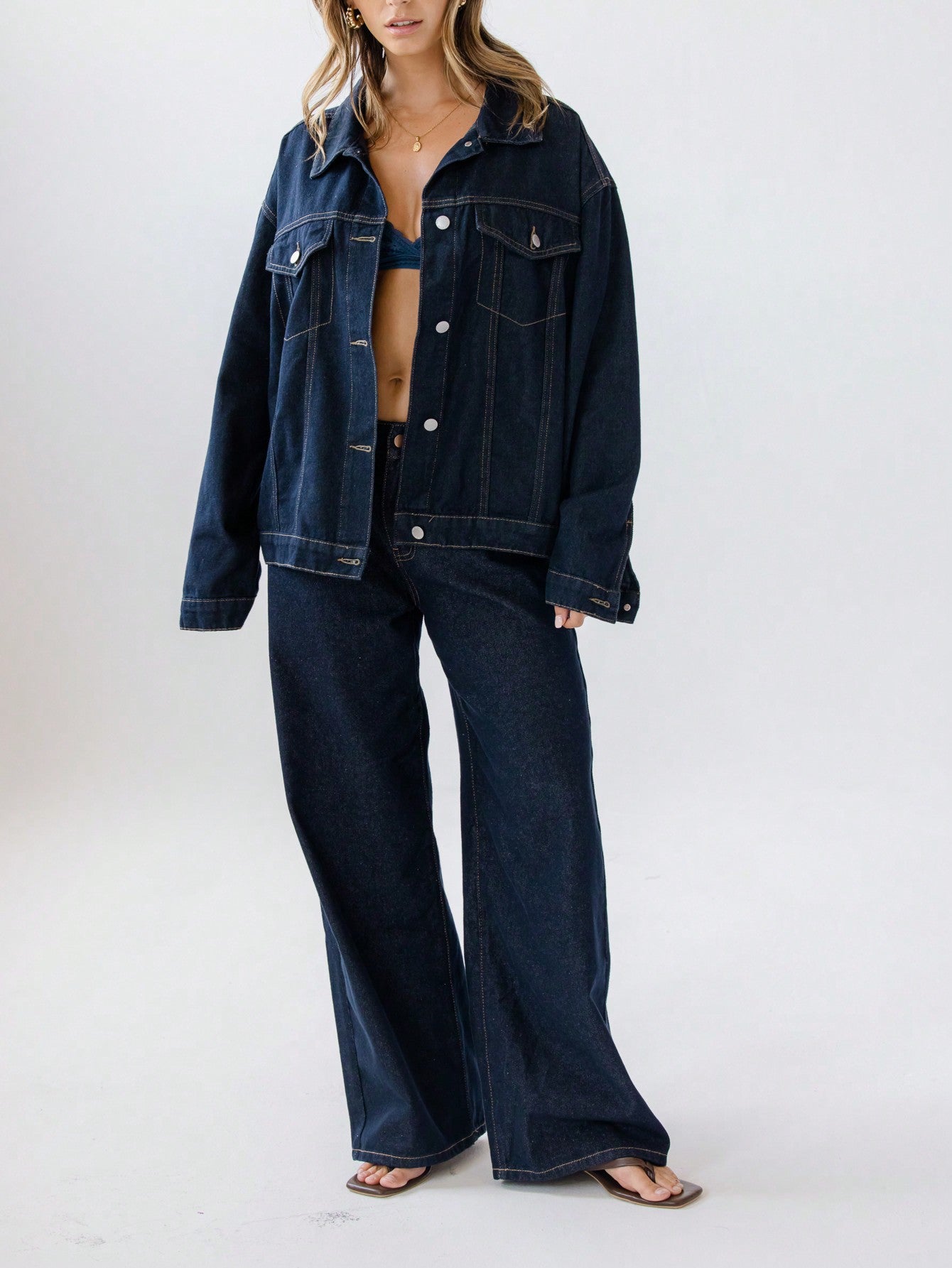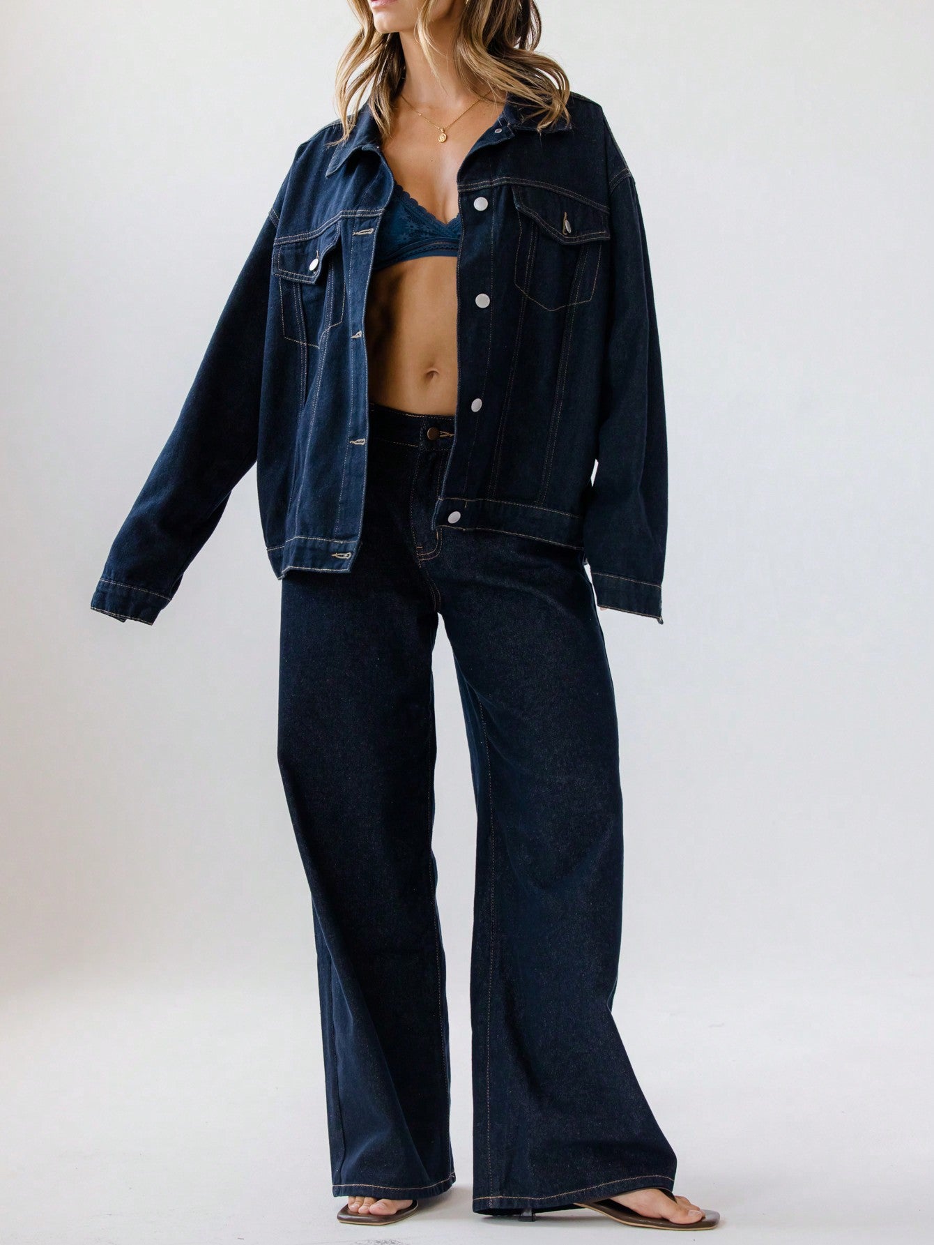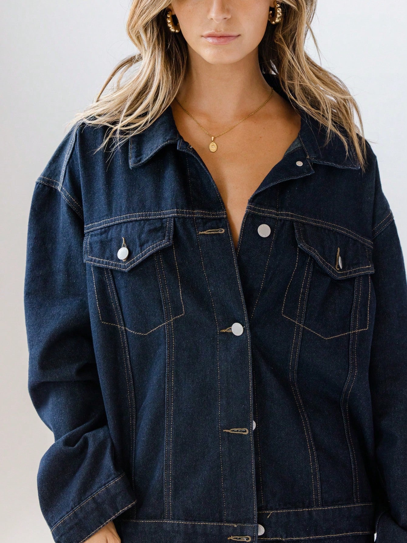جاكيت جينز كلاسيكي بأزرار أمامية للنساء من أرالينا، مناسب لفصلي الربيع والخريف