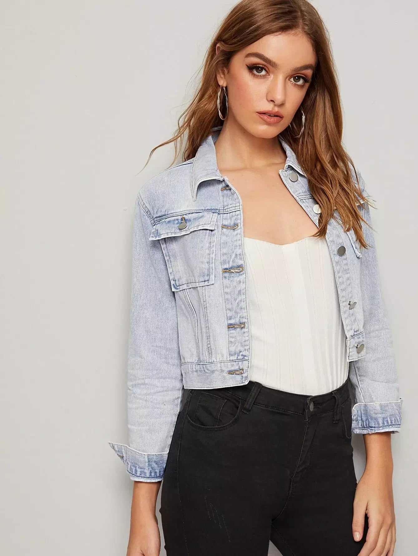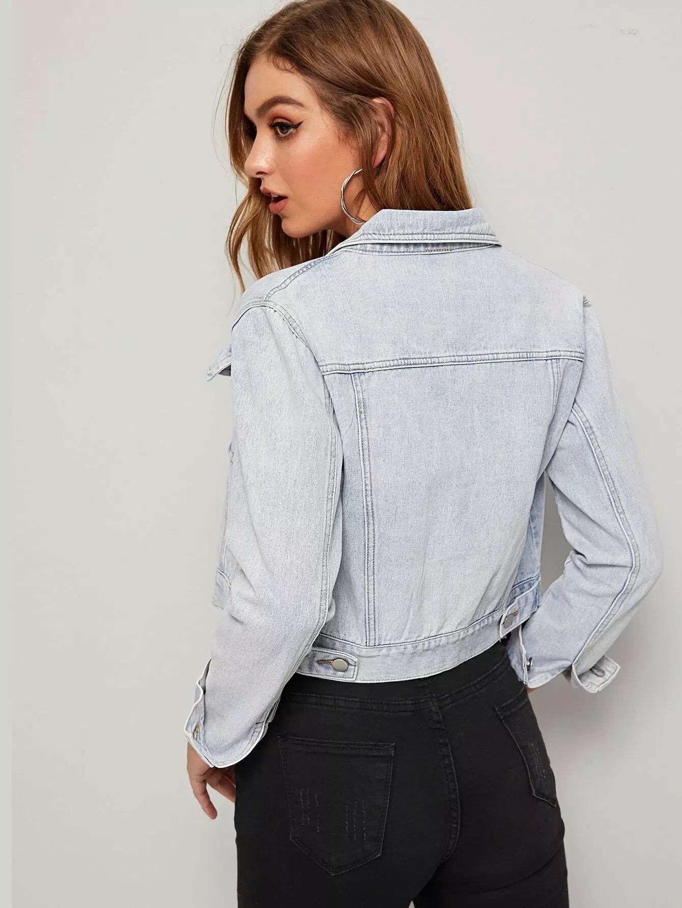 جاكيت دنيم بغطاء جينز بغطاء جينز مغسول بالأبيض