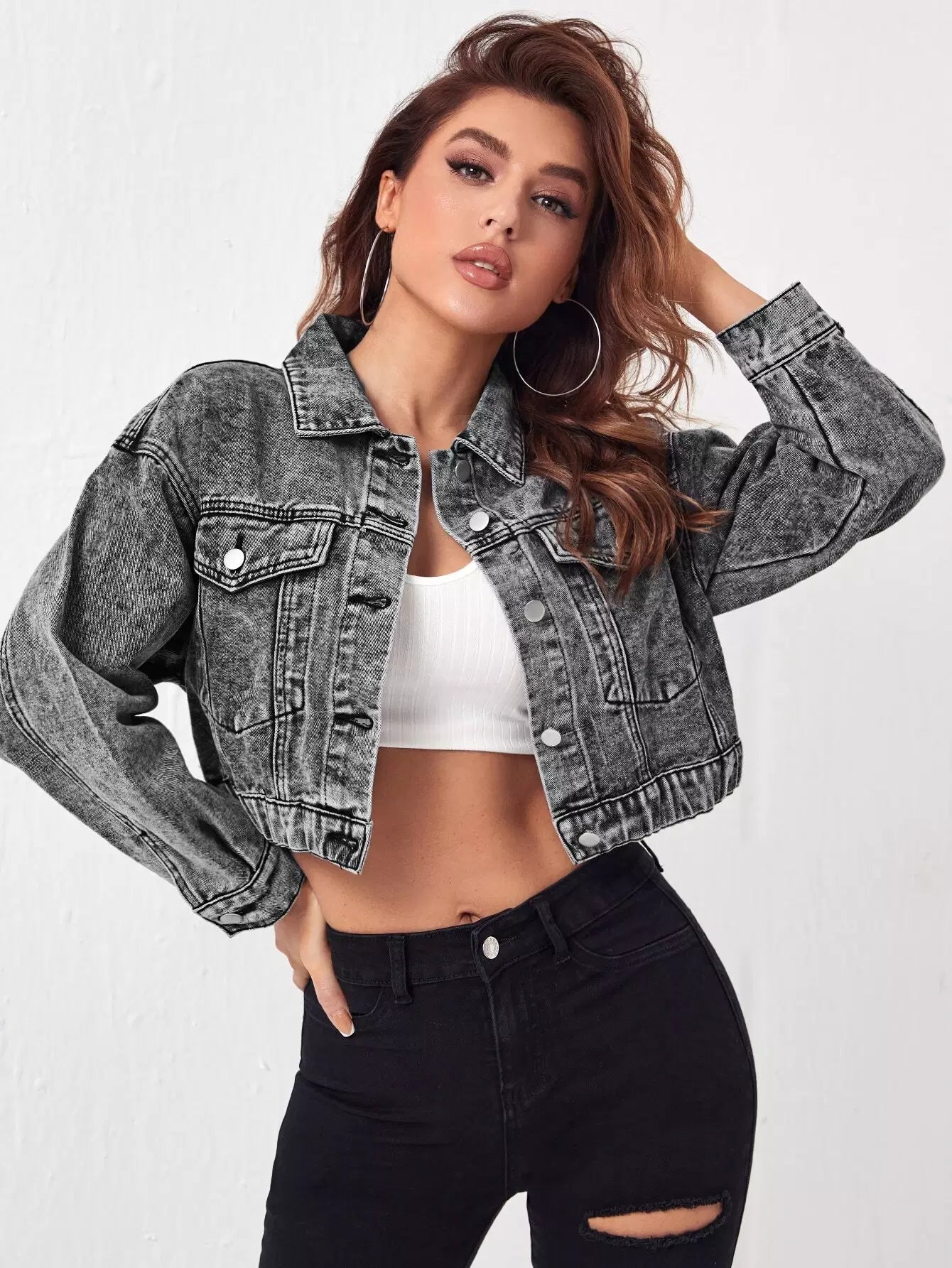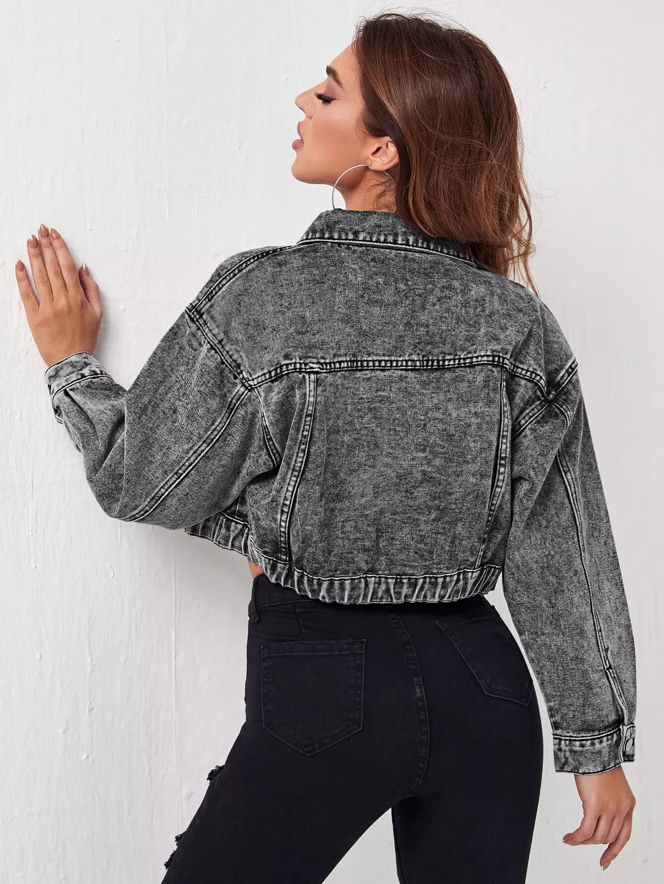 جاكيت جينز قصير الكتفين منسدل الكتفين