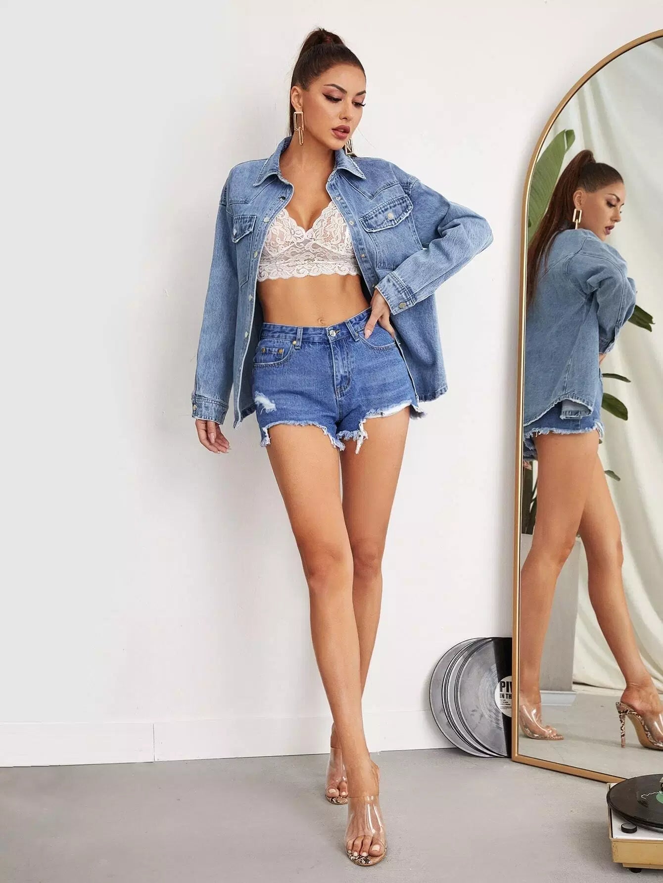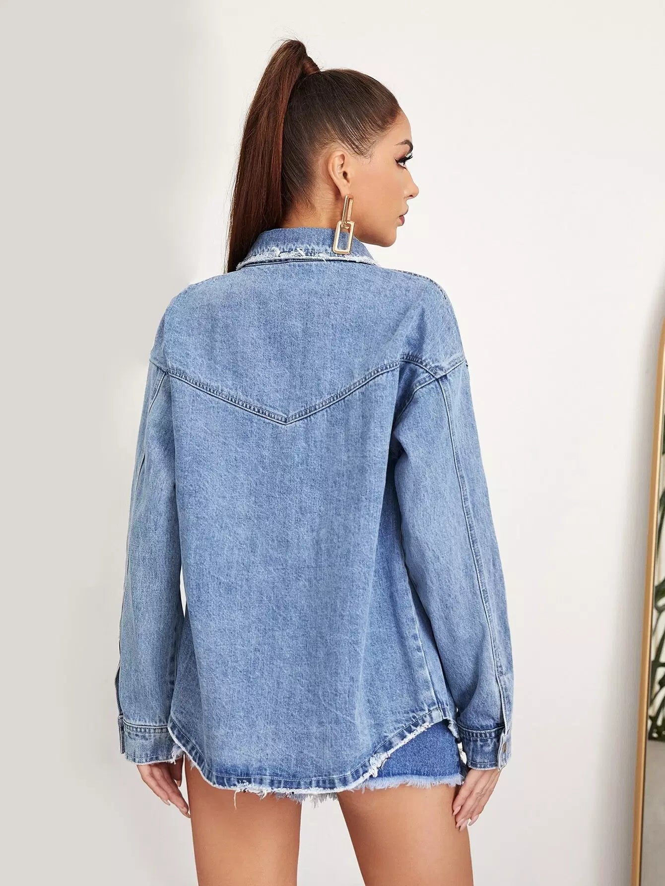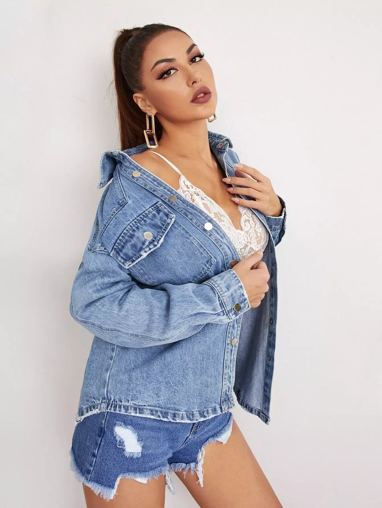 جاكيت منسدل الكتفين بحاشية منسدلة من الدنيم الخام
