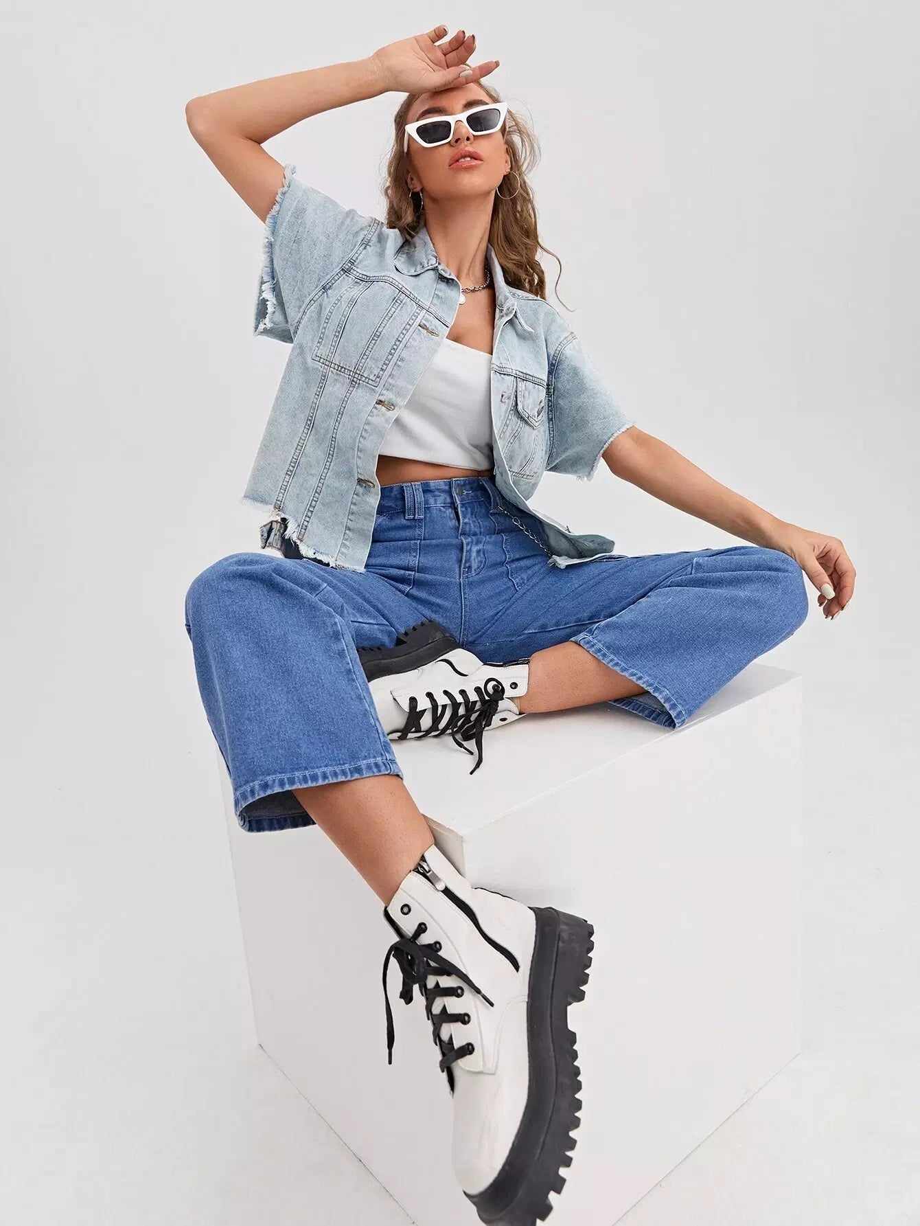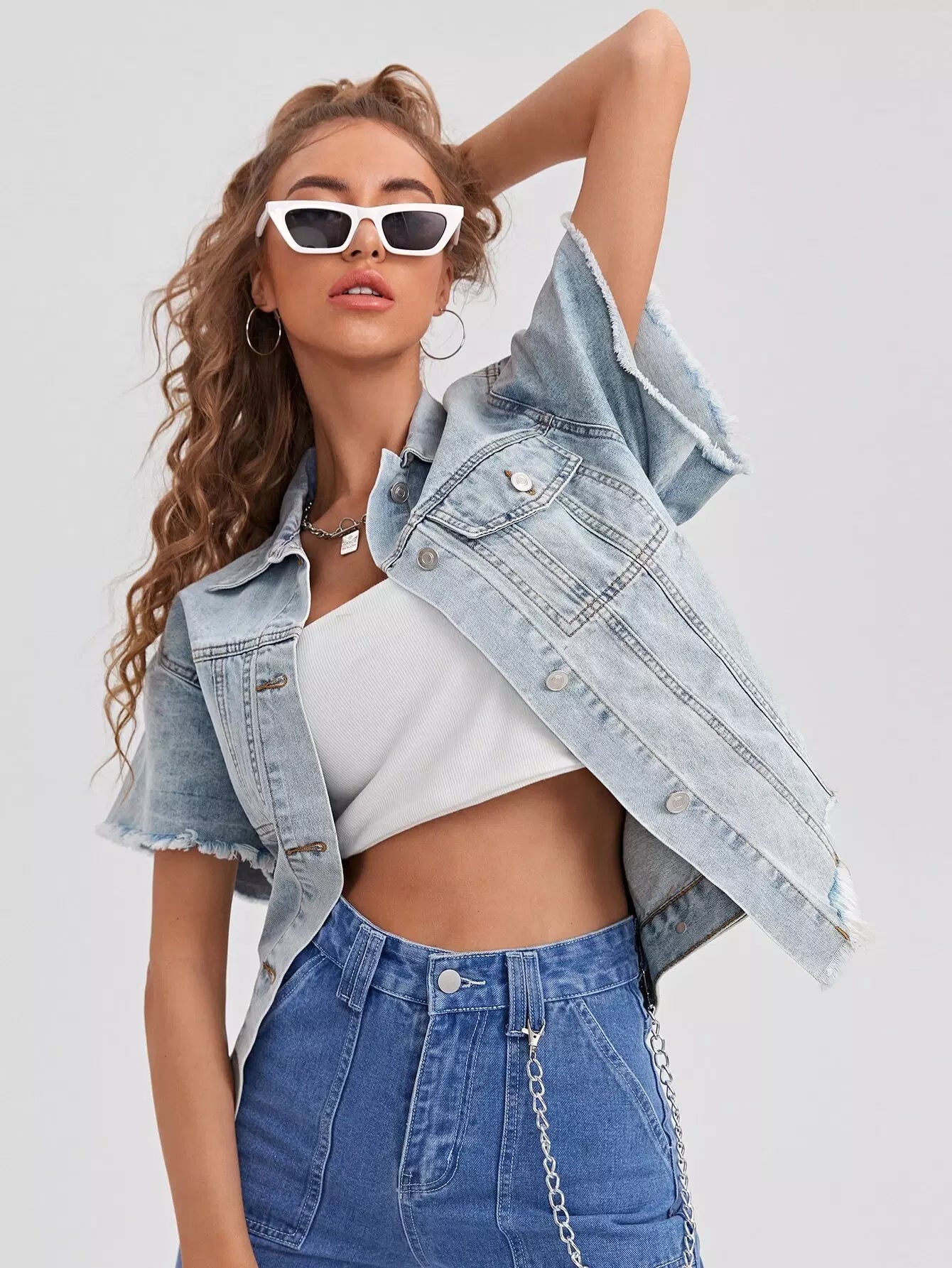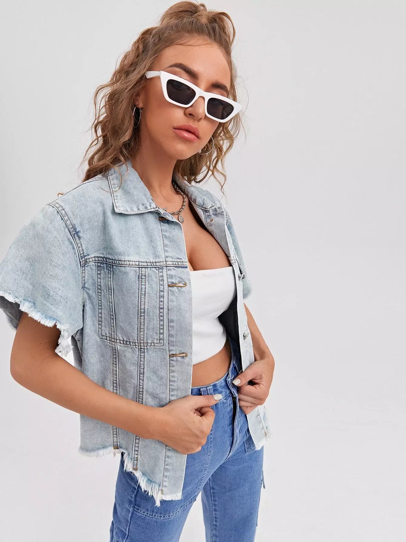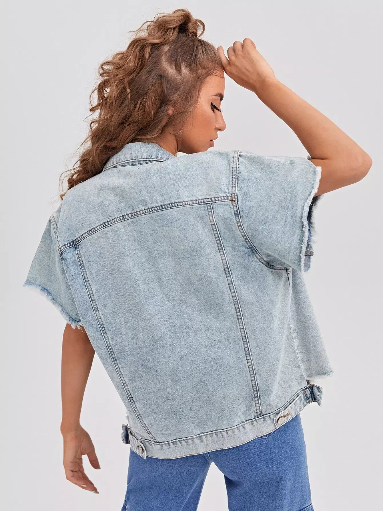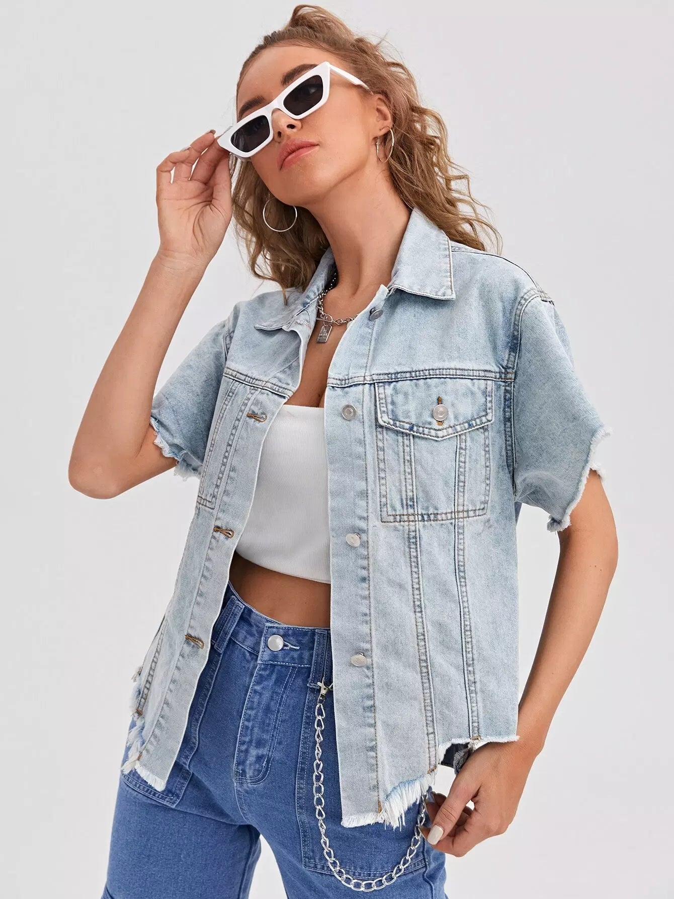 جاكيت دنيم غير متماثل بحافة غير متماثلة من الدنيم الخام