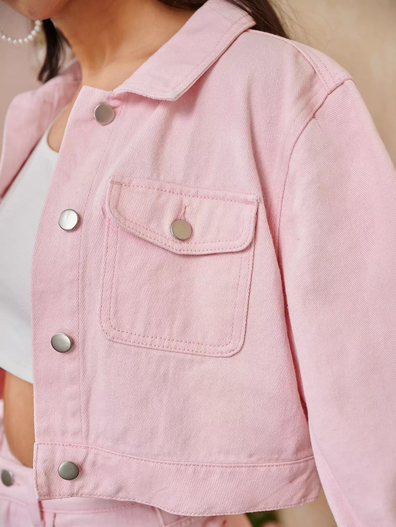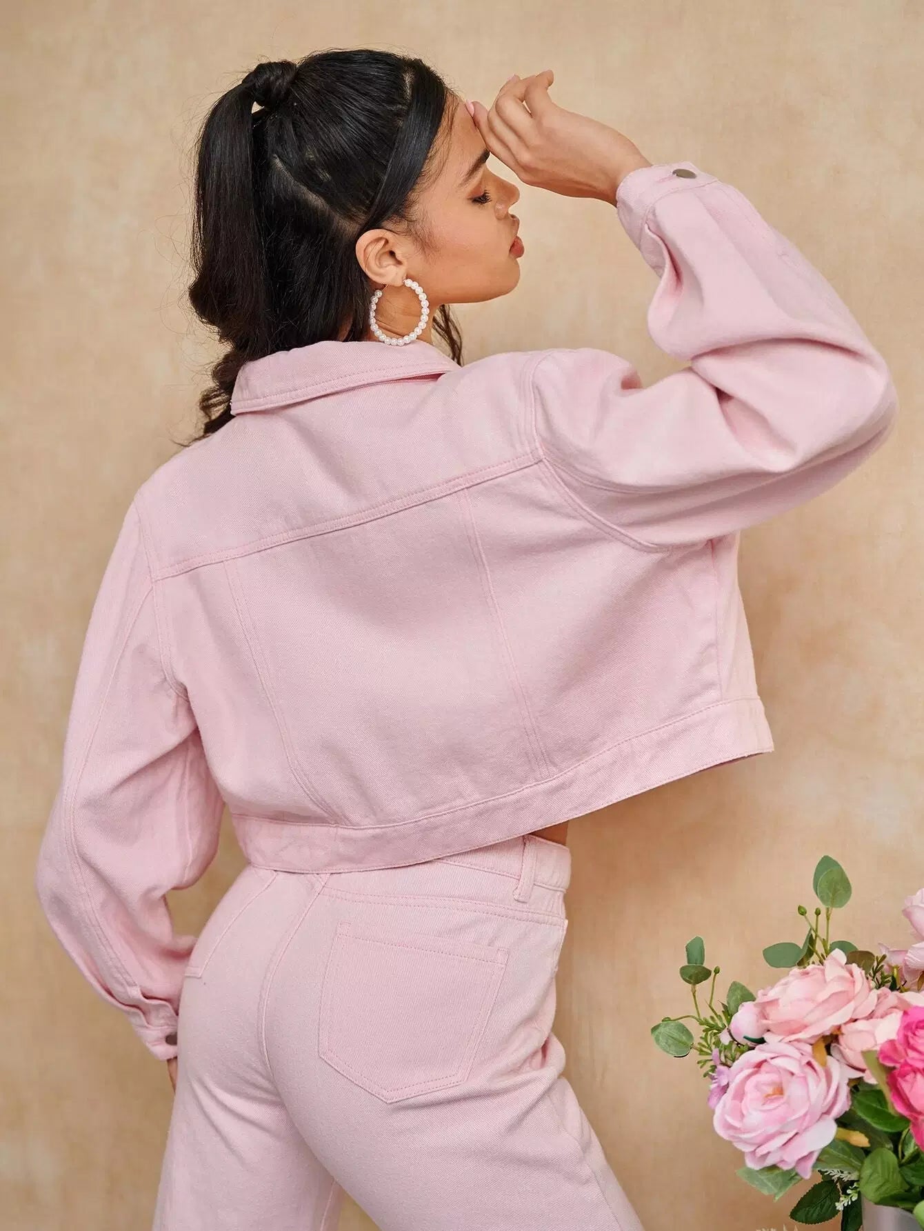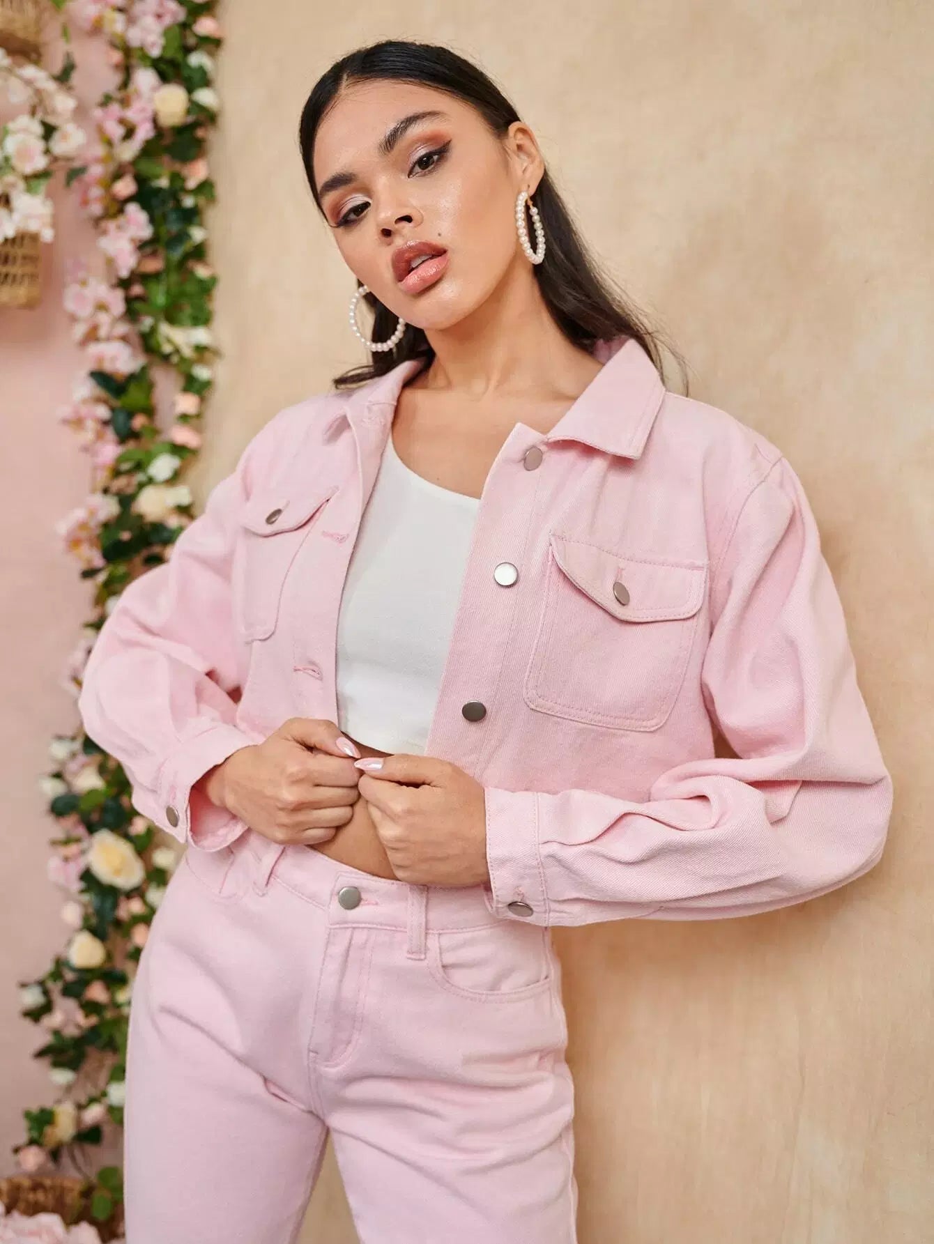 للنساء - سترة من الدنيم الصلب بجيب قلاب