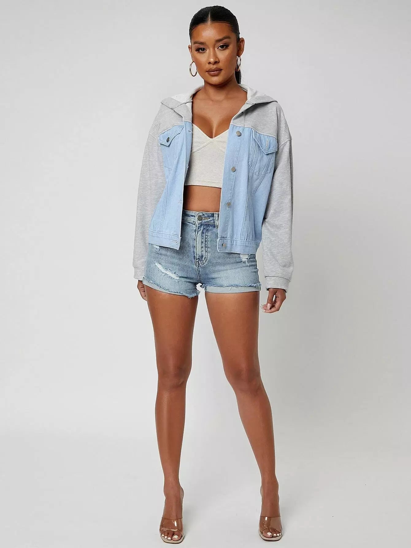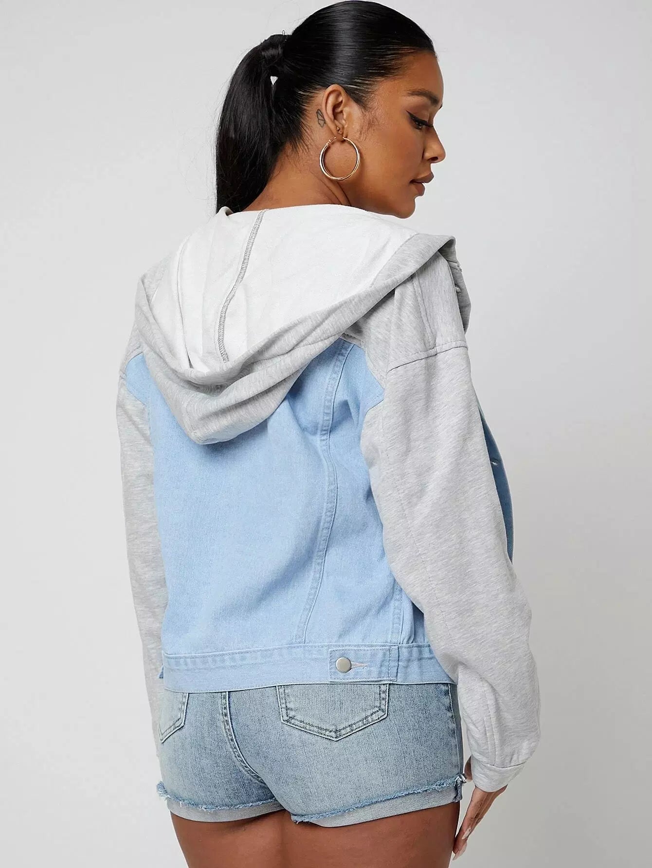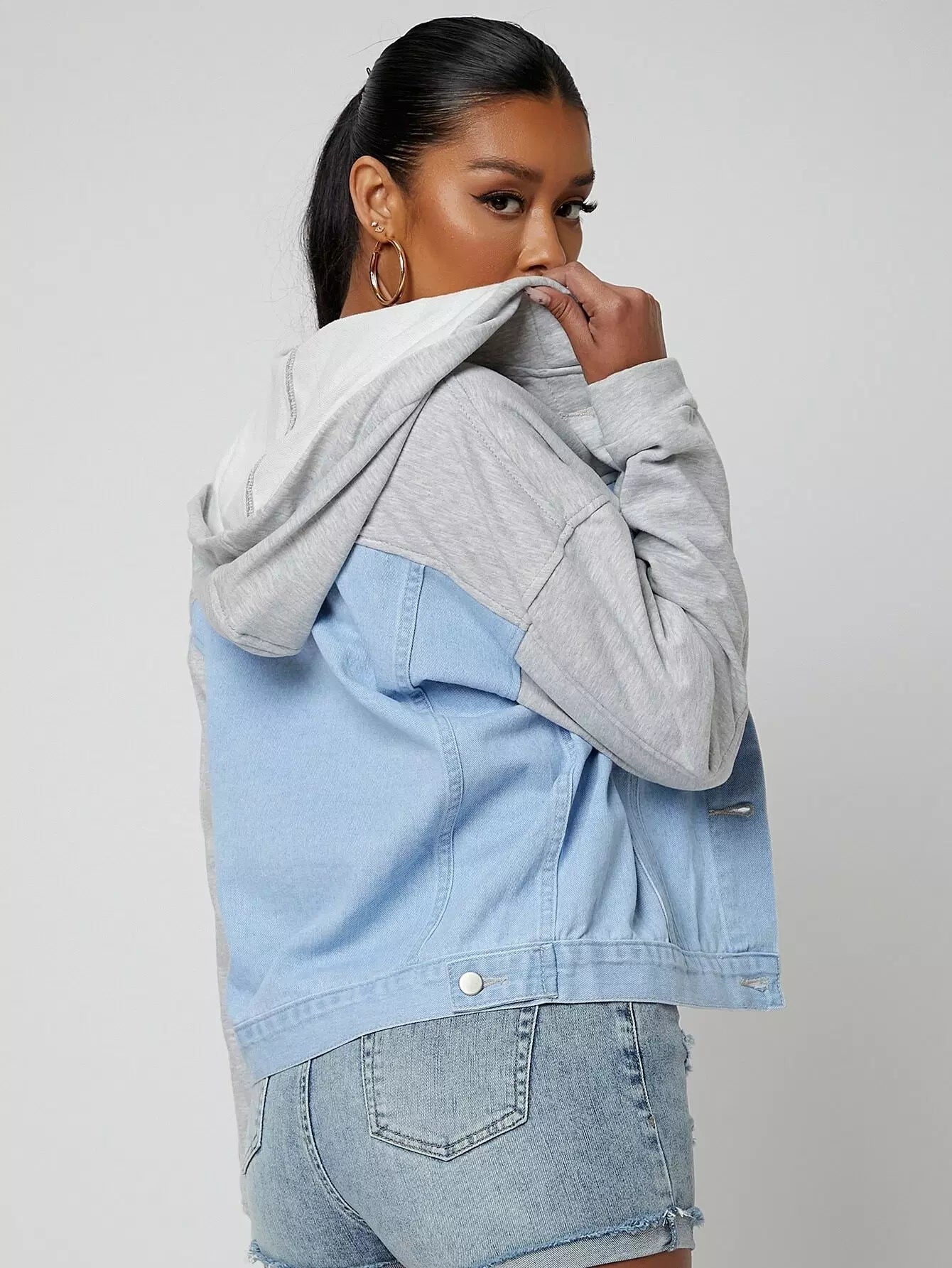 جاكيت دنيم بغطاء كتفين منسدل الكتفين بلونين