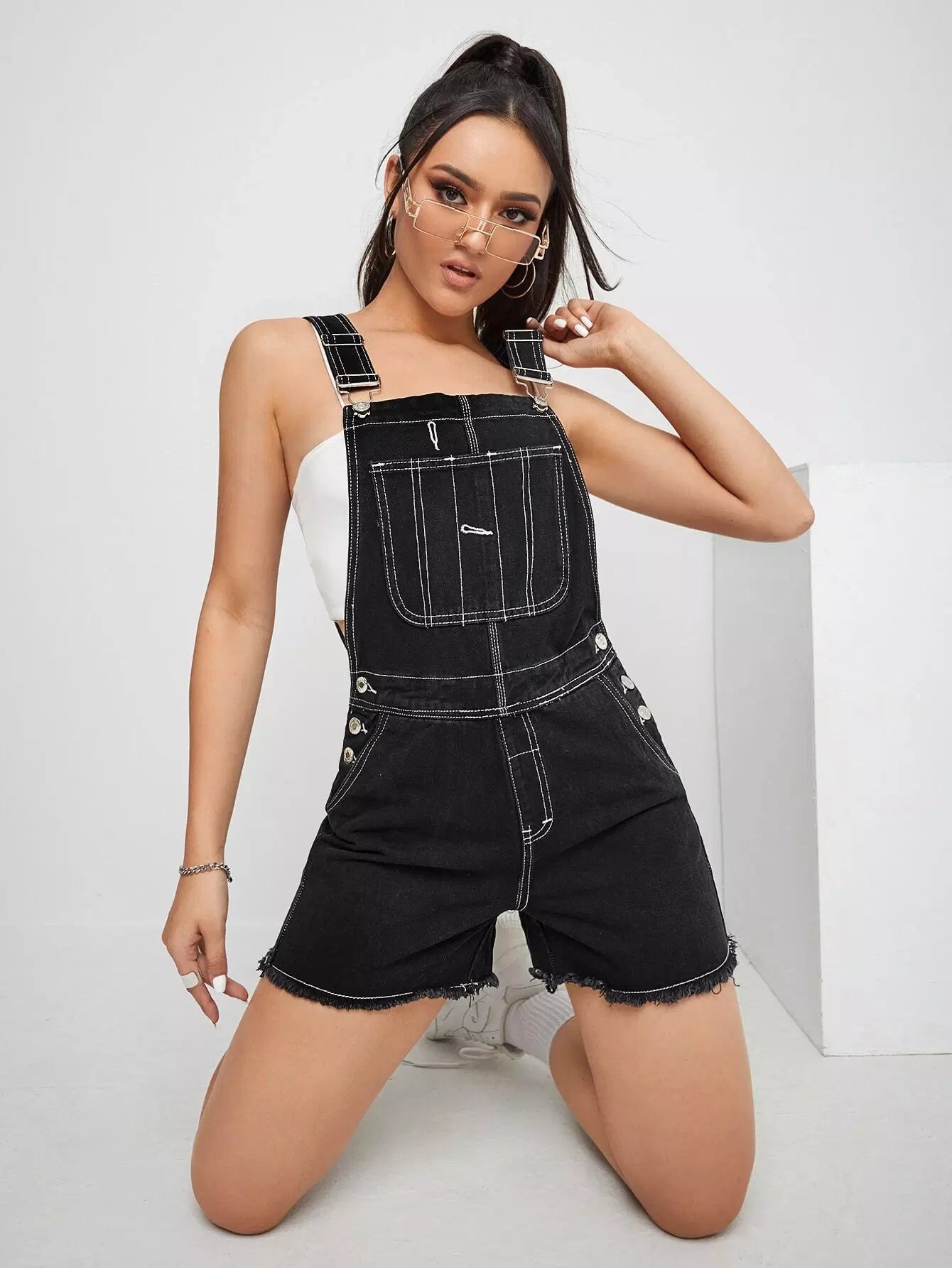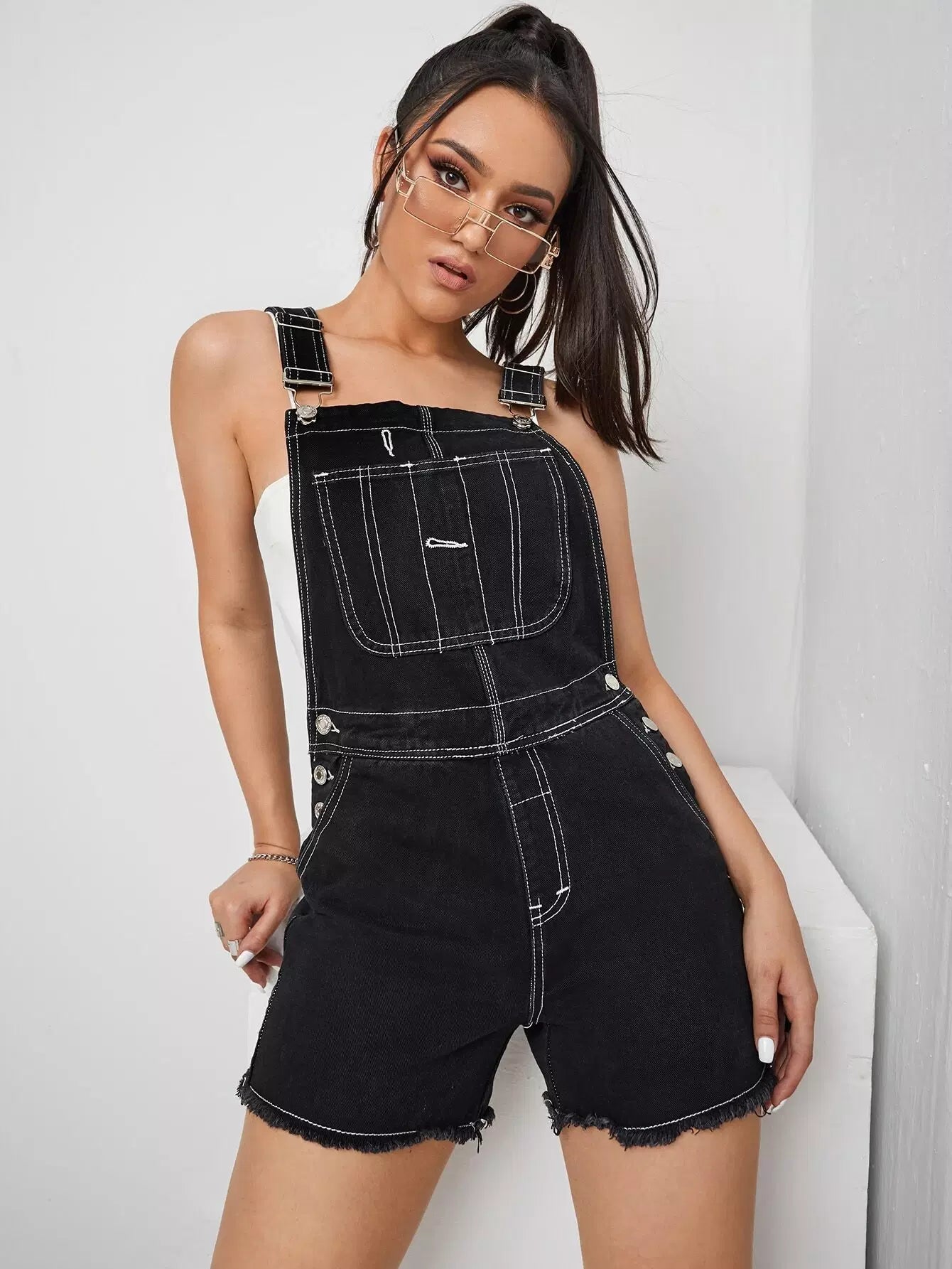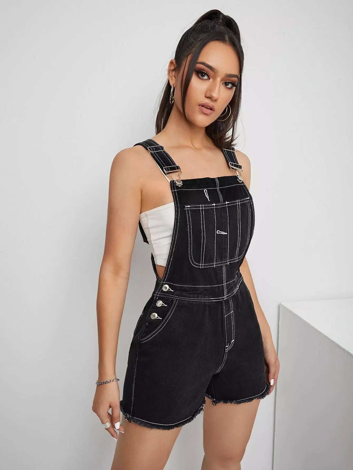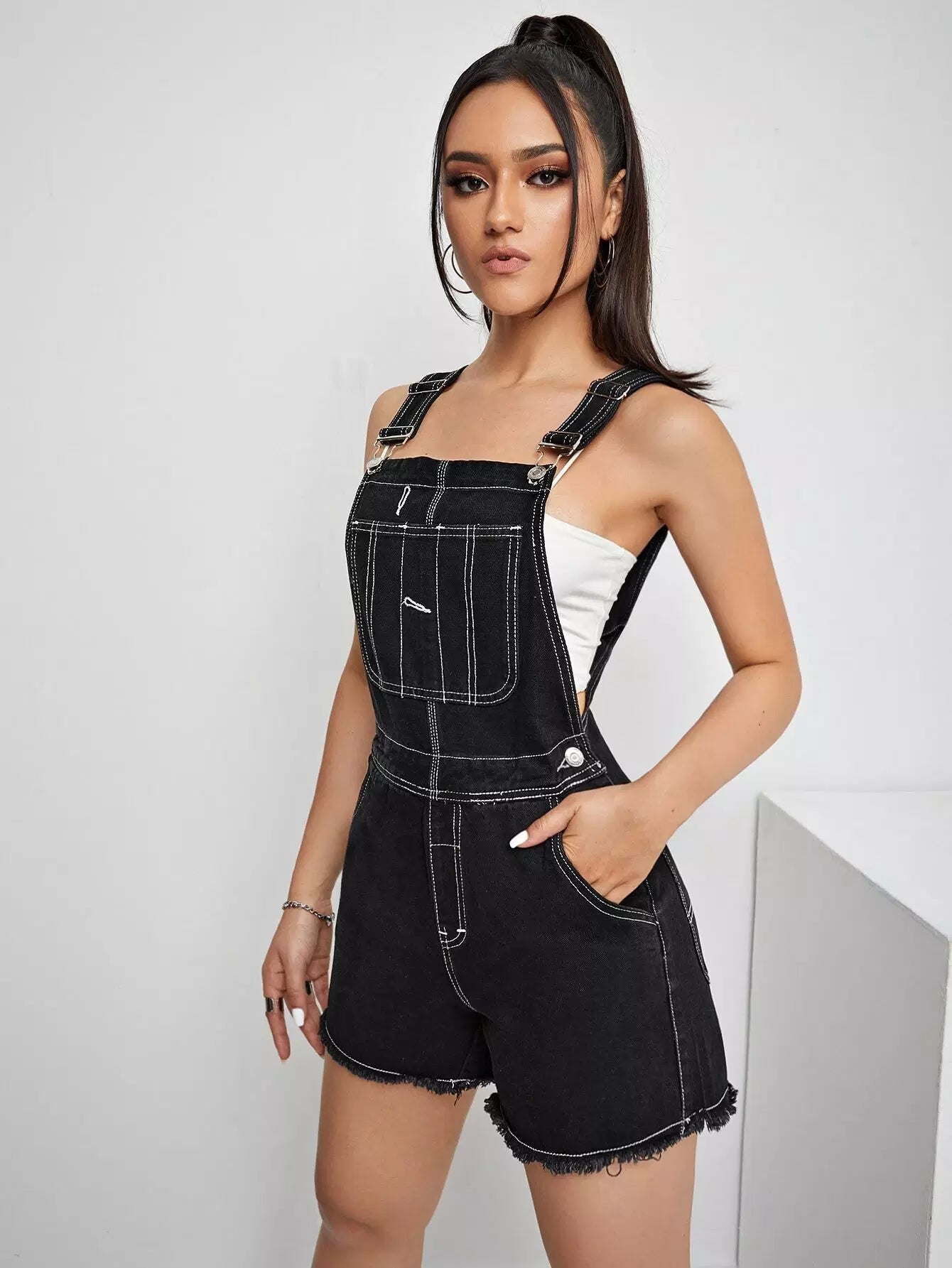 أفرول دنيم بحاشية من الدنيم الخام بخياطة متباينة