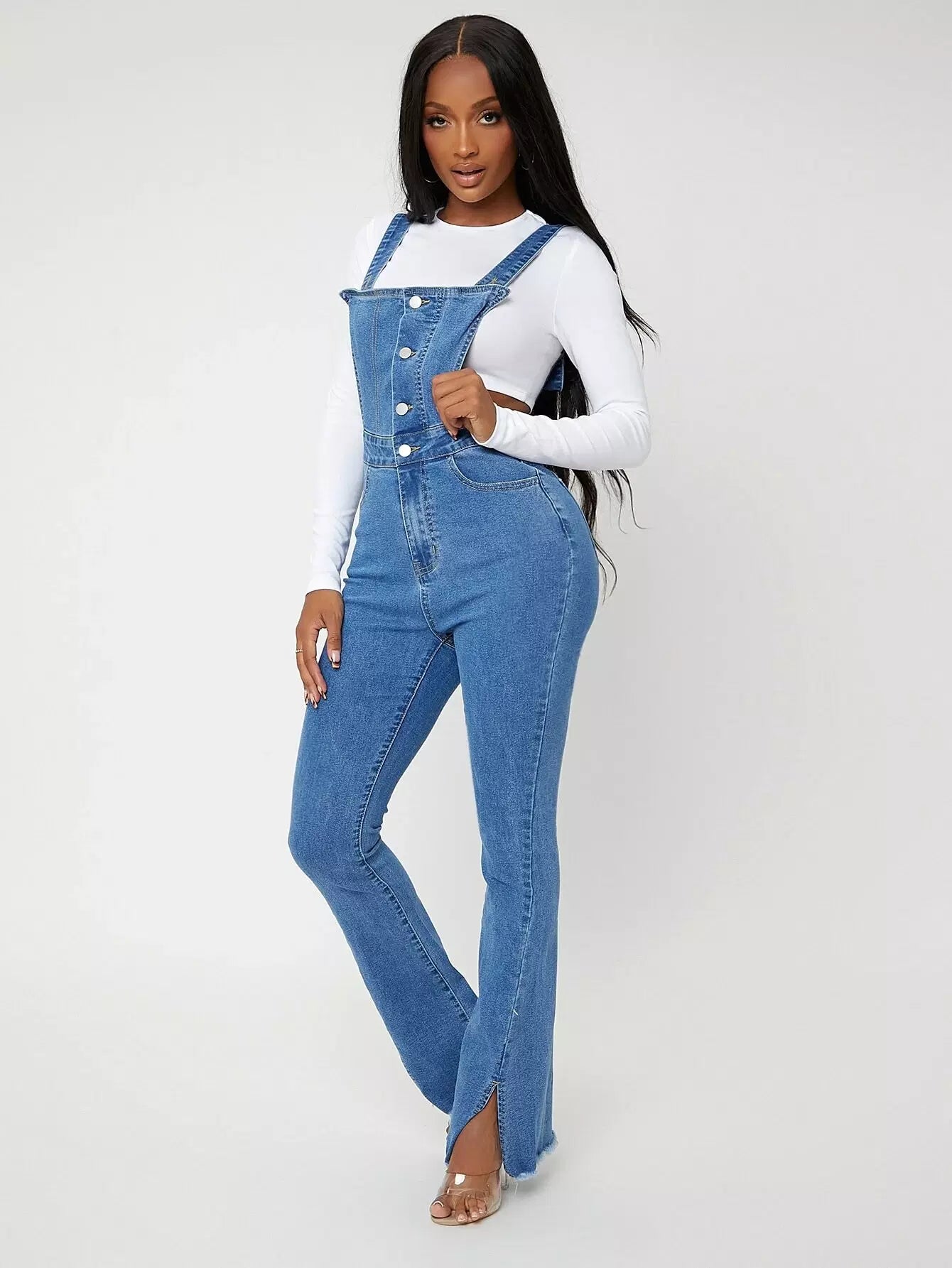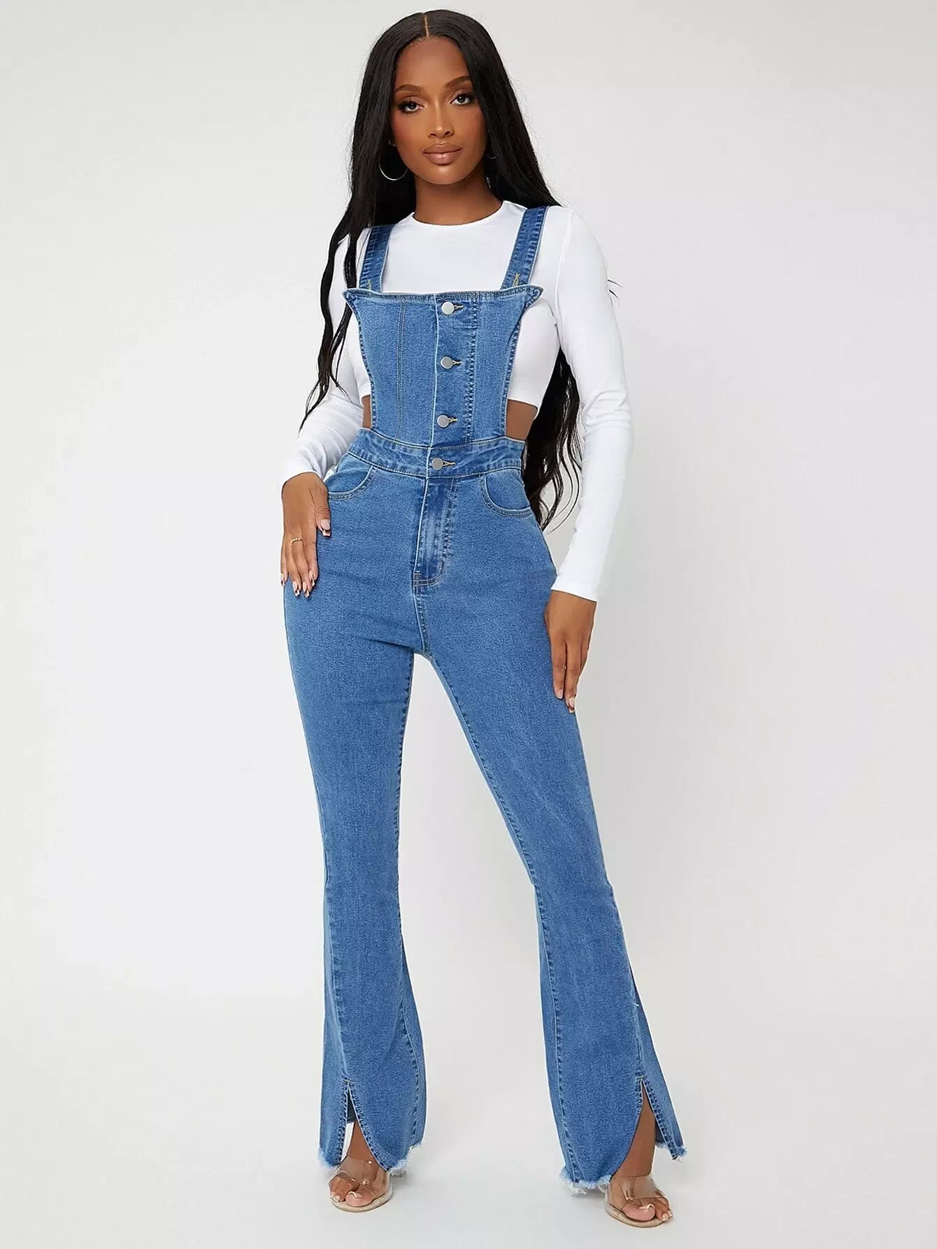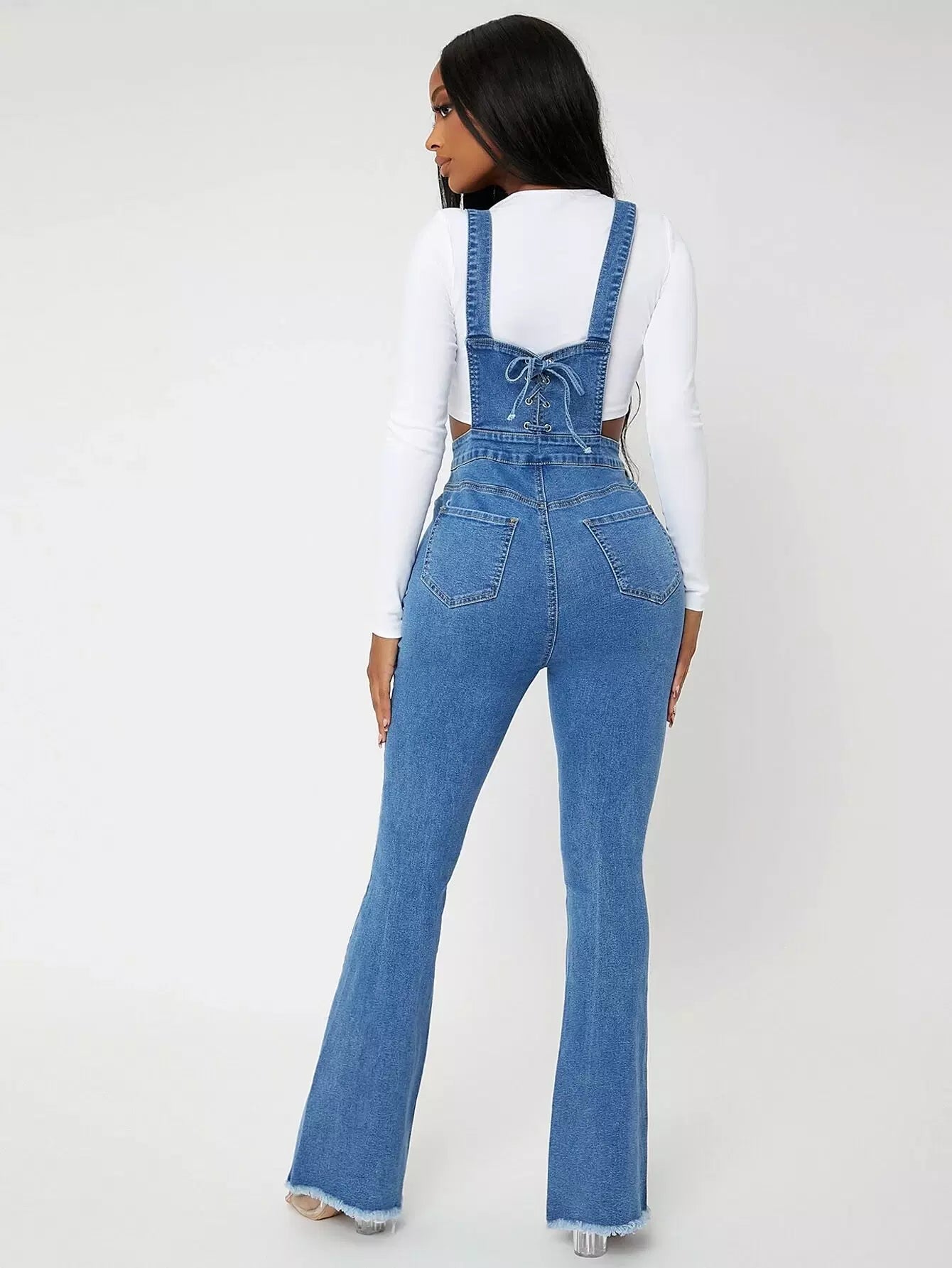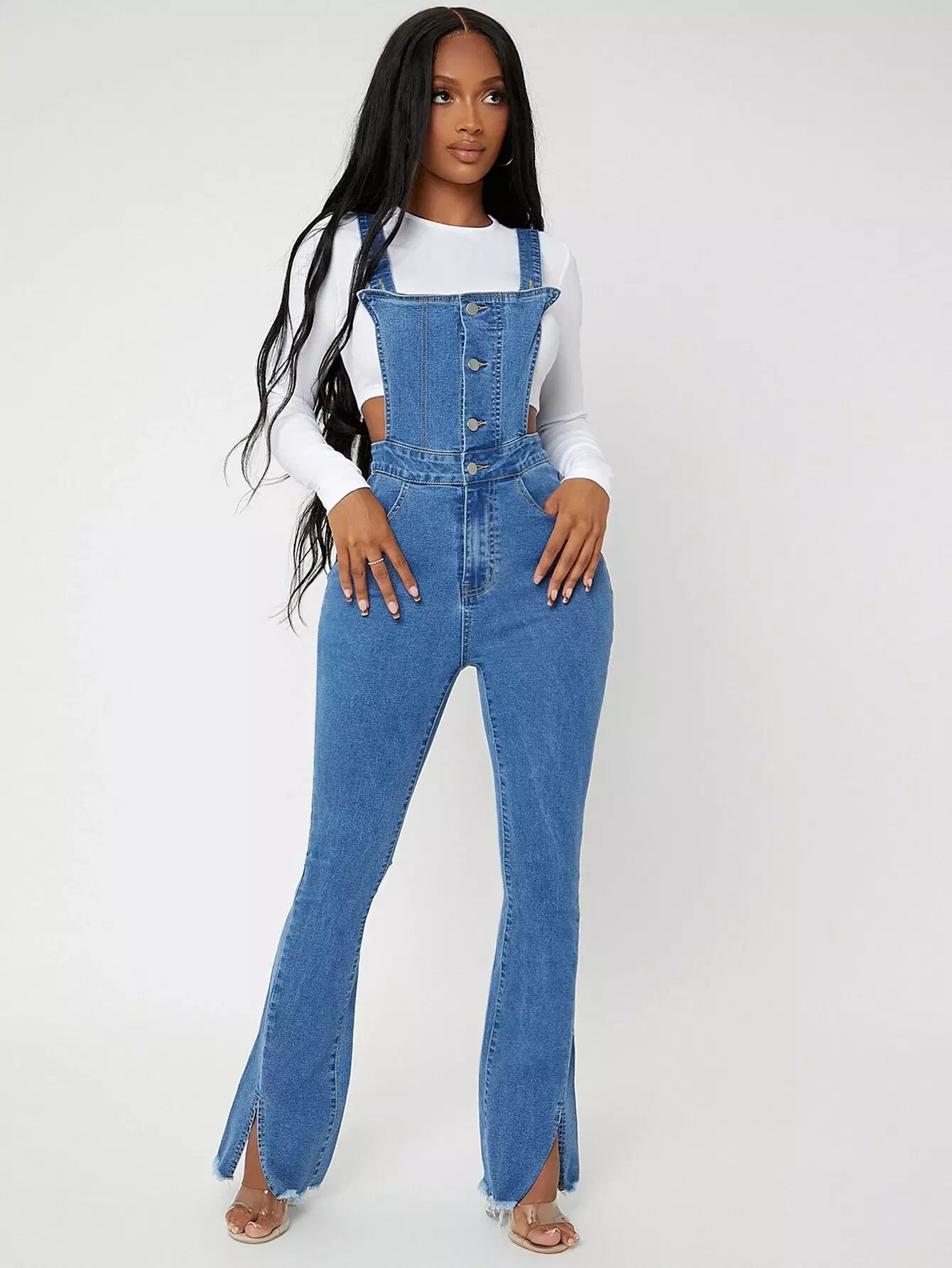 جمبسوت من الدنيم برباط من الخلف بحافة خامة منقسمة من الخلف