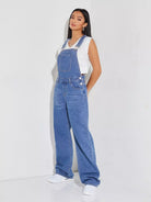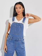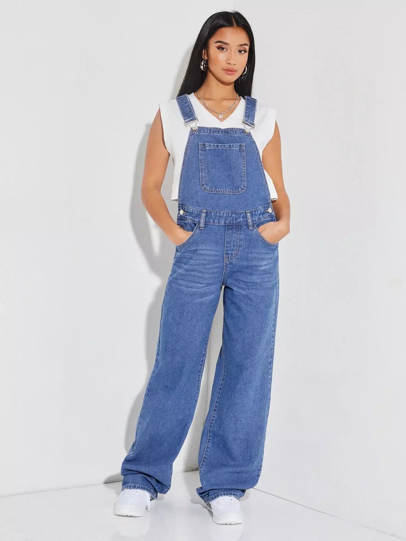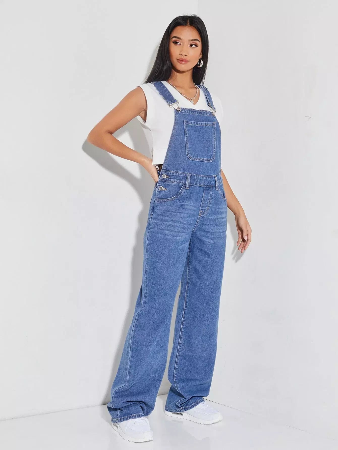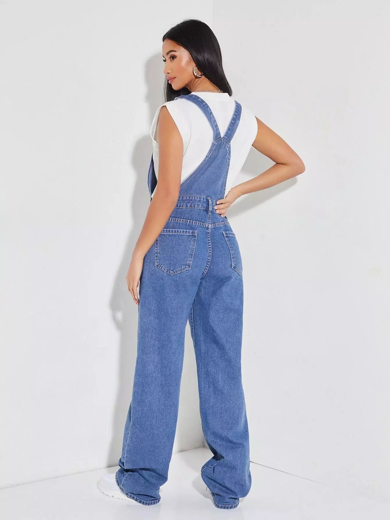 جمبسوت جينز واسع الساق مع جيوب مرقعة