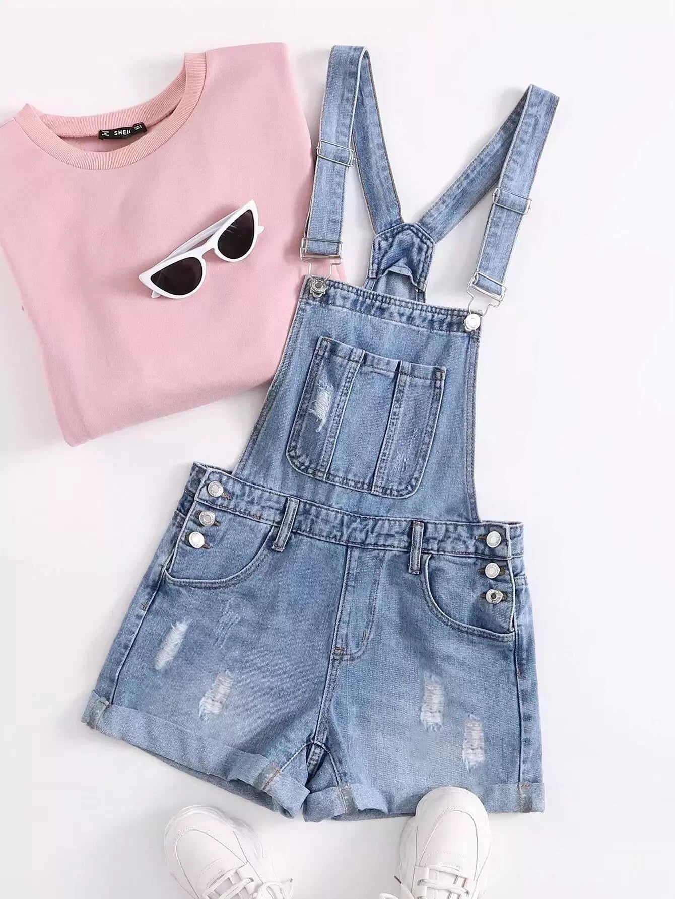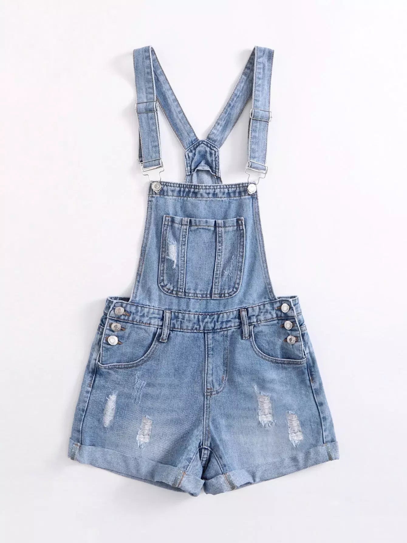 شورت جينز ممزق بجيب أمامي ممزق بحافة دنيم ممزق