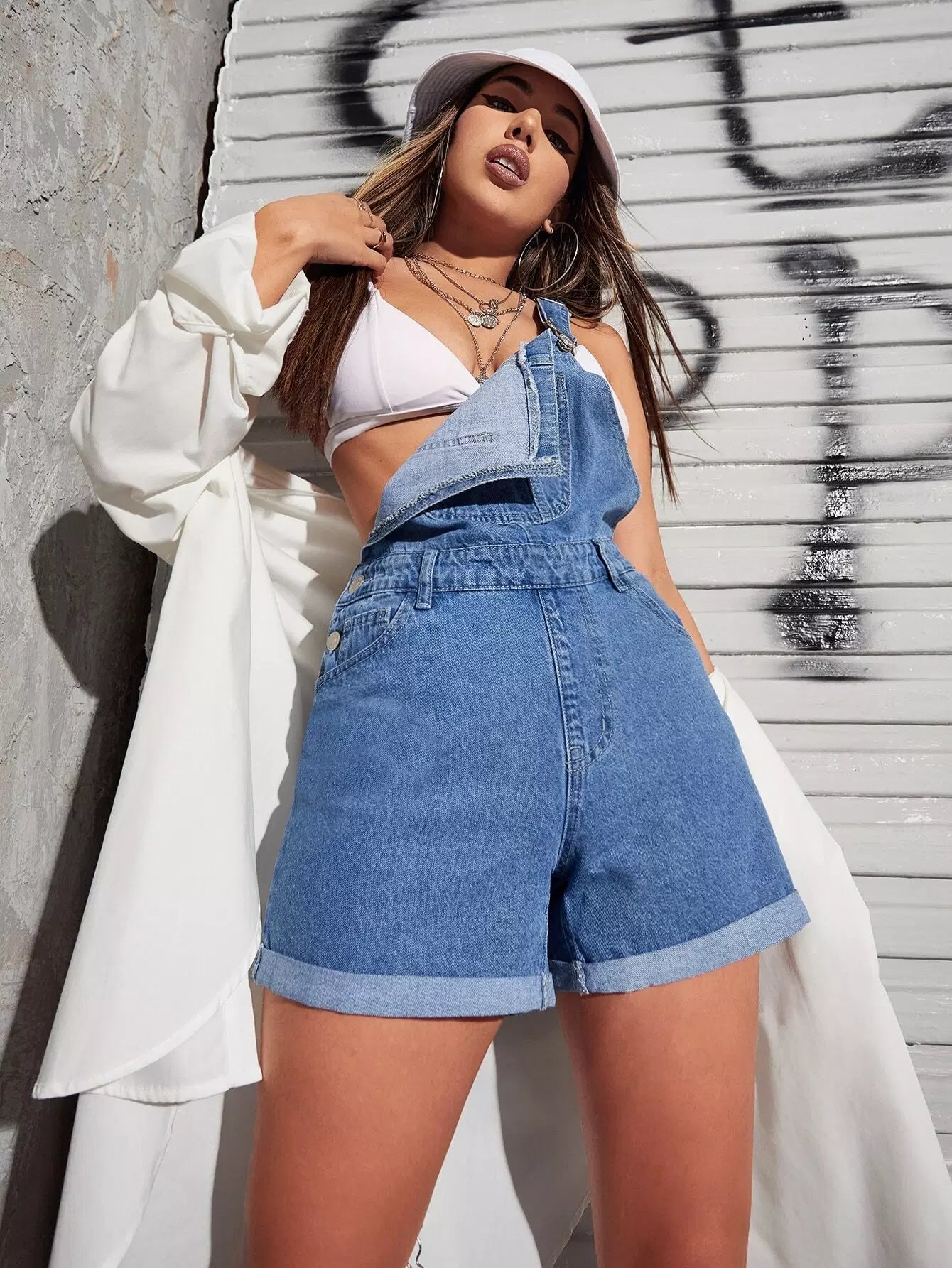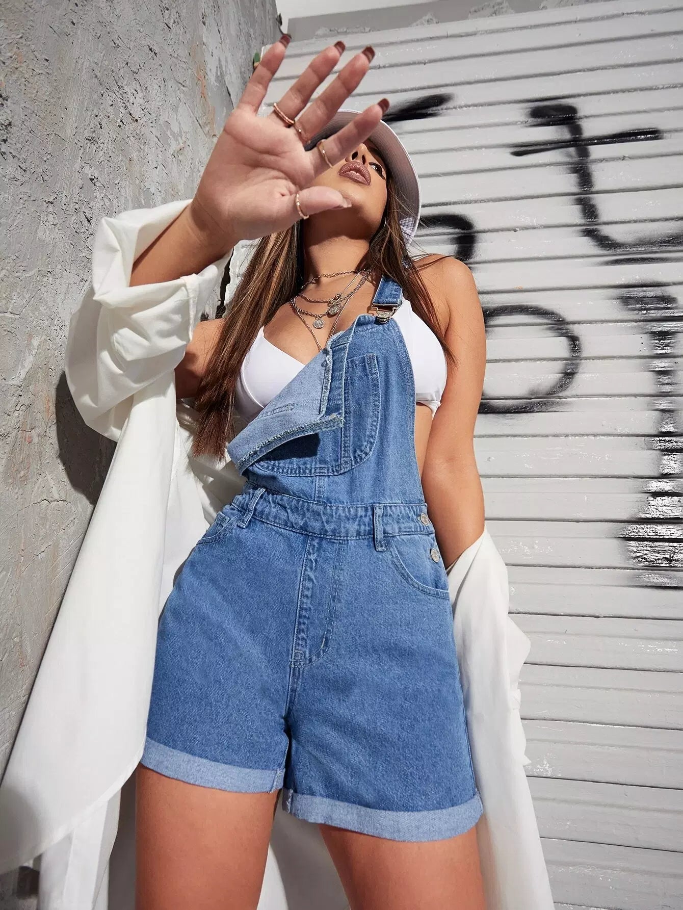أفرول دنيم بحاشية ملفوفة بدون بلوزة