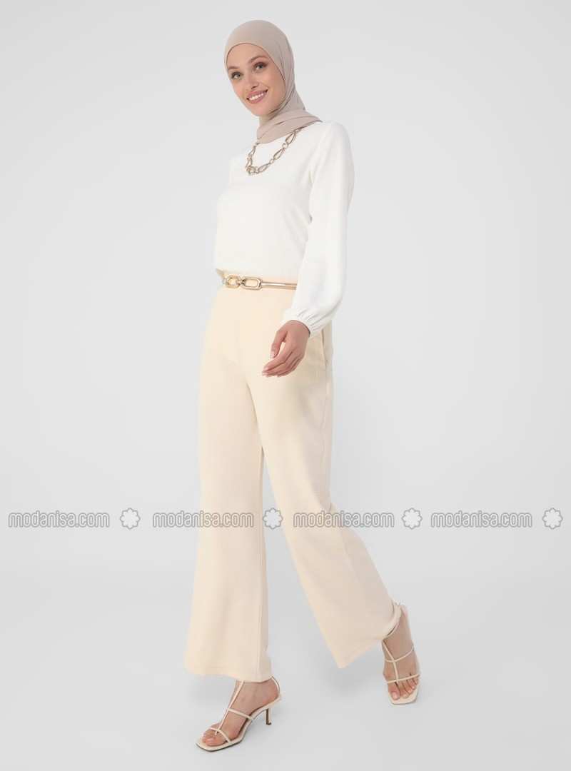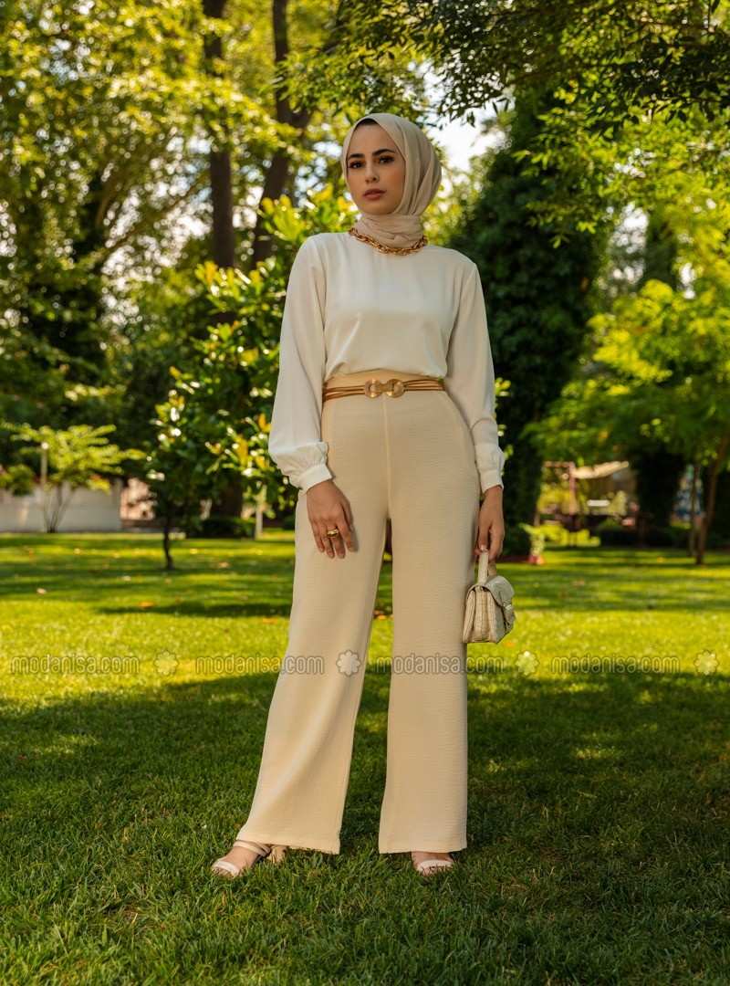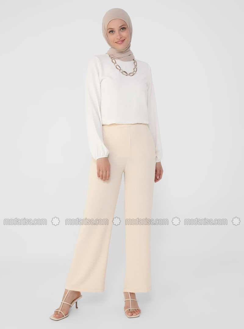 هذا الطراز البيج مصنوع من القطن ويتميز بقصة واسعة جذابة تناسب أي مناسبة غير رسمية أنيقة.