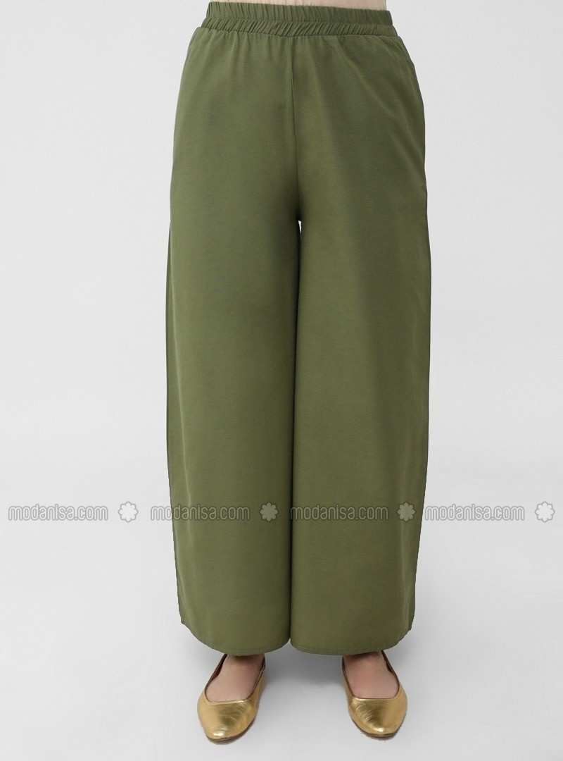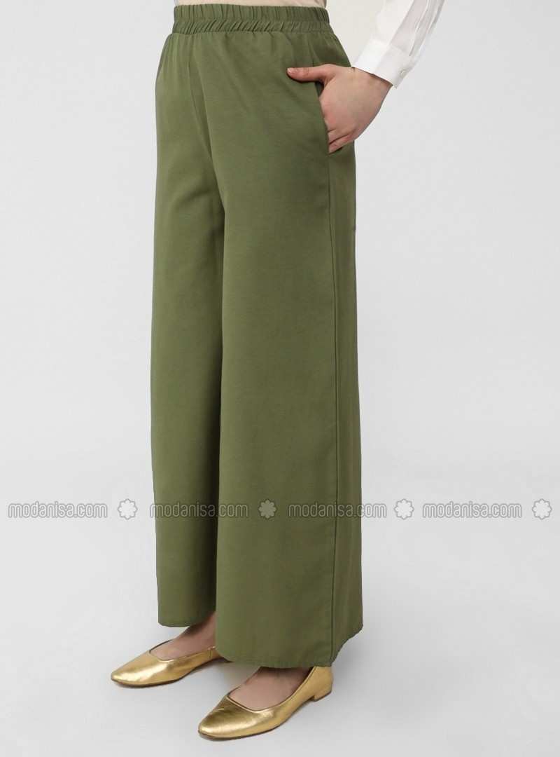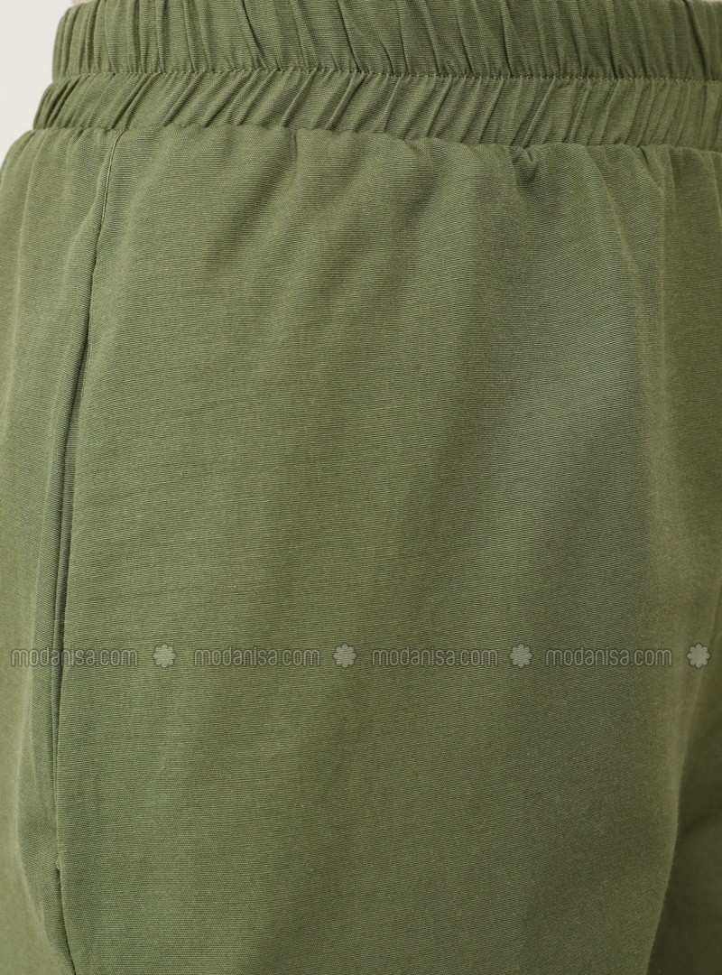 بنطال حقيبة أكسفورد قطني بخصر مطاطي كاكي كاجوال