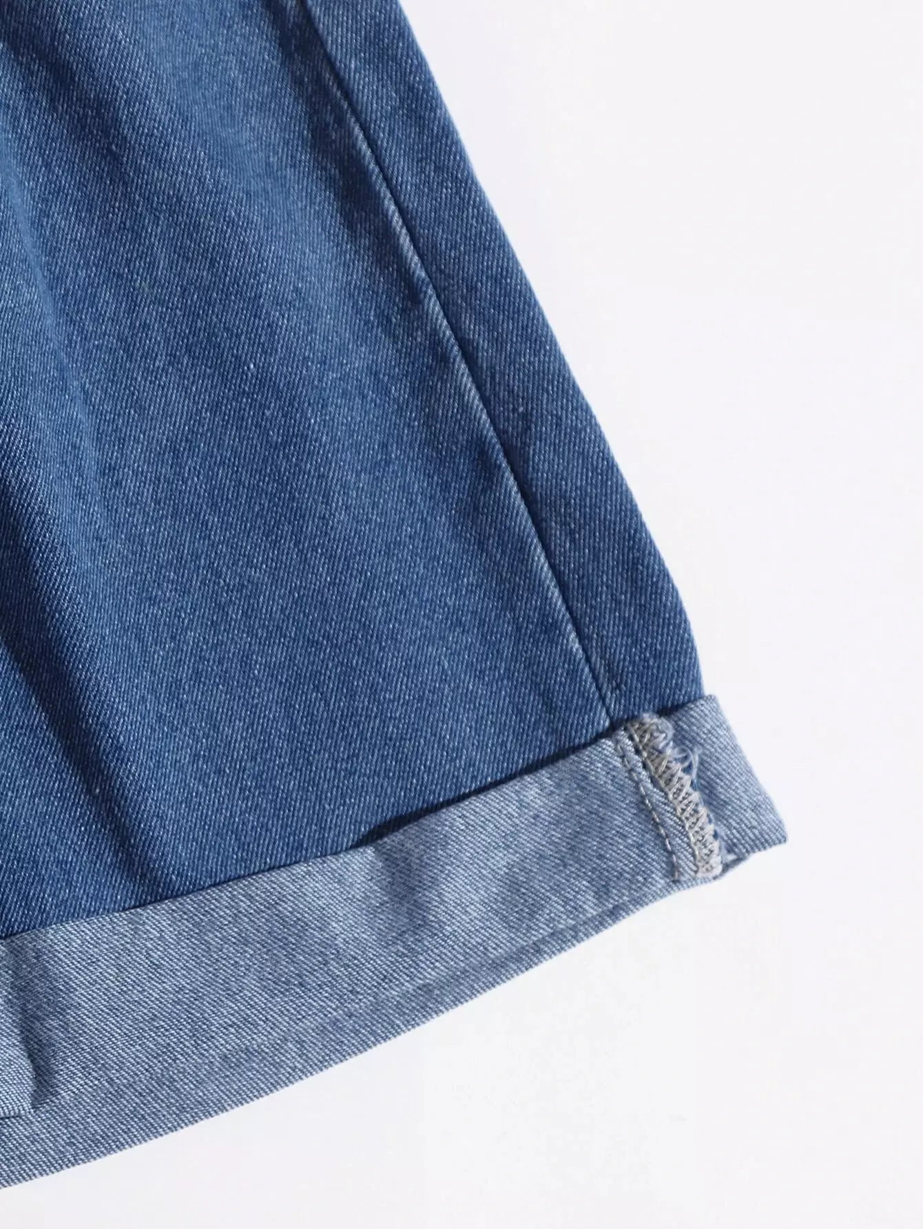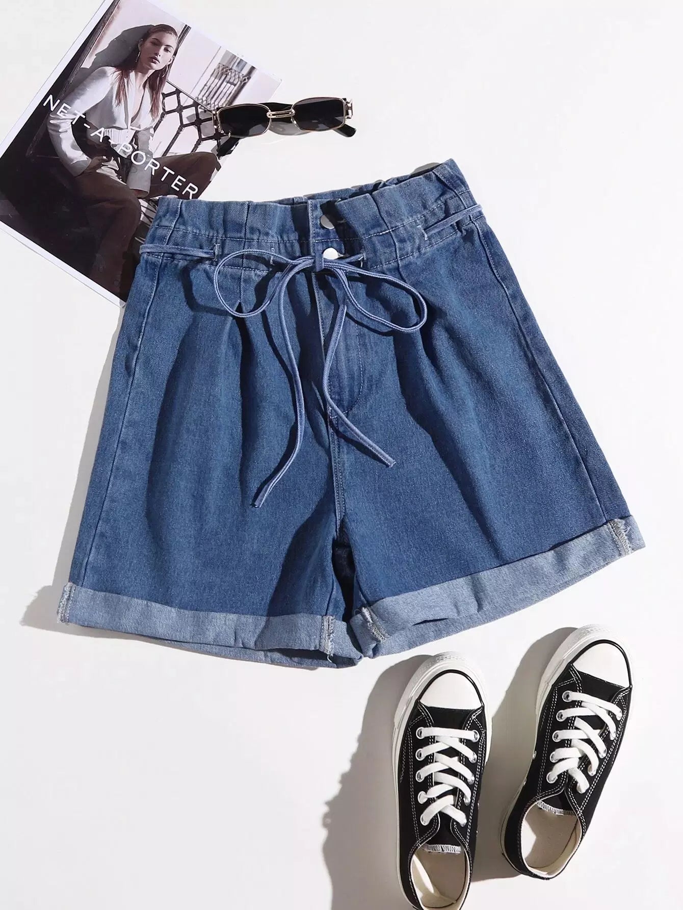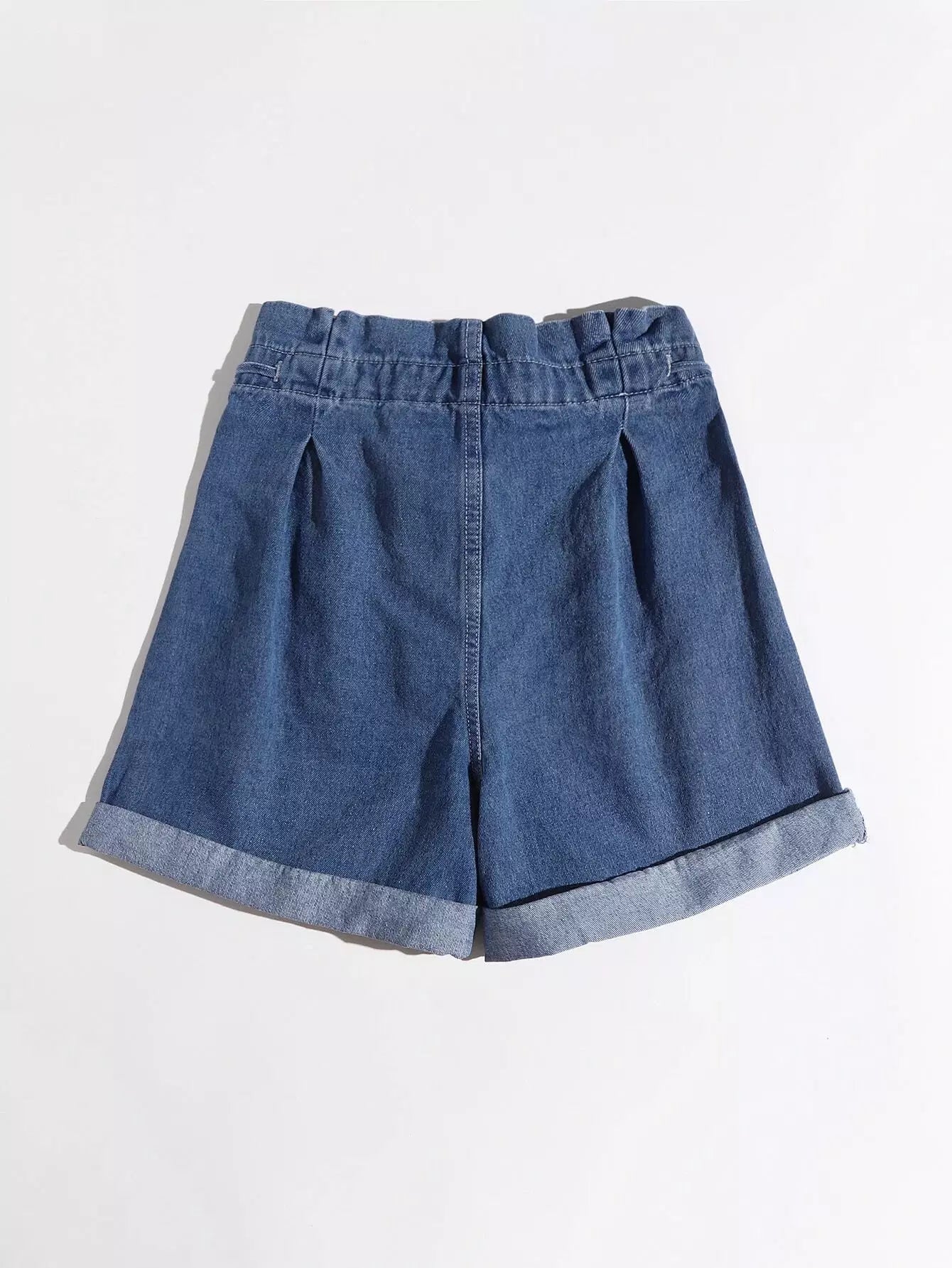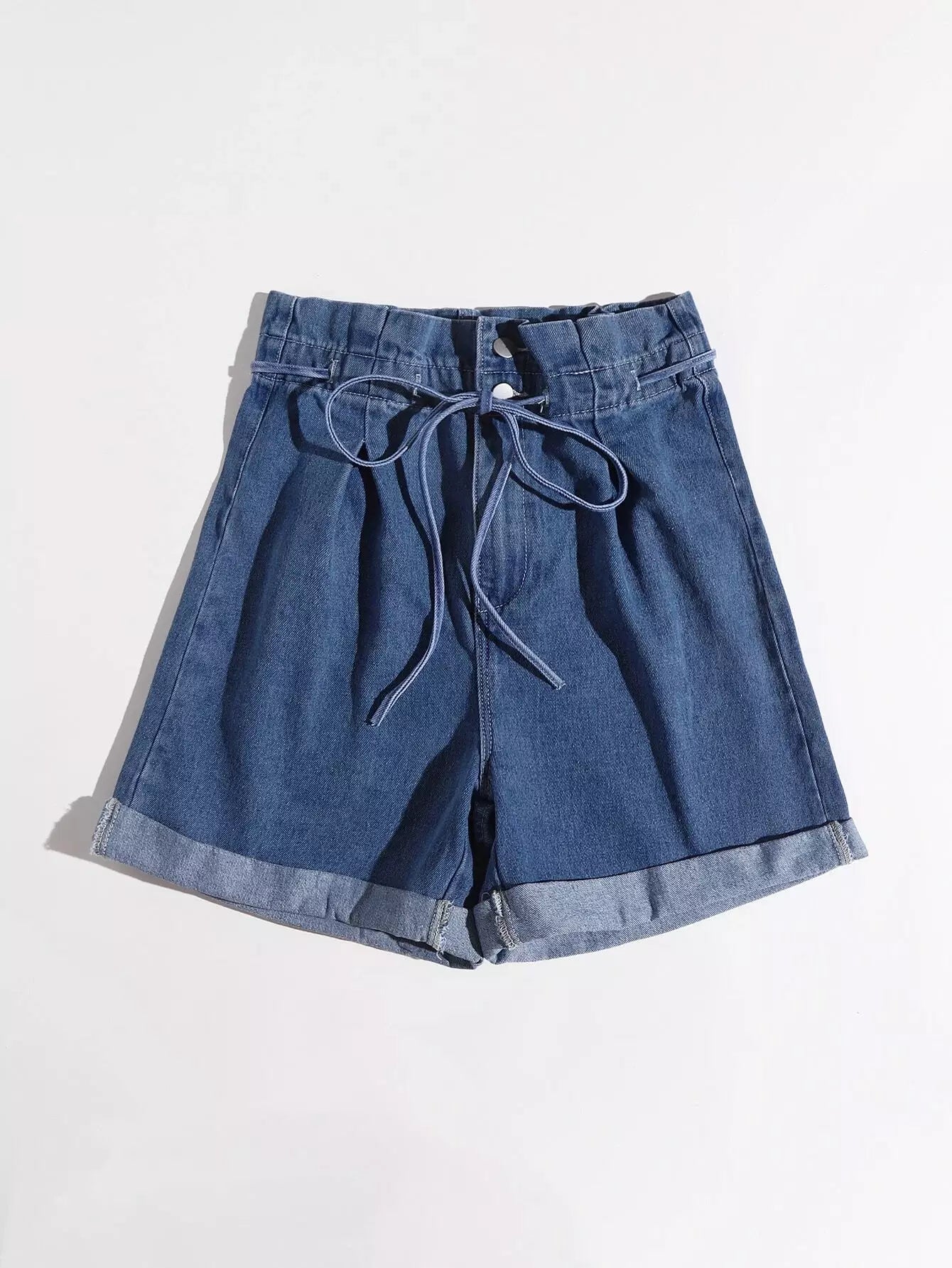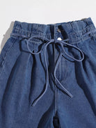 شورت جينز بخصر كيس ورقي برباط من الدنيم