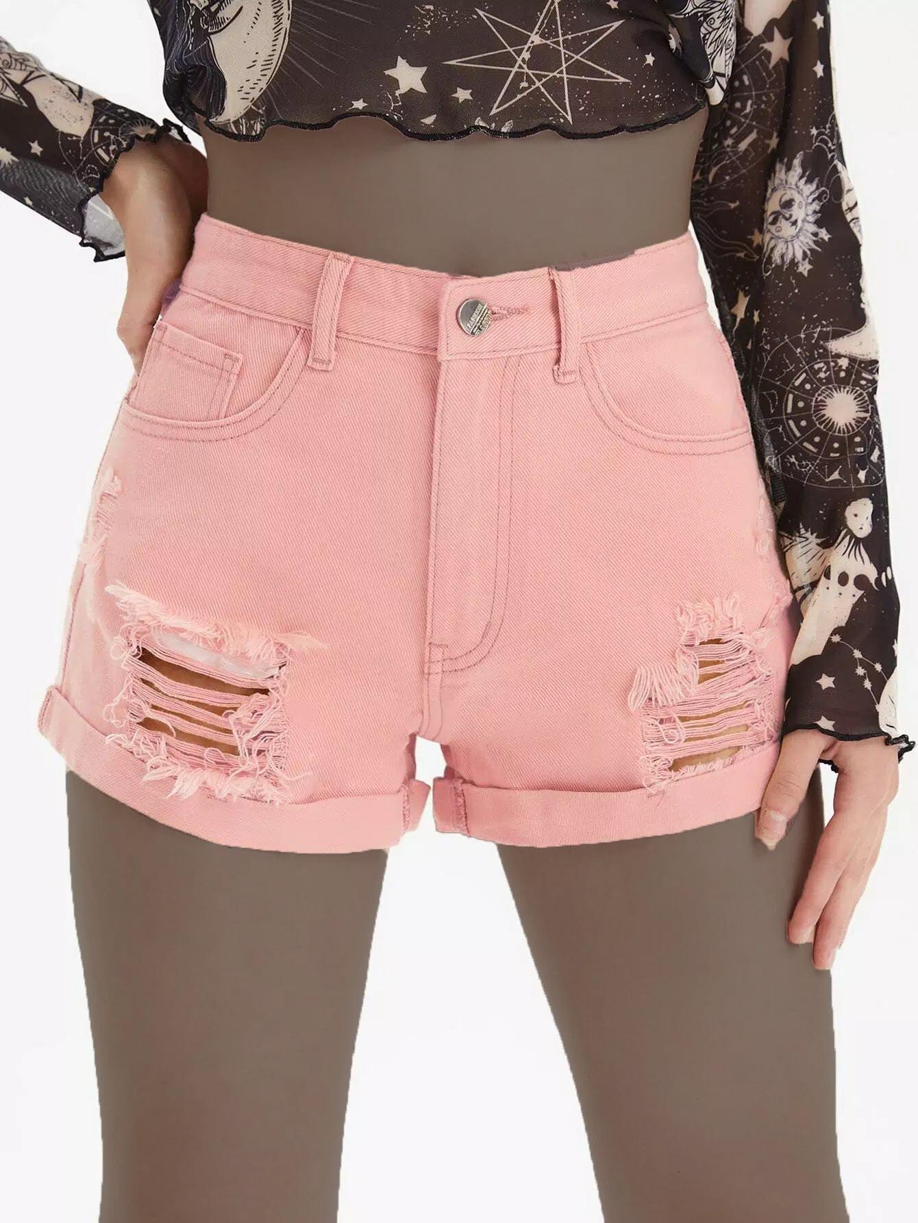 شورت دنيم بحافة ممزق ممزق بحواف ملفوفة