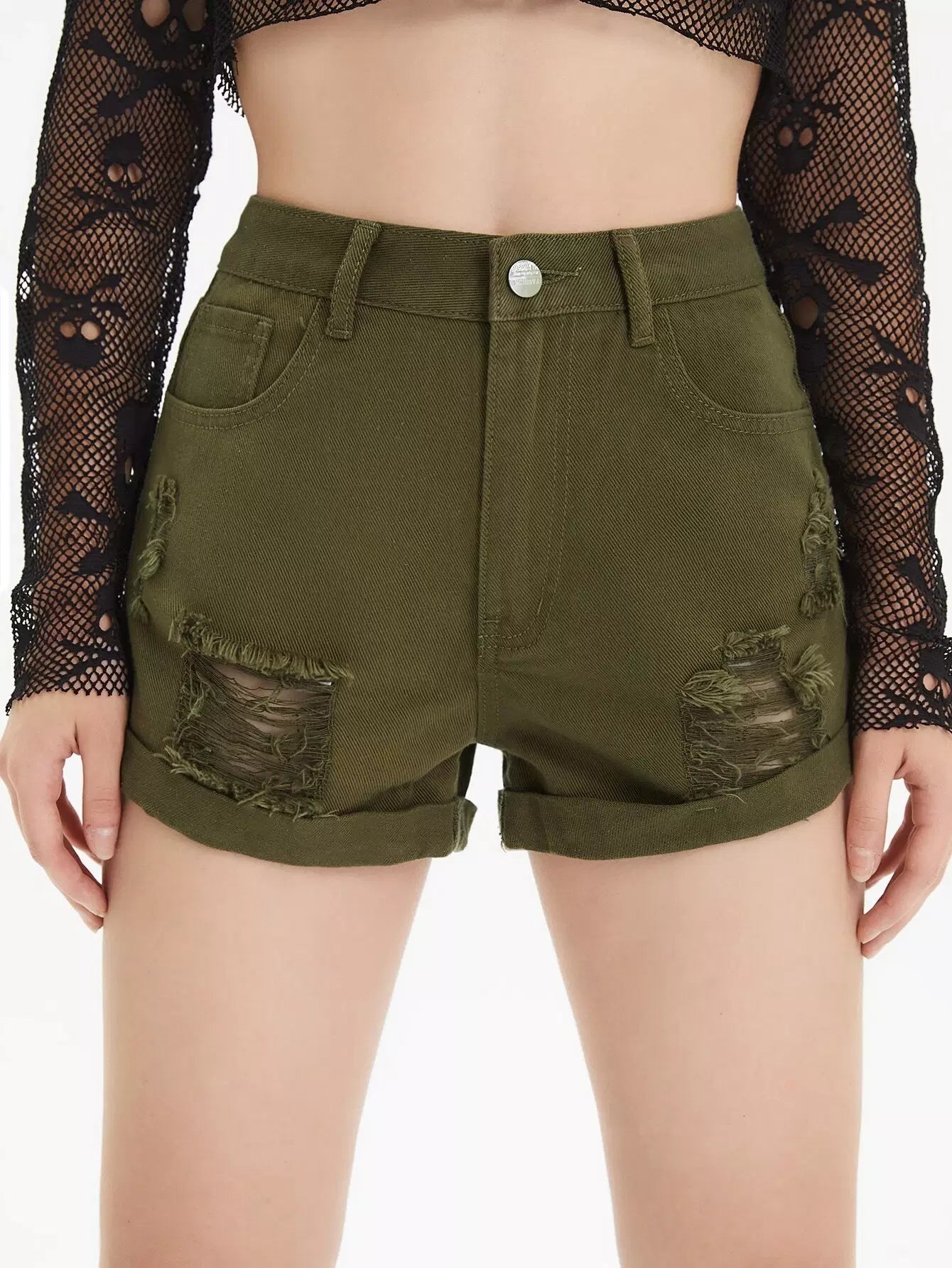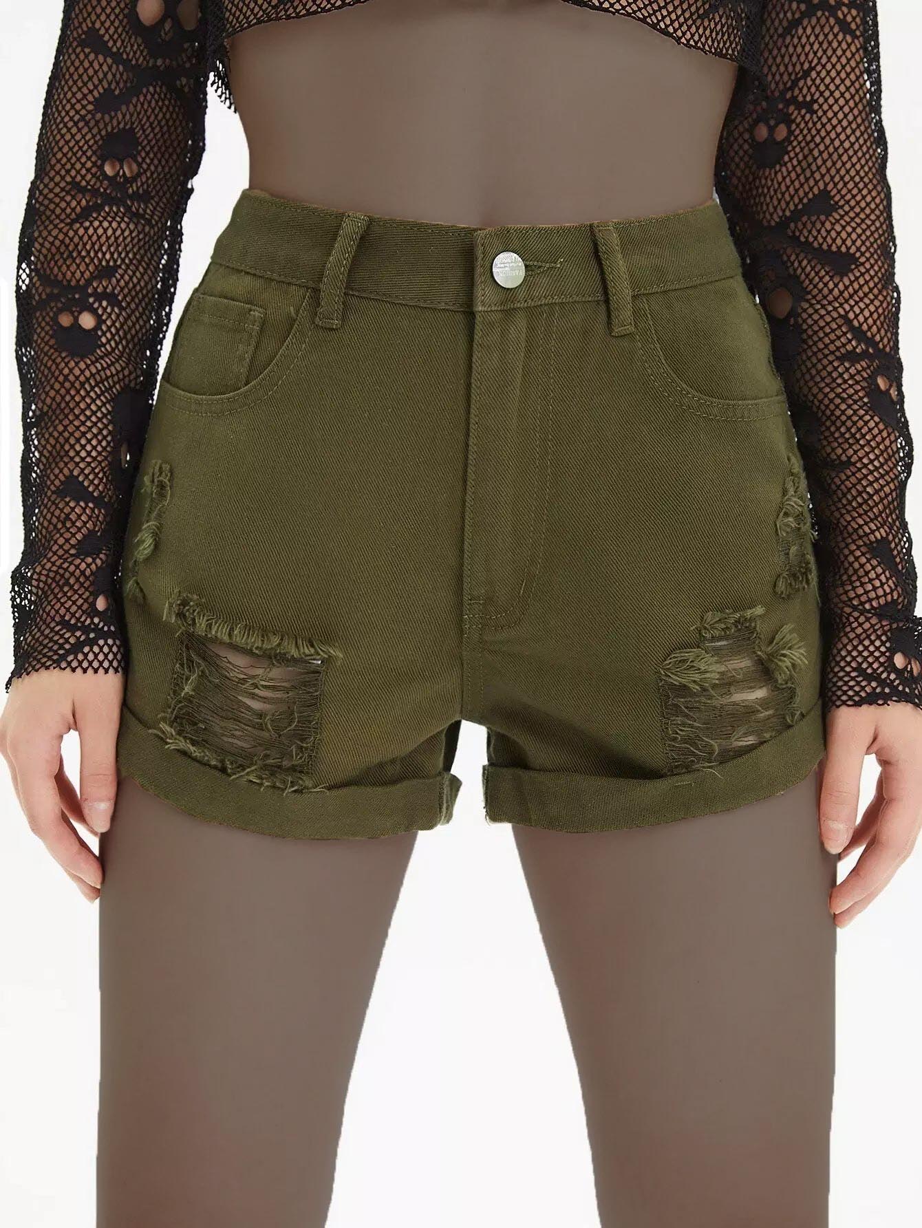 شورت دنيم بحافة ممزق ممزق بحواف ملفوفة