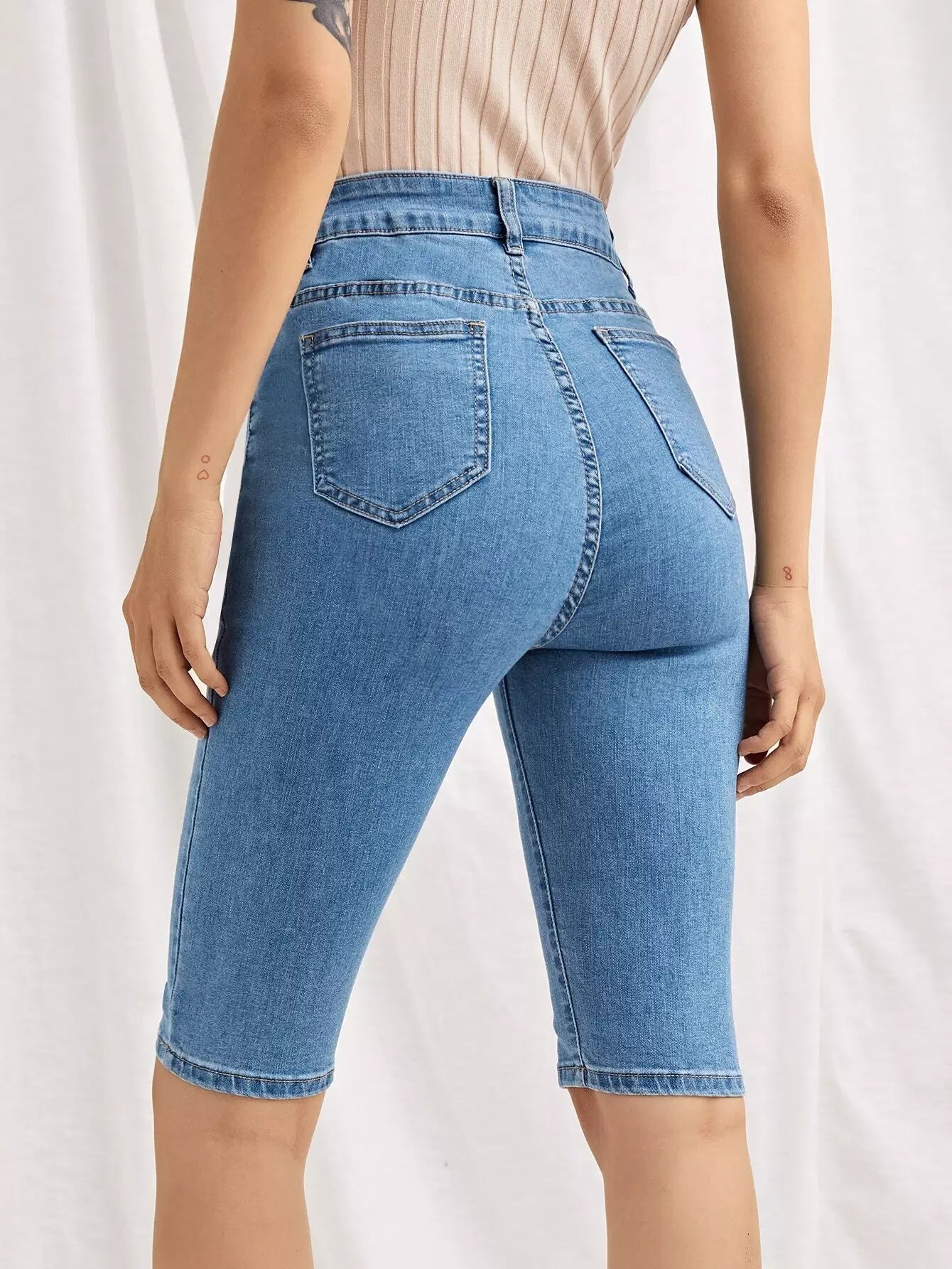 شورت جينز جينز عالي الخصر برمودا