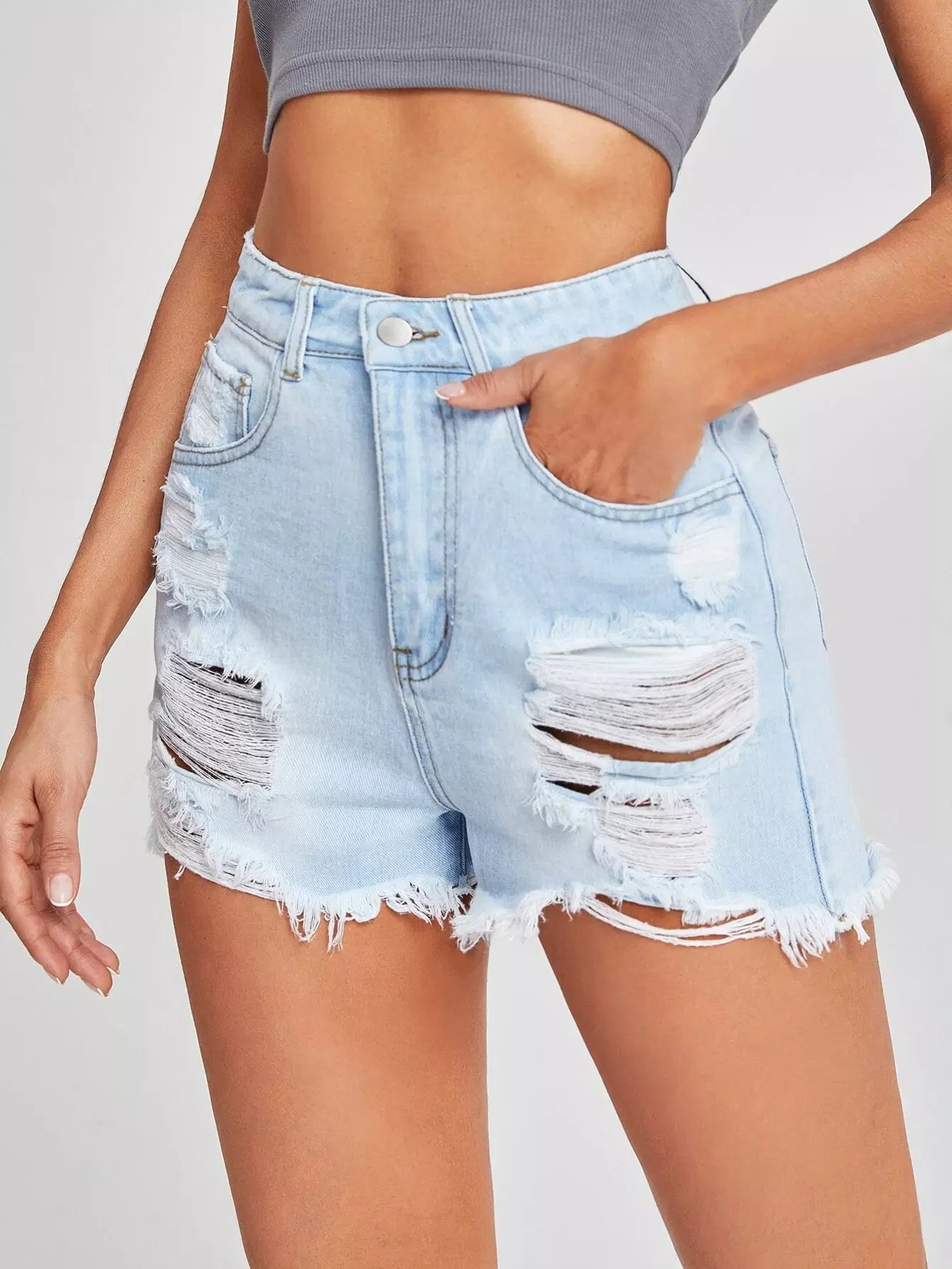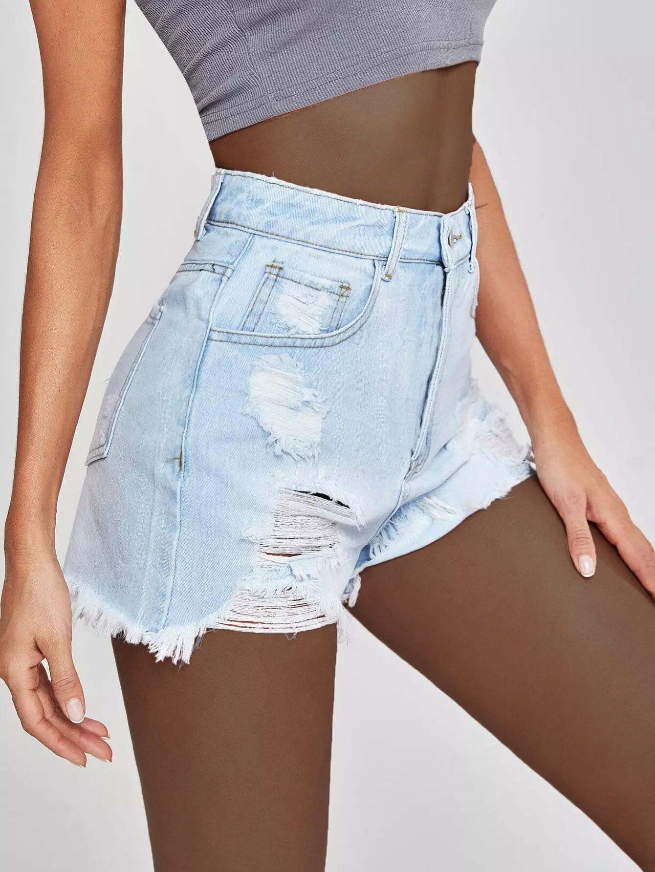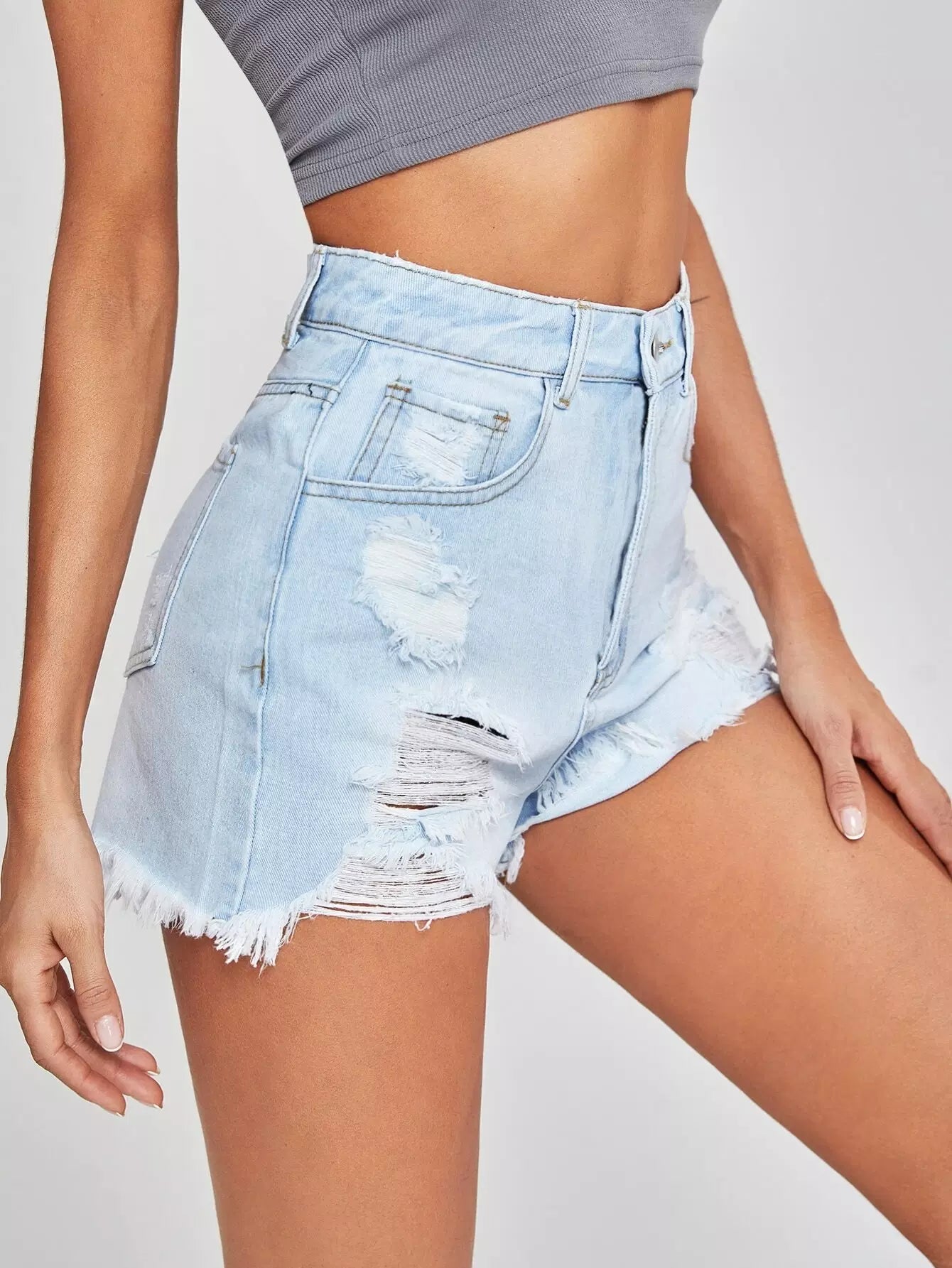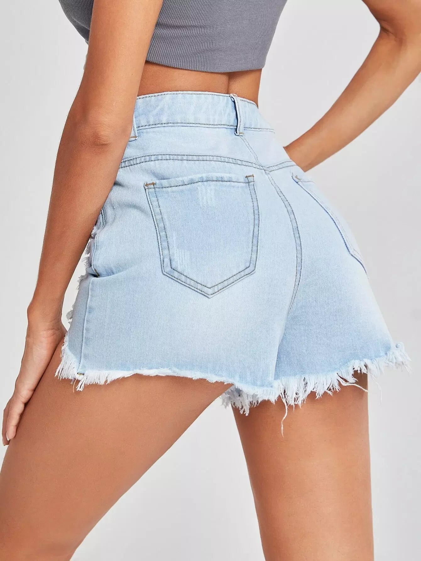 شورت جينز بحافة ممزق عالي الخصر بحافة خام