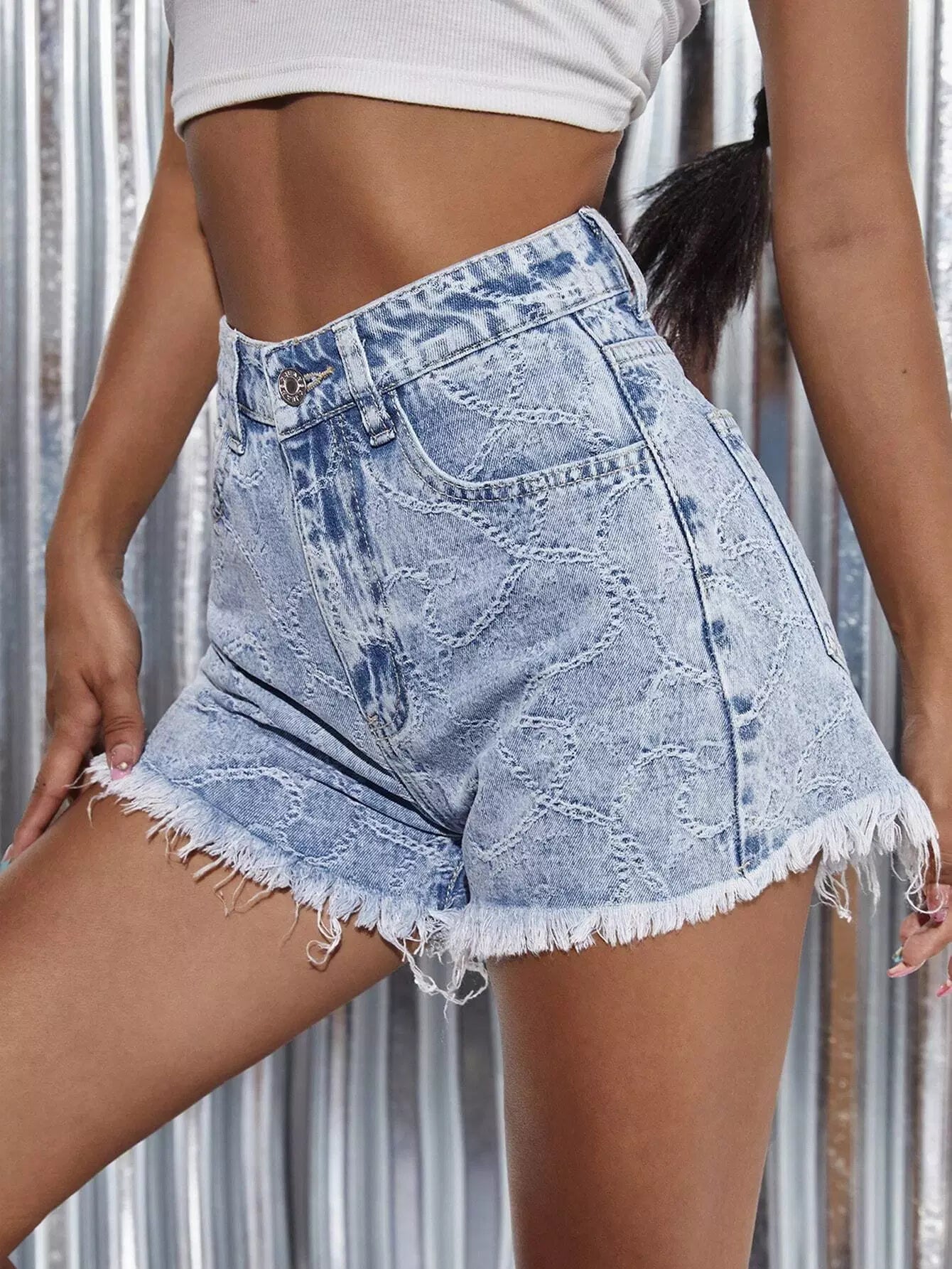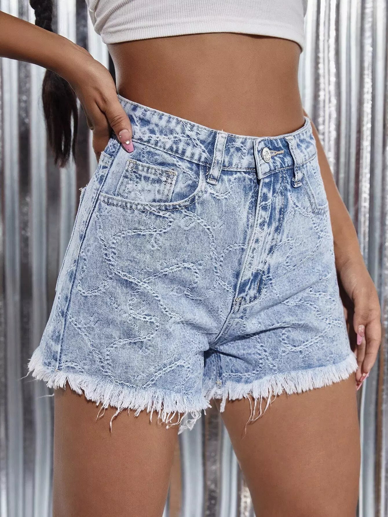 شورت دنيم بحاشية خفيف غسيل خفيف بحاشية خفيف