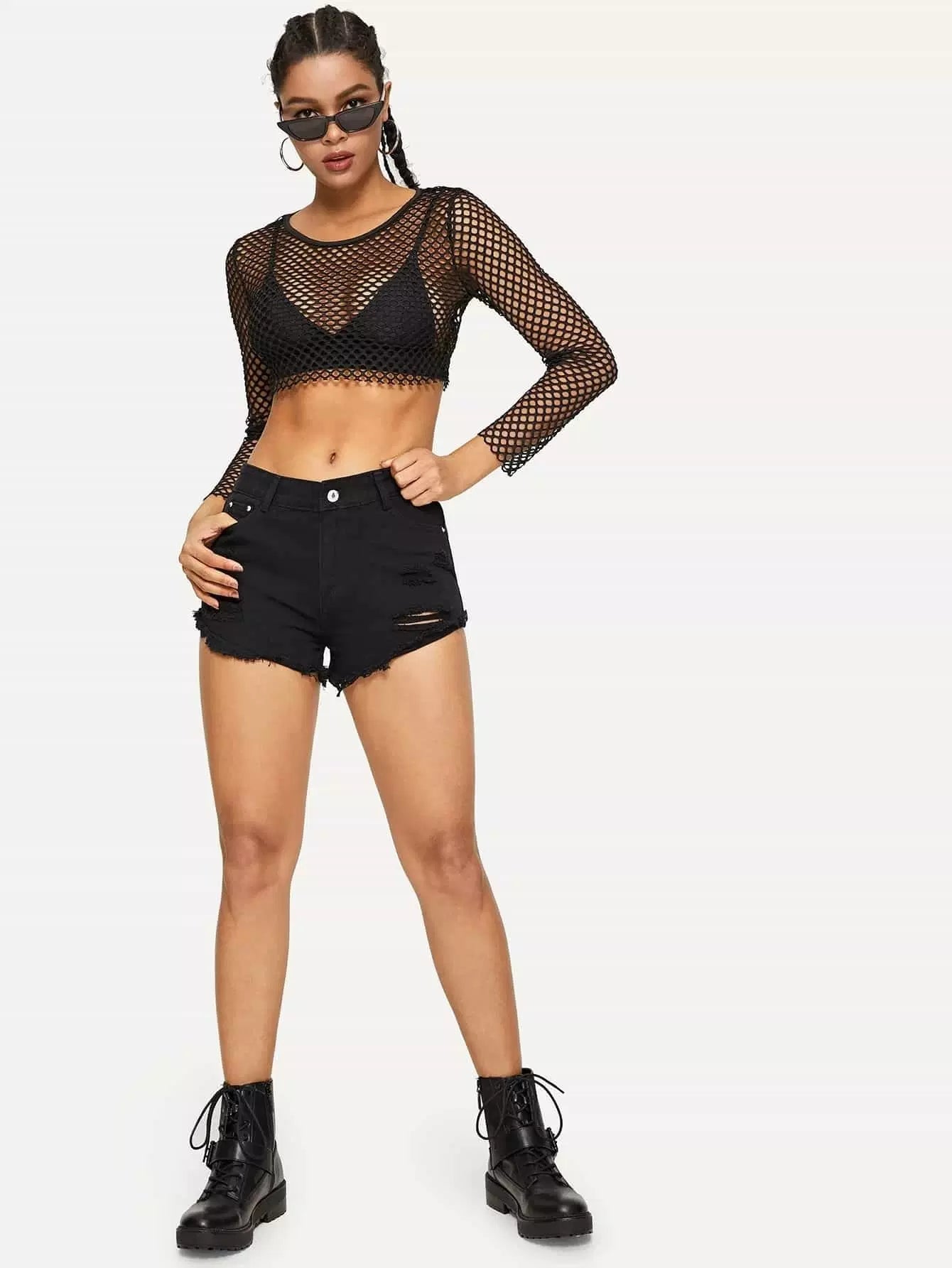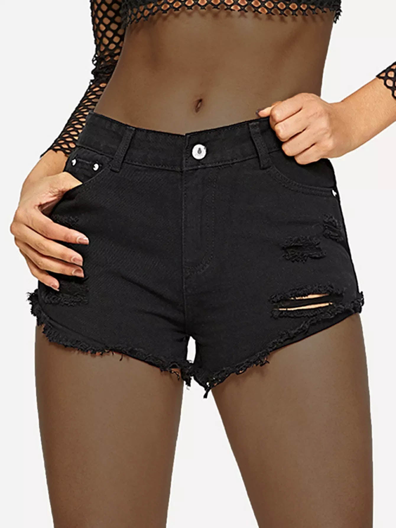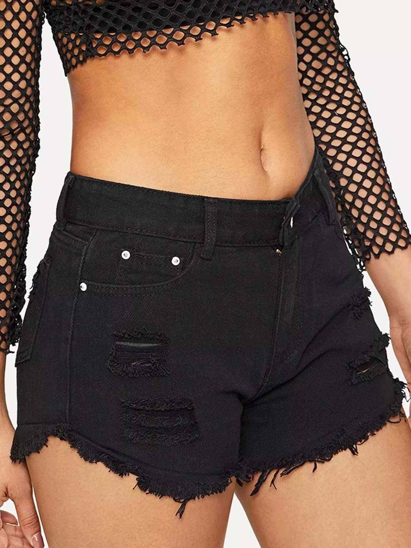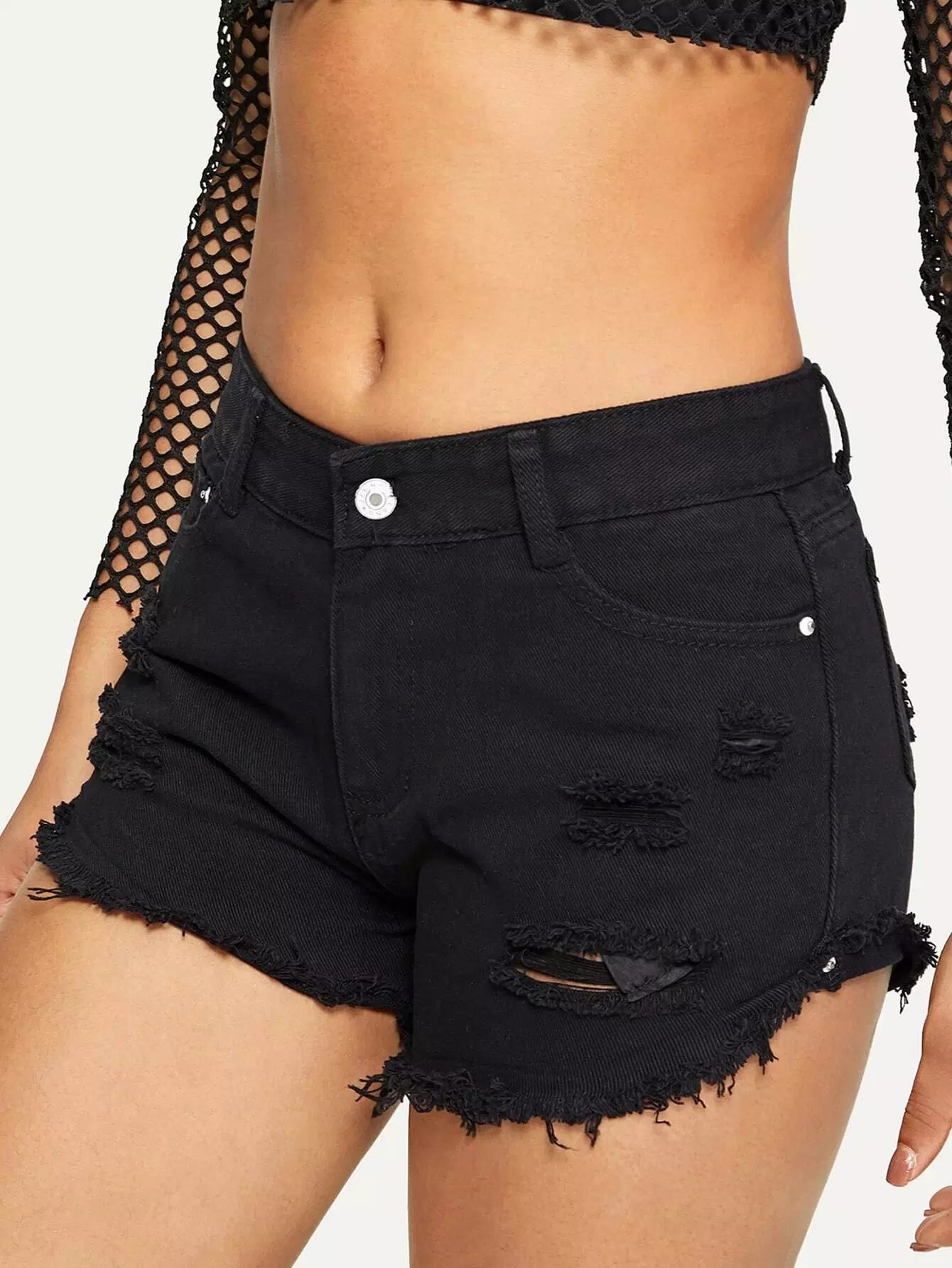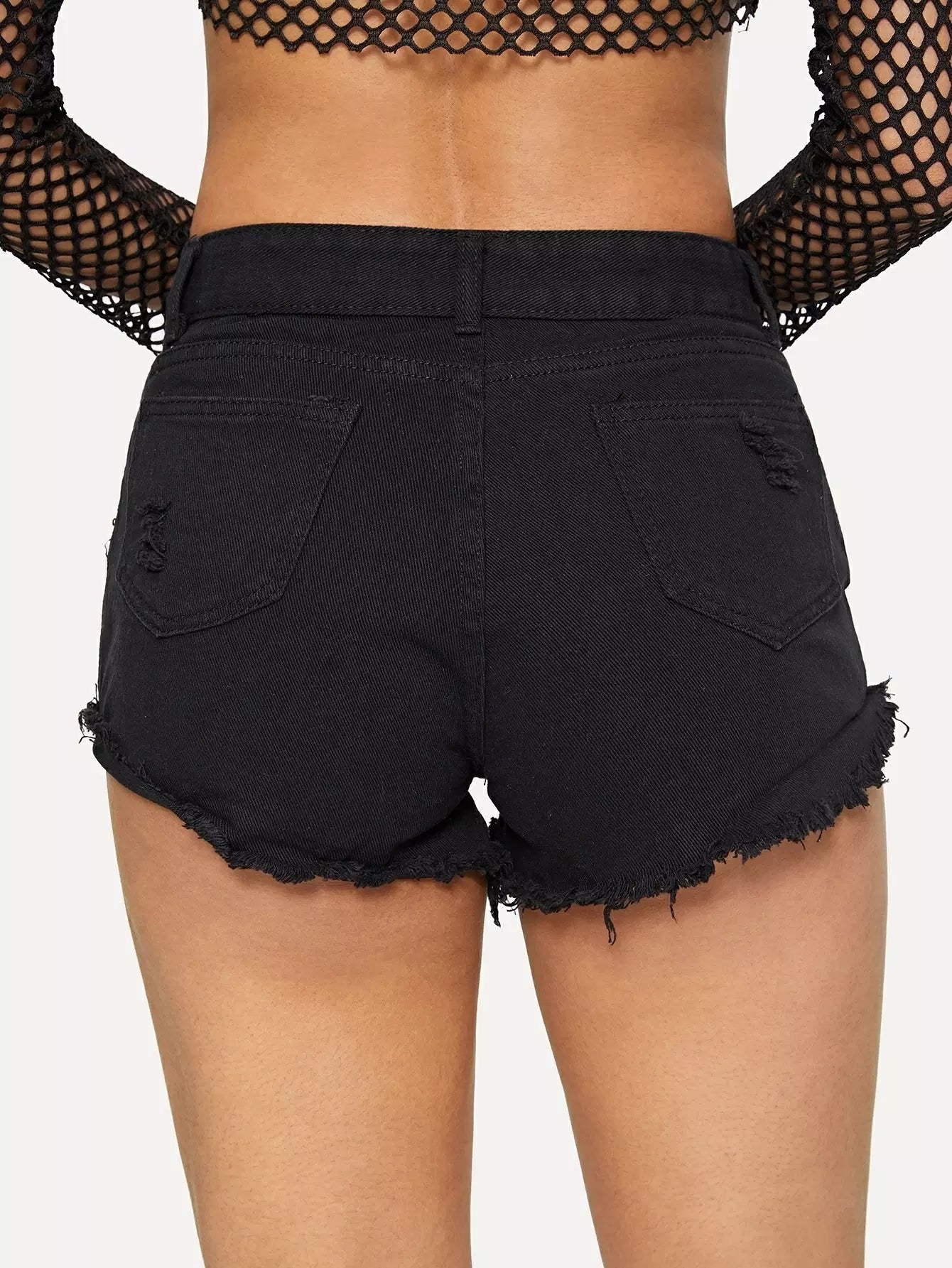 شورت قصير بقصّة خصر متوسط بقصّة خامة ممزقة