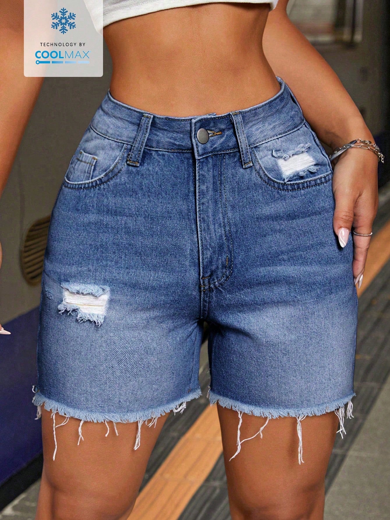 PETITE Women's Casual Washed Distressed Frayed Denim Shorts