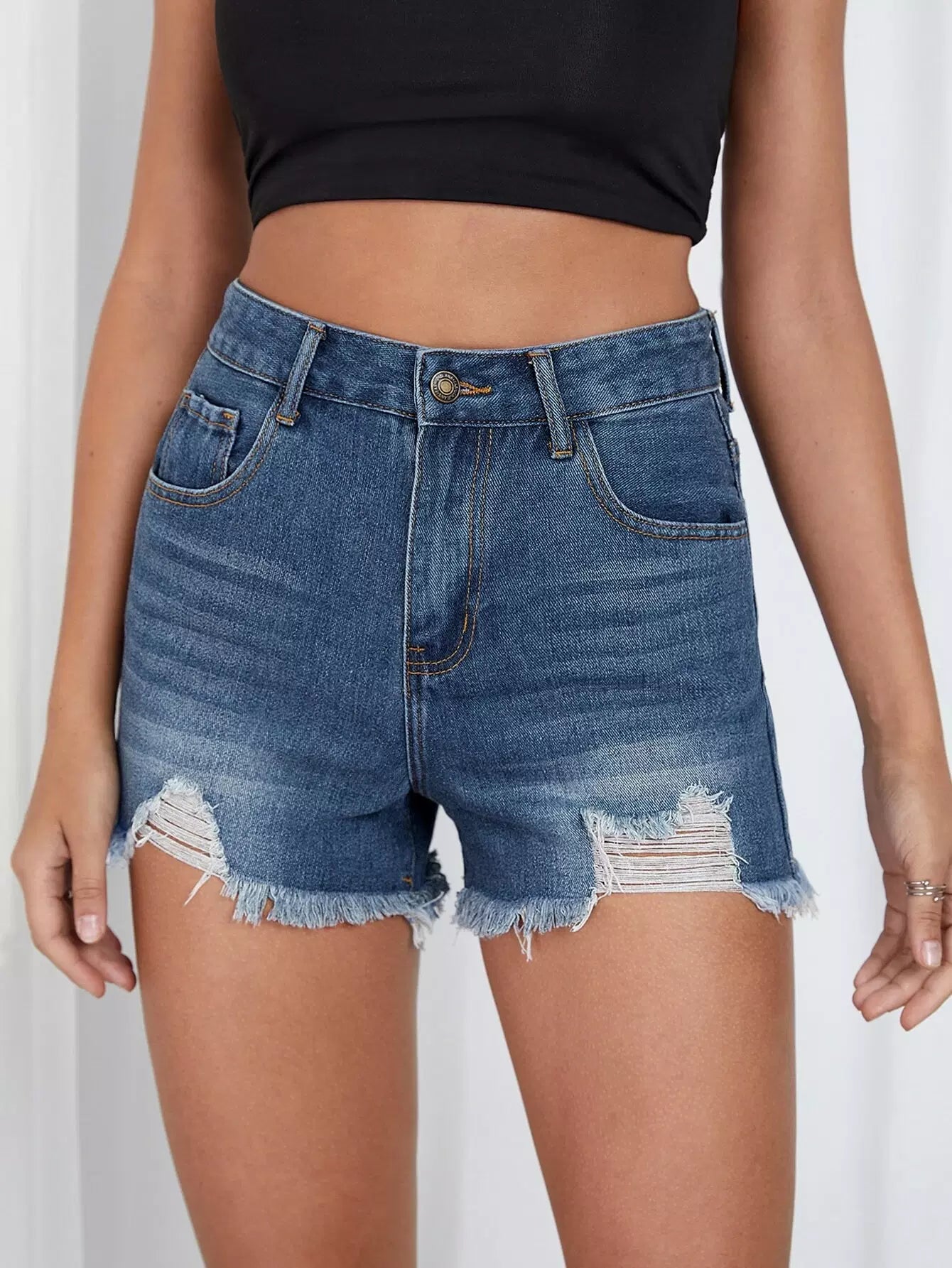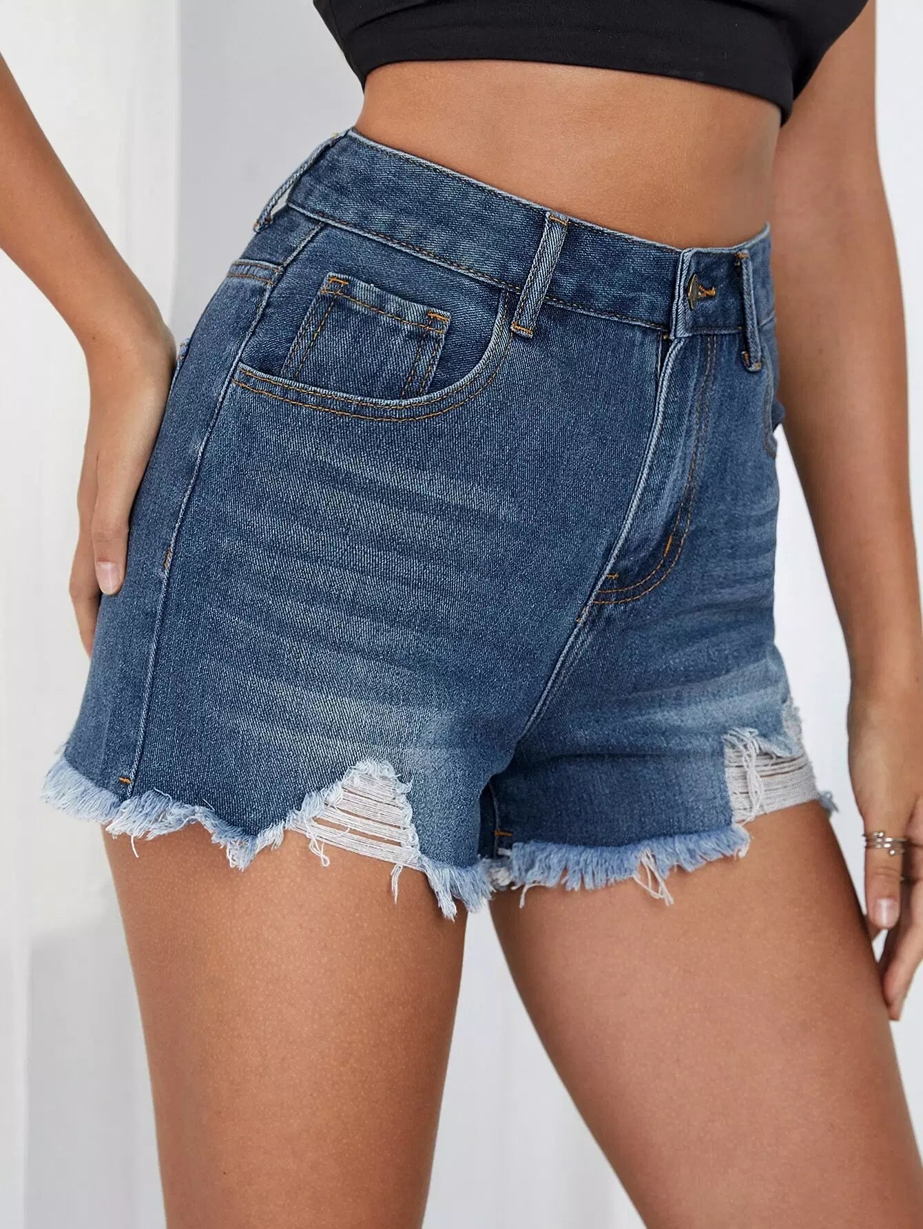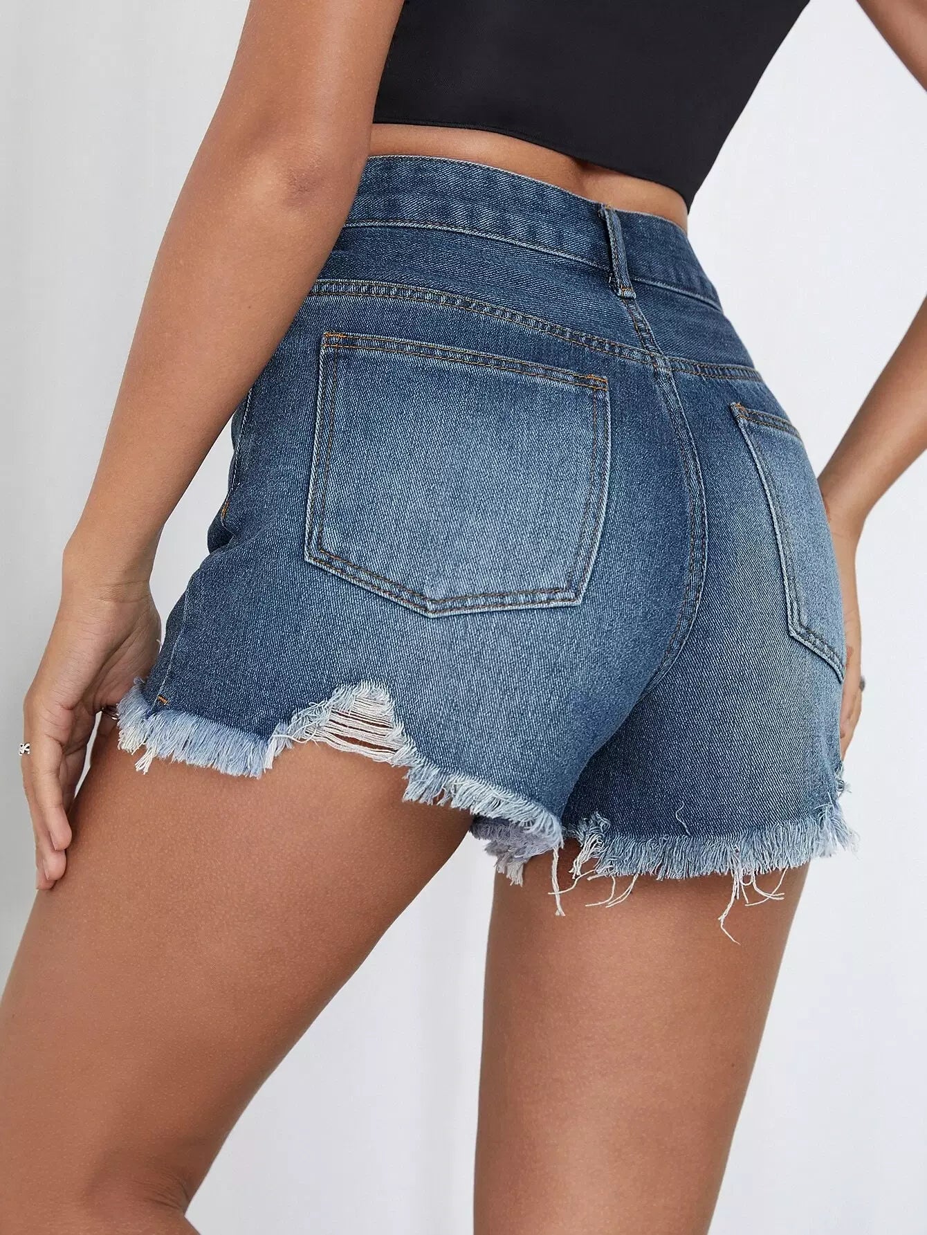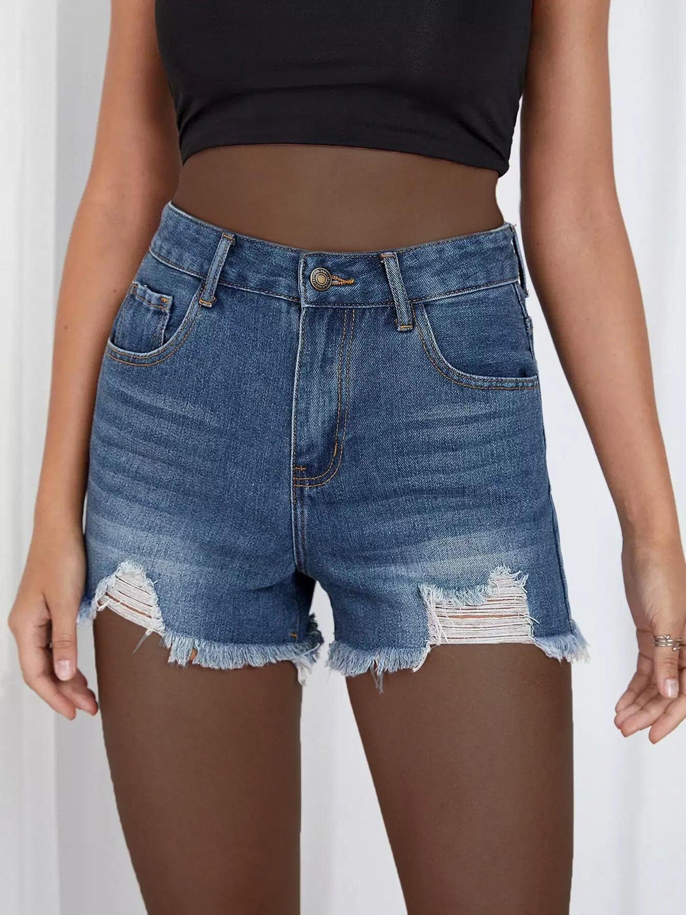 شورت جينز بحاشية ممزق من الدنيم الخام