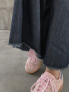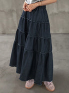 تنورة جينز نسائية من FRIFUL بخصر مرن من قماش الدنيم على شكل حرف A مع حافة مكشكشة