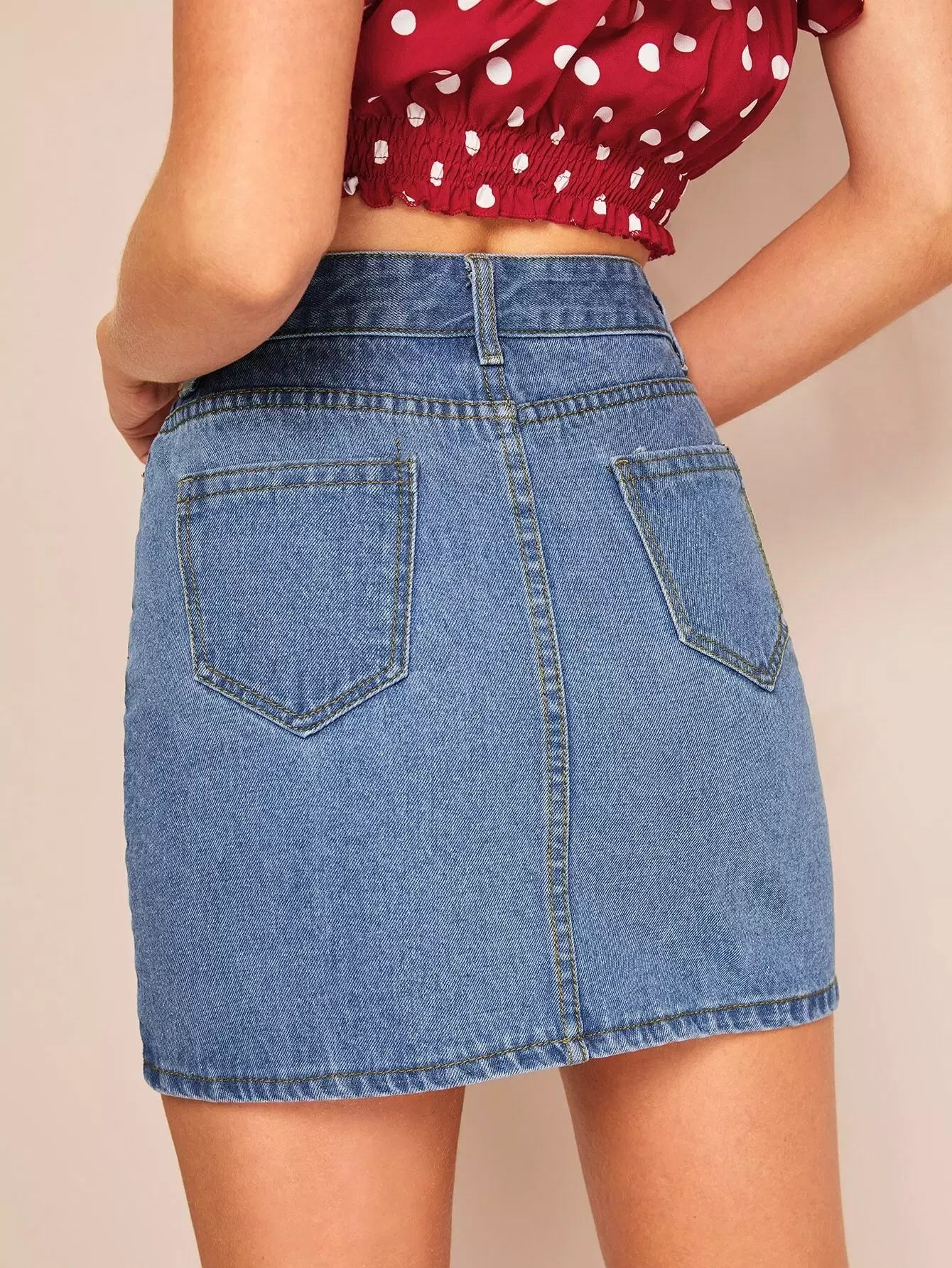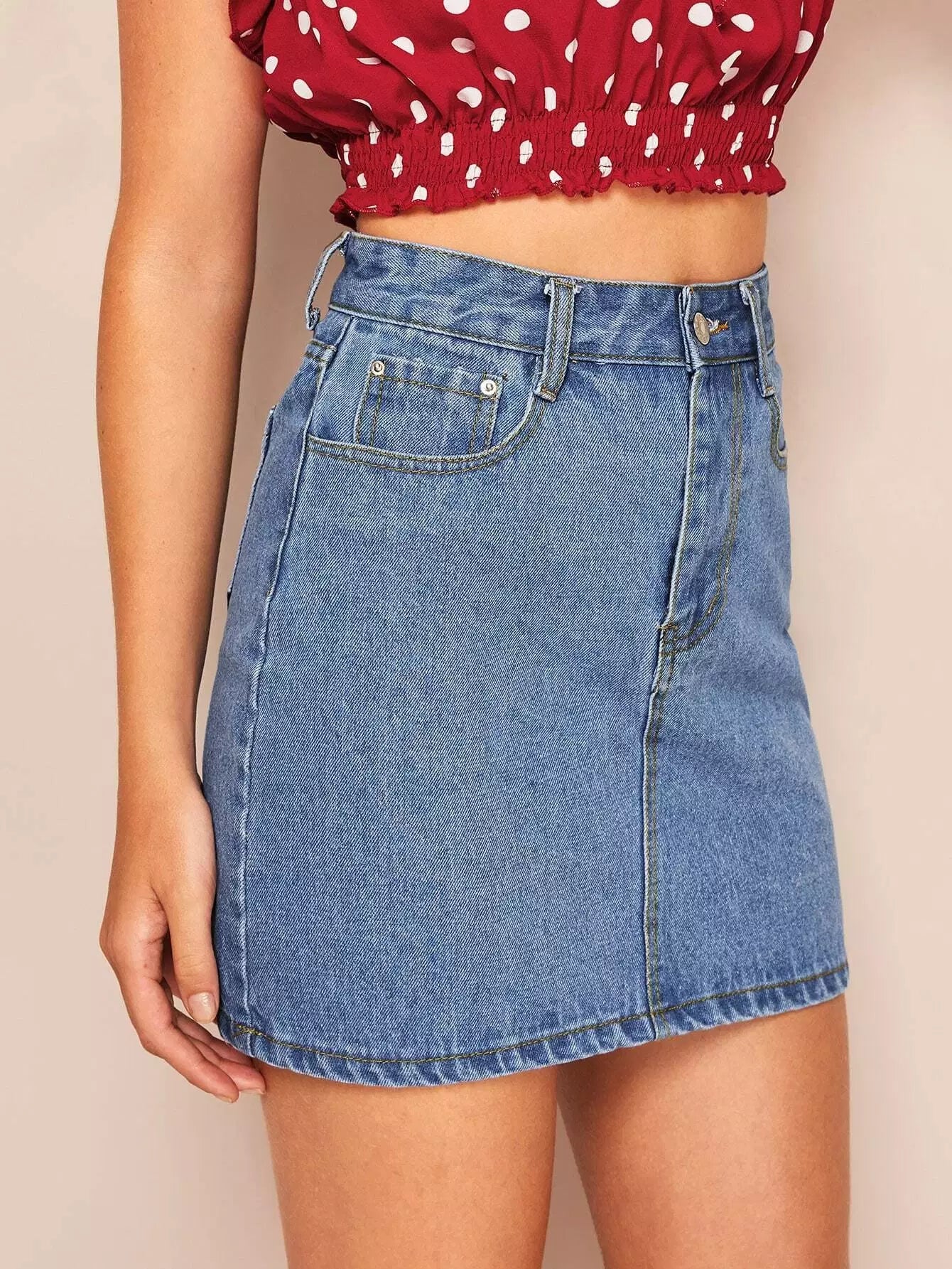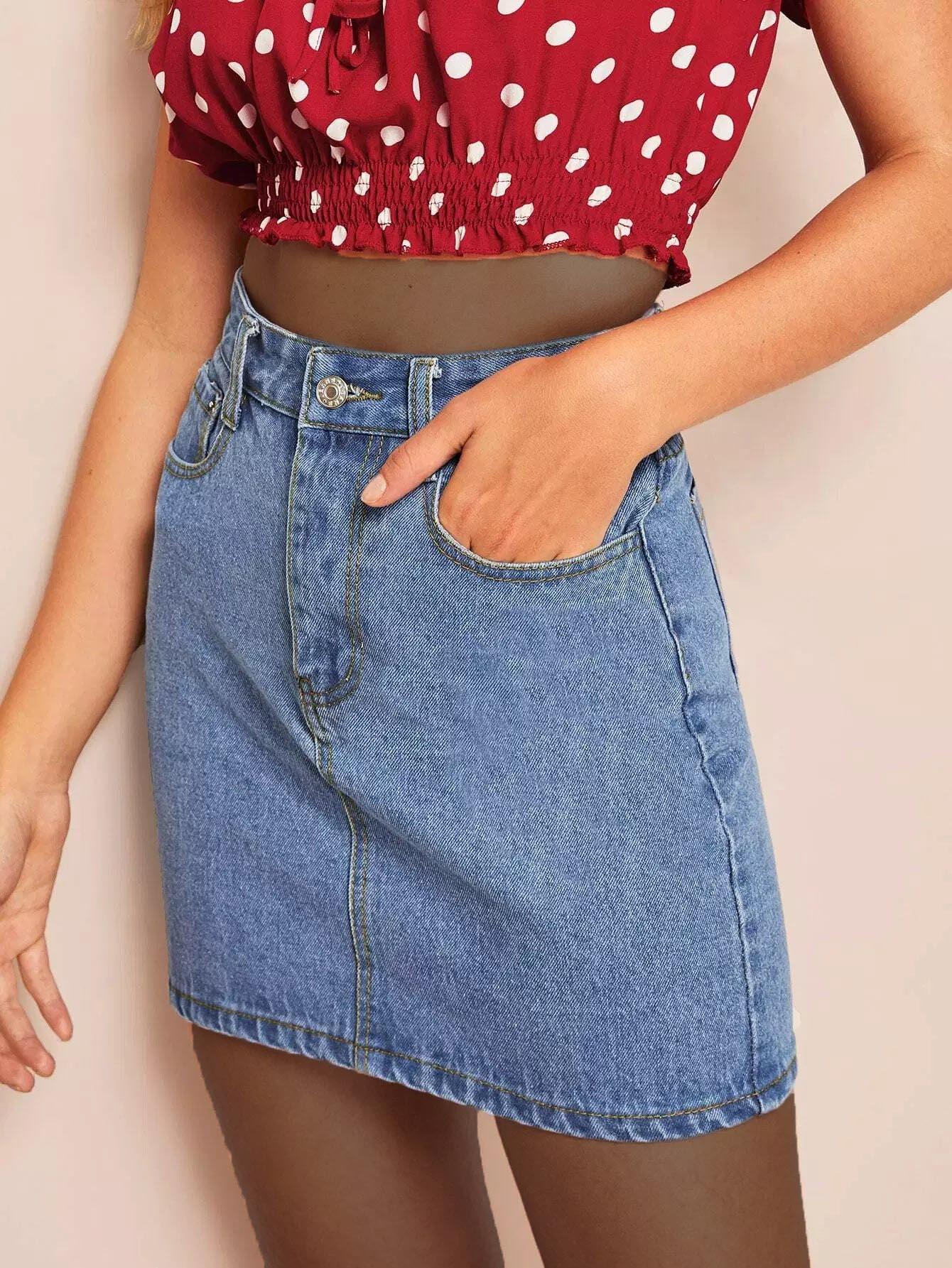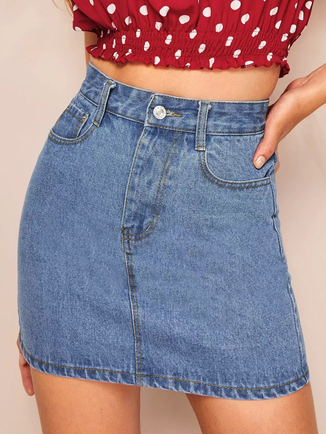 النساء - تنورة قصيرة من الدنيم عالية الارتفاع