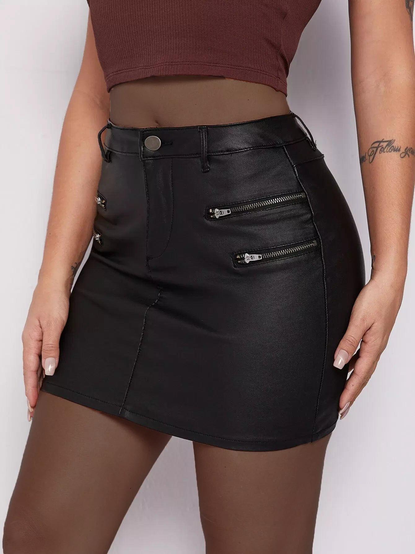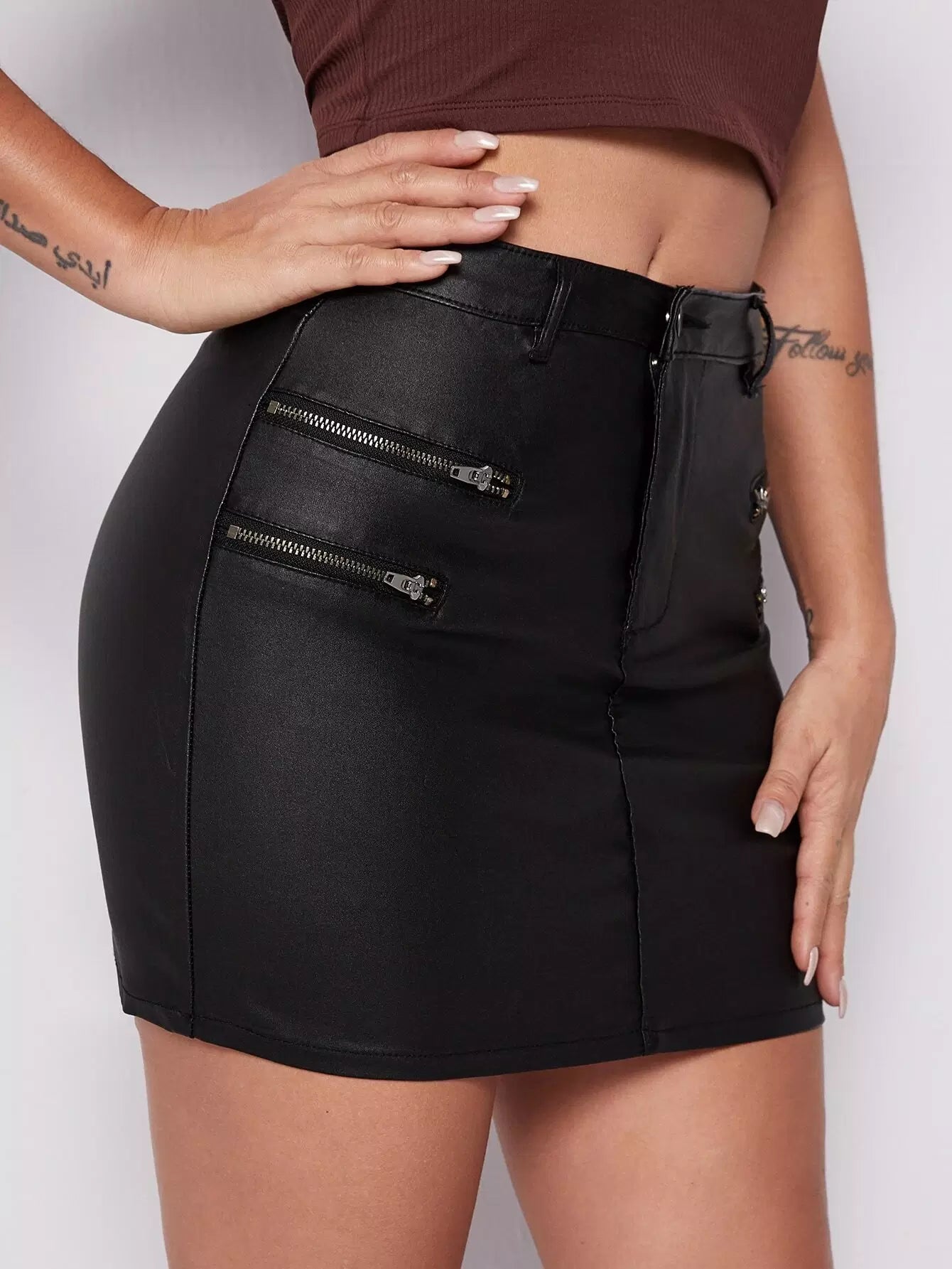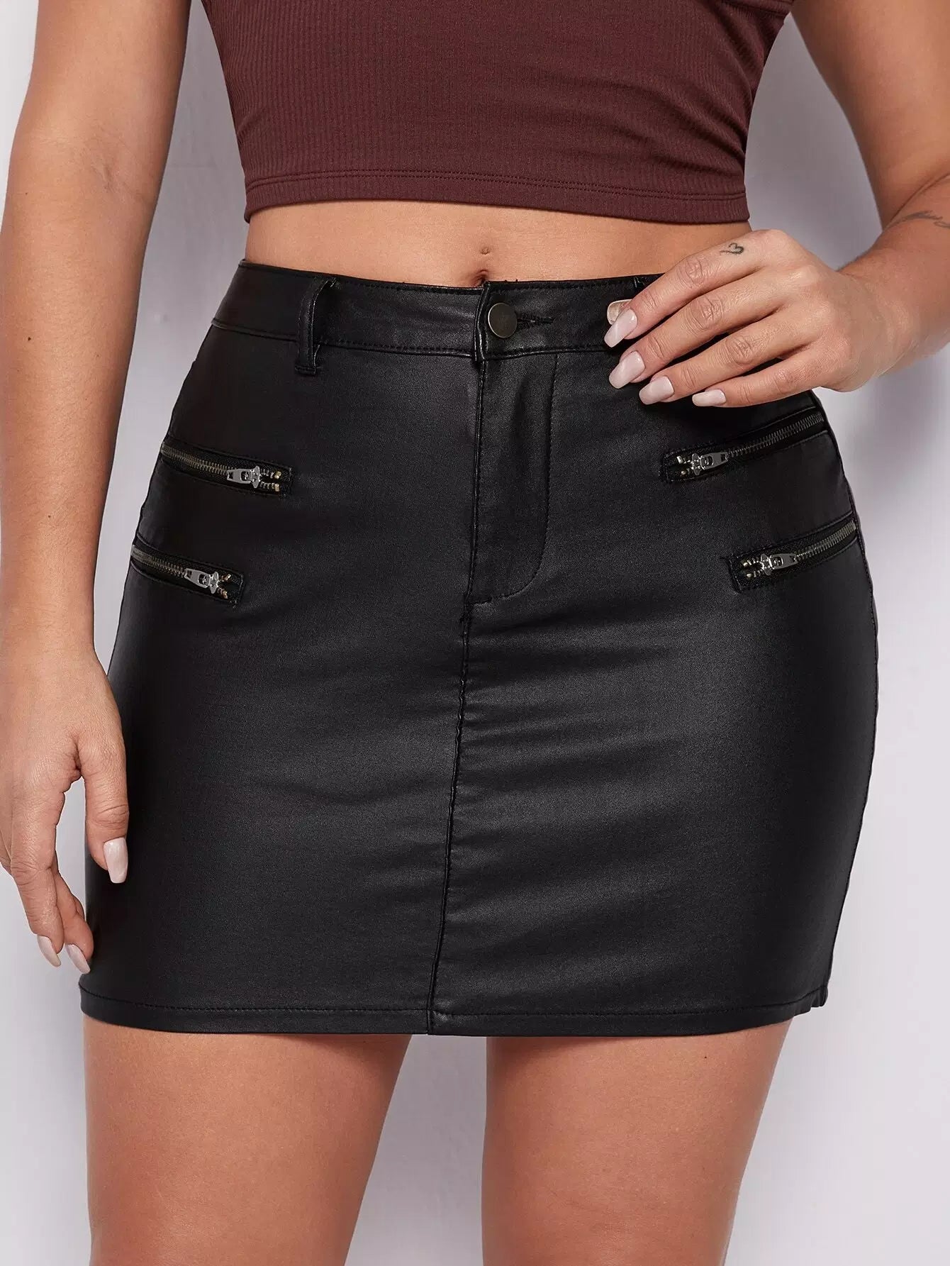 تنورة دنيم قصيرة مغطاة بخصر مرتفع