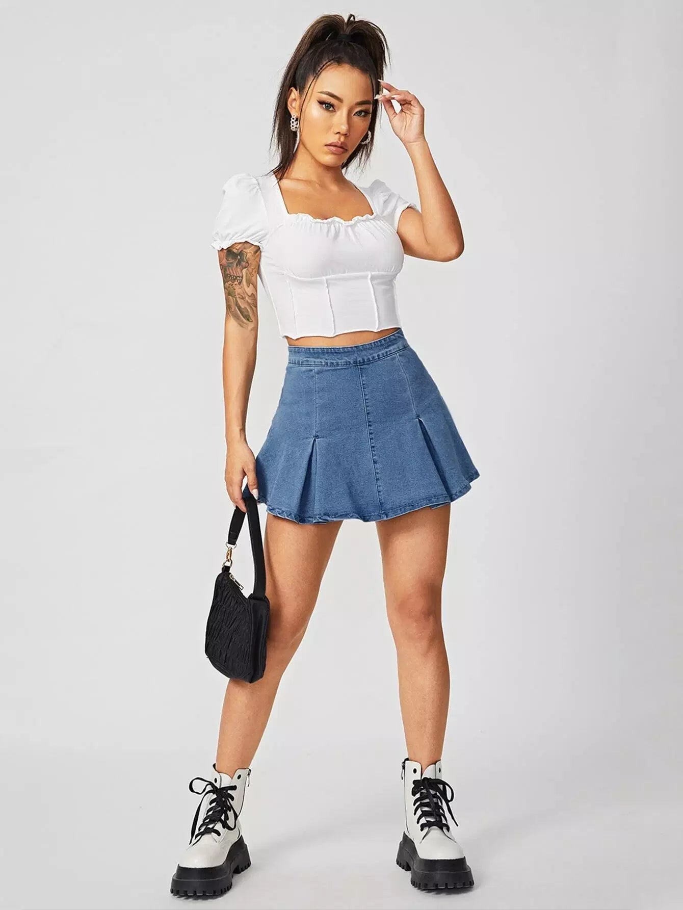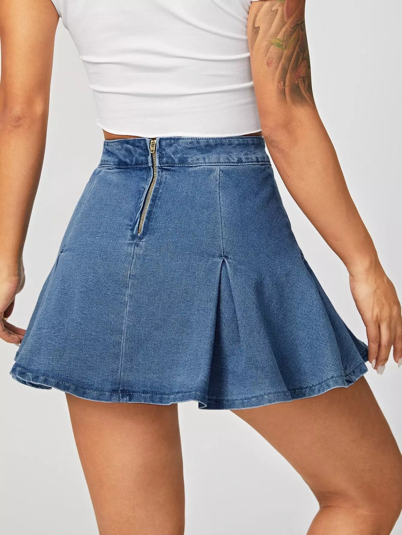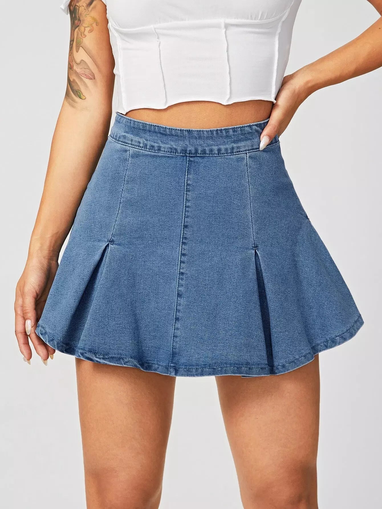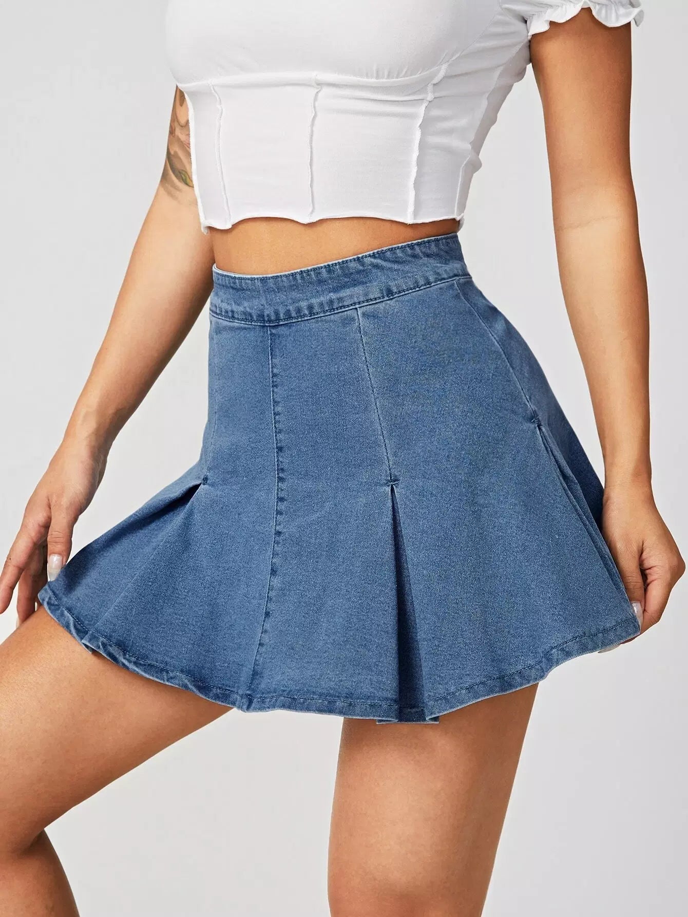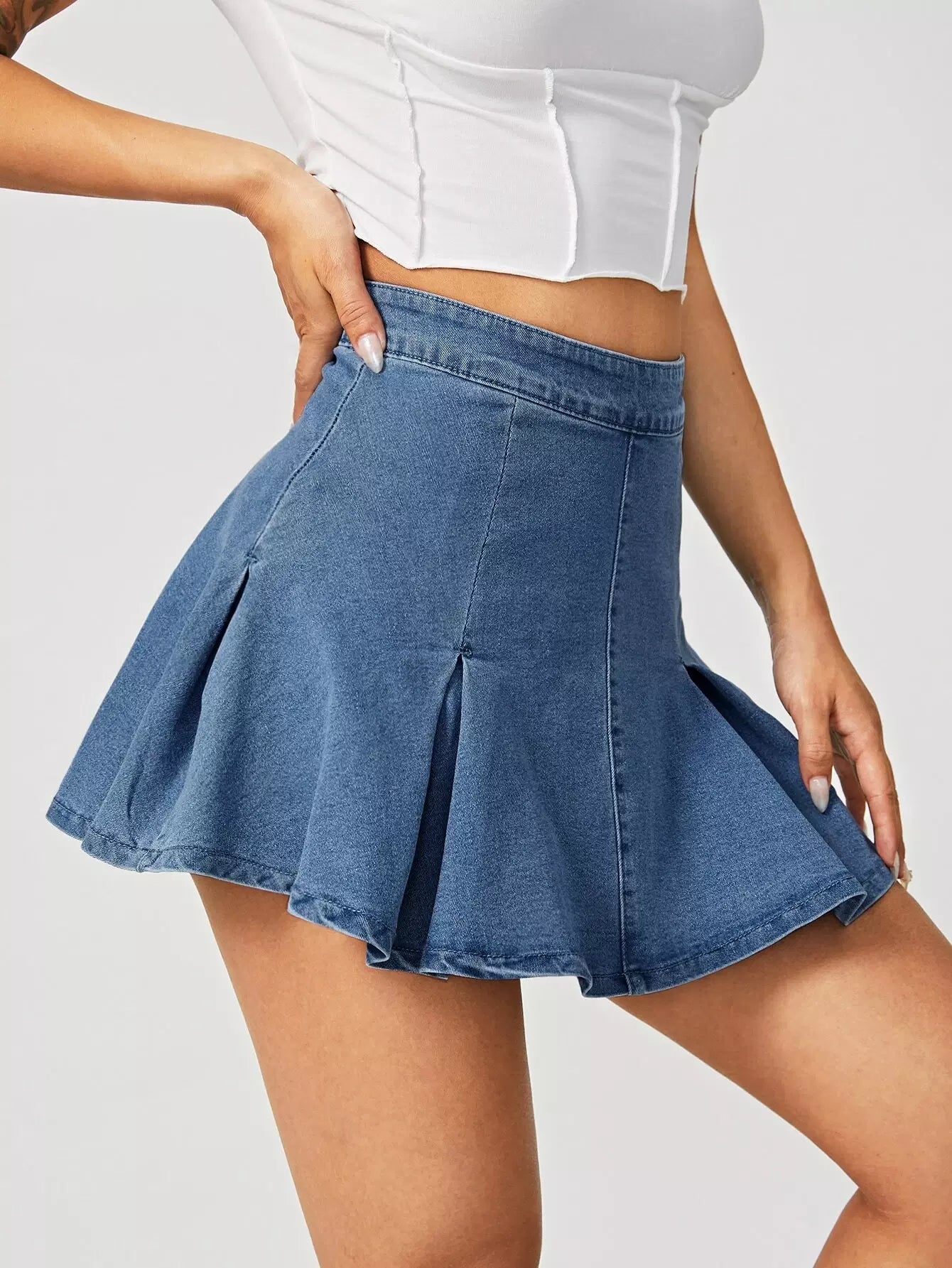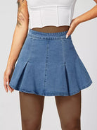 تنورة دنيم عالية الخصر ذات تفاصيل مطوية عالية الخصر