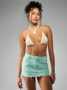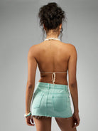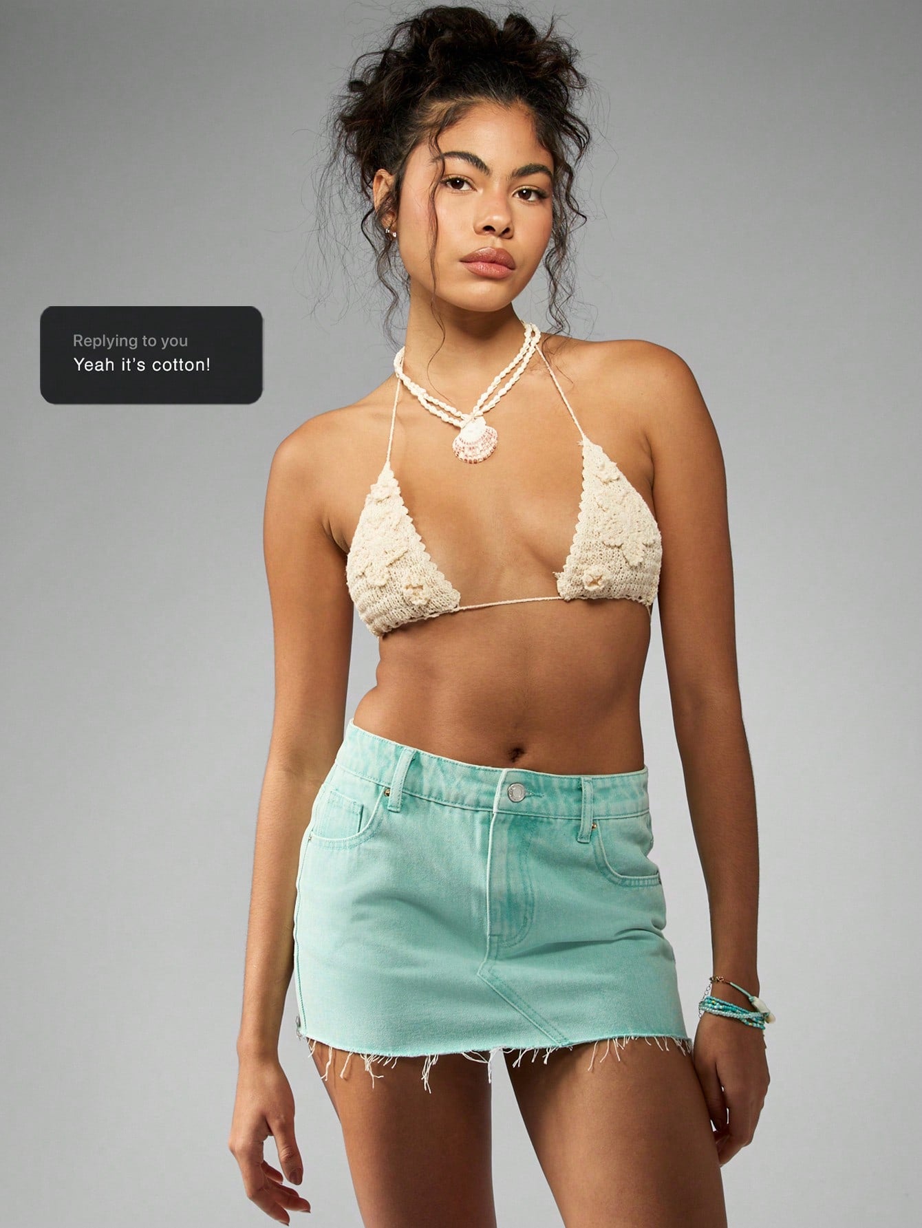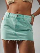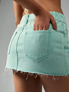 MISSGUIDED Raw Edge Distressed Mini Denim Skirt Casual Summer Festival Beach Low Rise Frayed Hem Mint