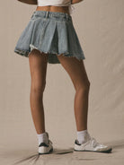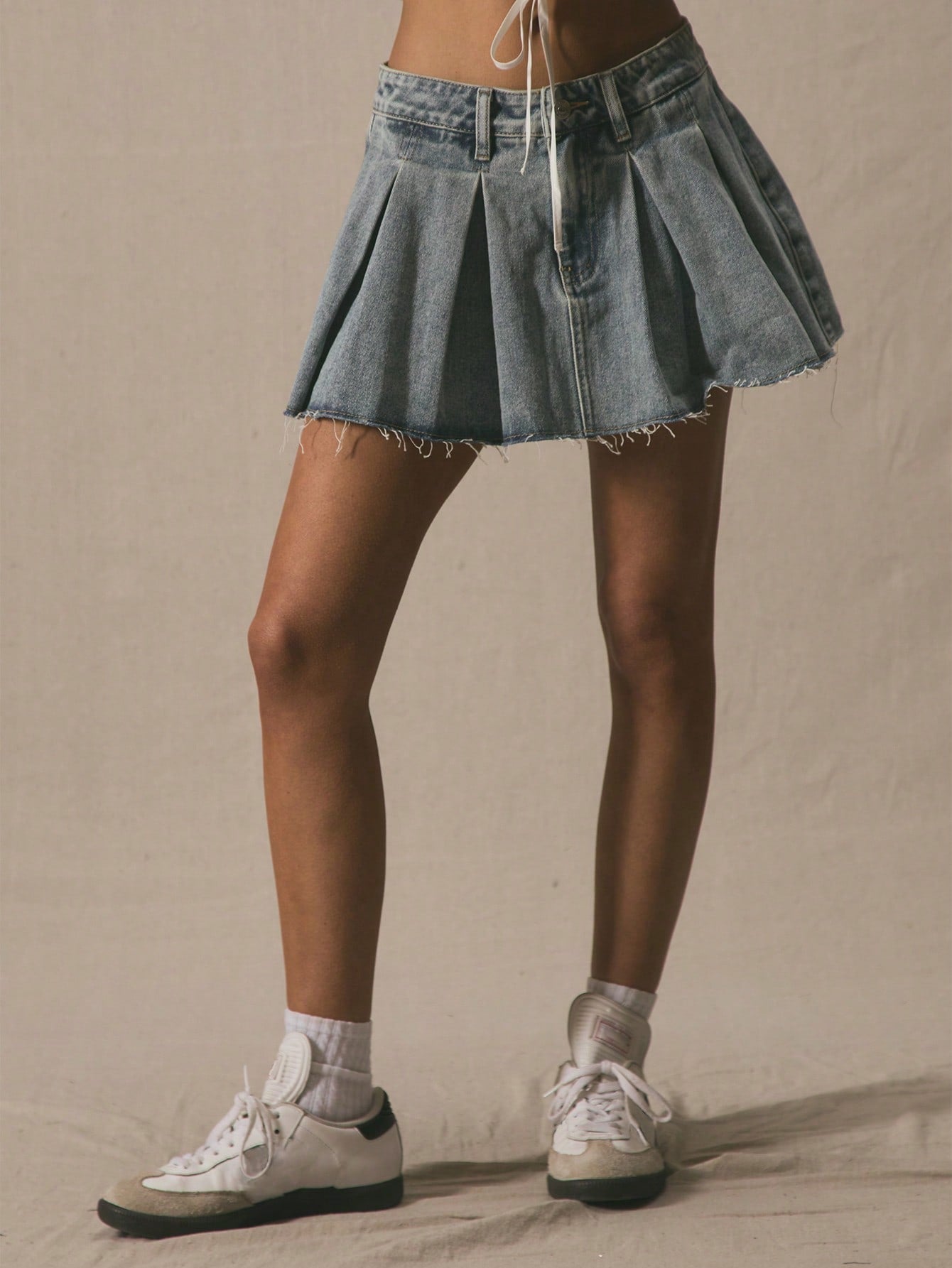MUSERA Mid Rise Pleated Denim Mini Skirt With Belt Loops Spring Summer Cute Vacation 90's Y2k