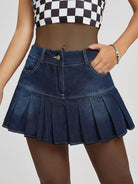 تنورة دنيم ذات حواف مطوية بحياكة سوطية