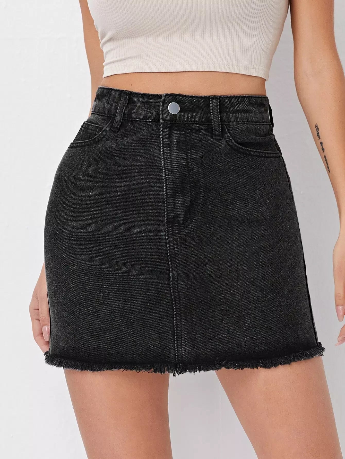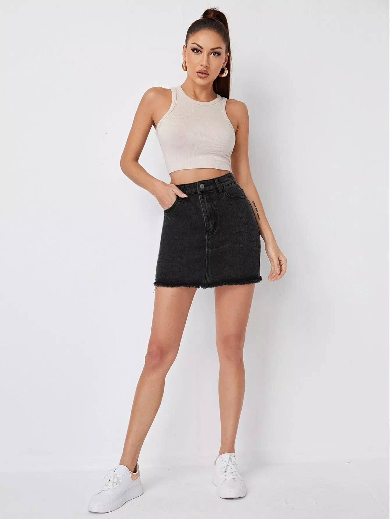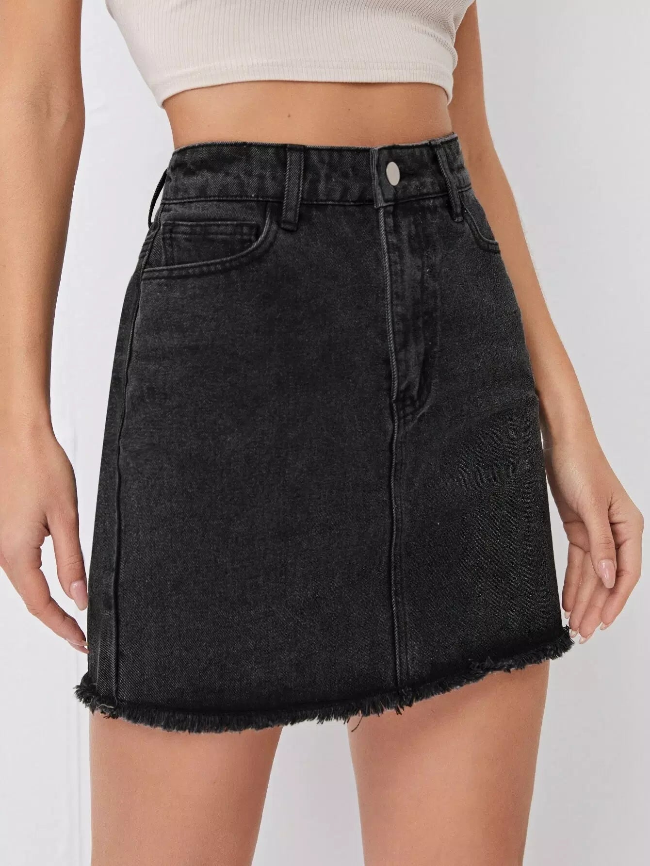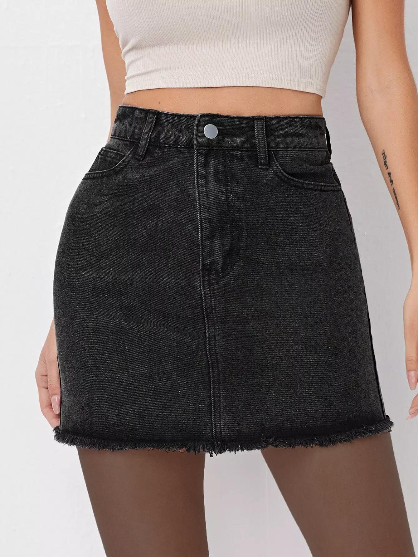 تنورة من الدنيم بحاشية خام