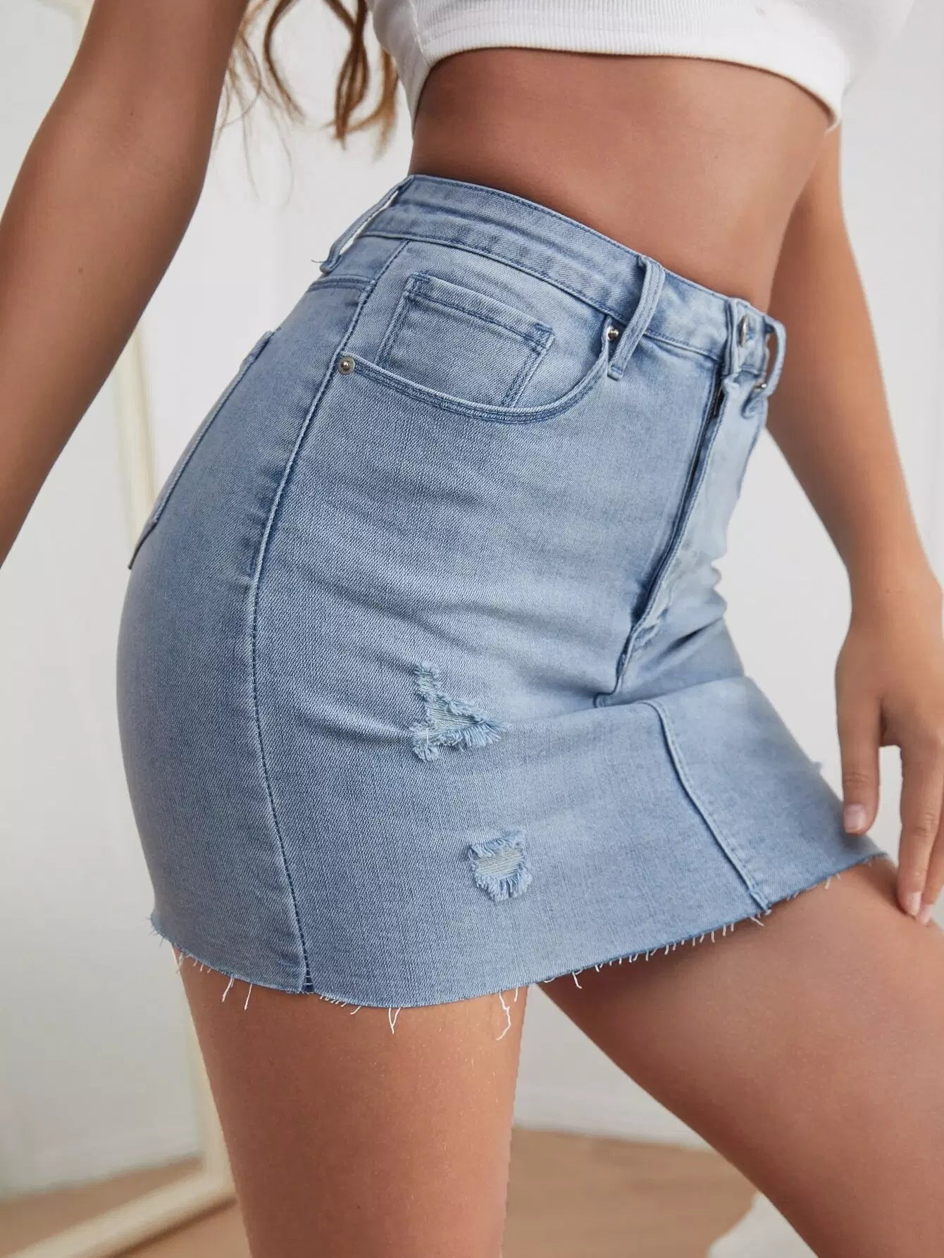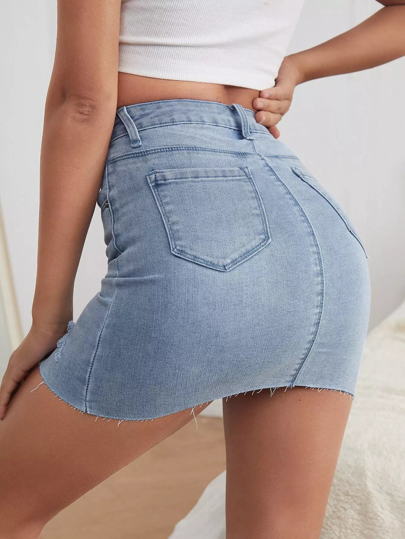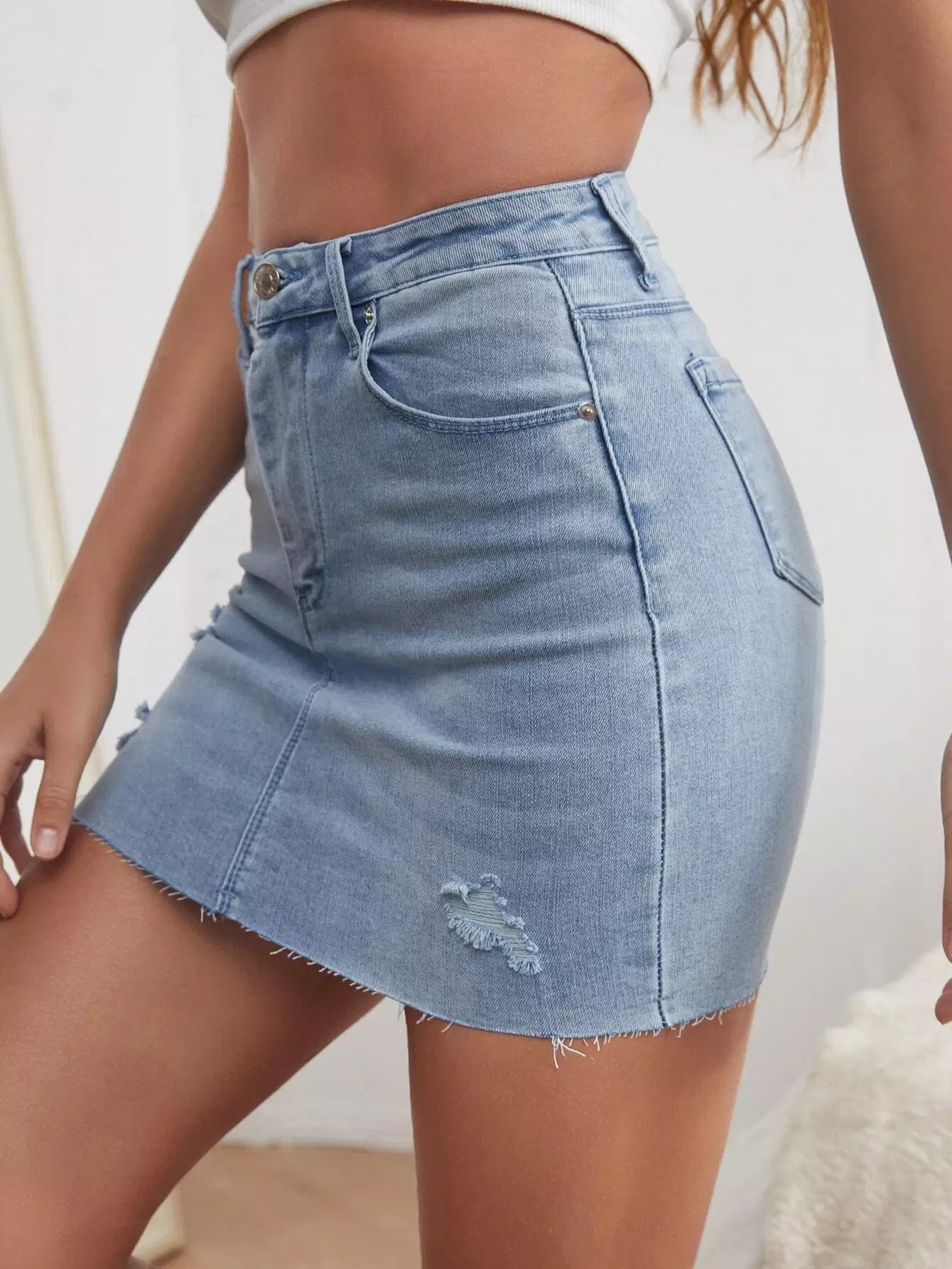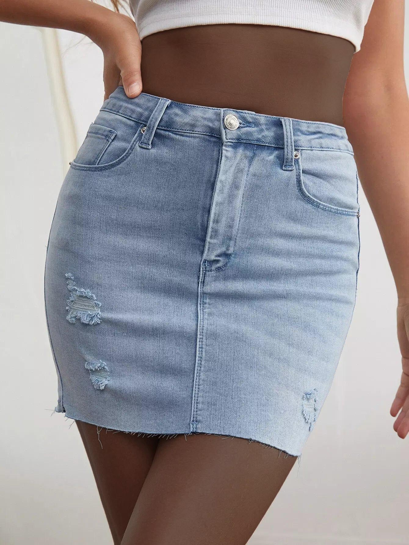 تنورة دنيم بحواف ممزقة من الدنيم الخام